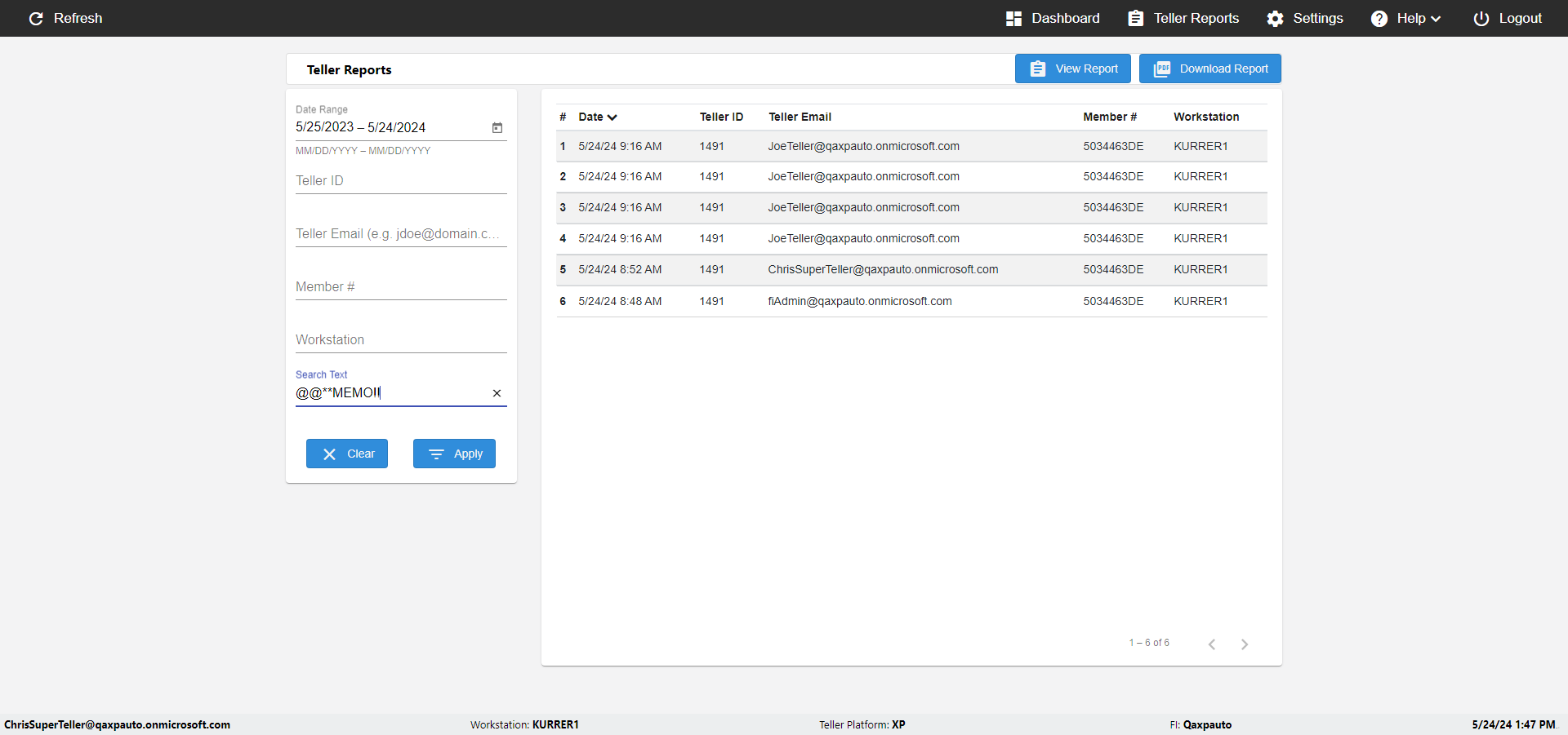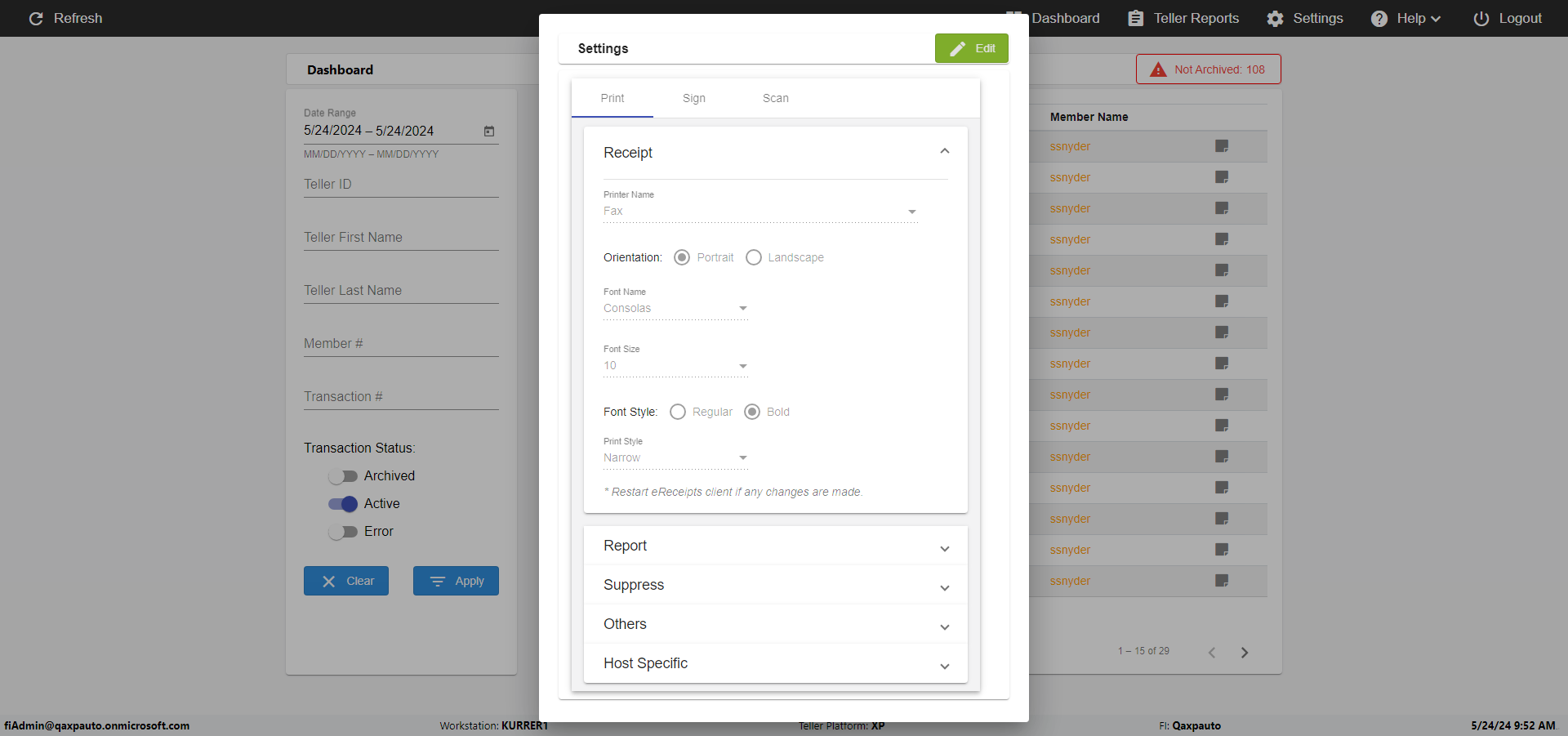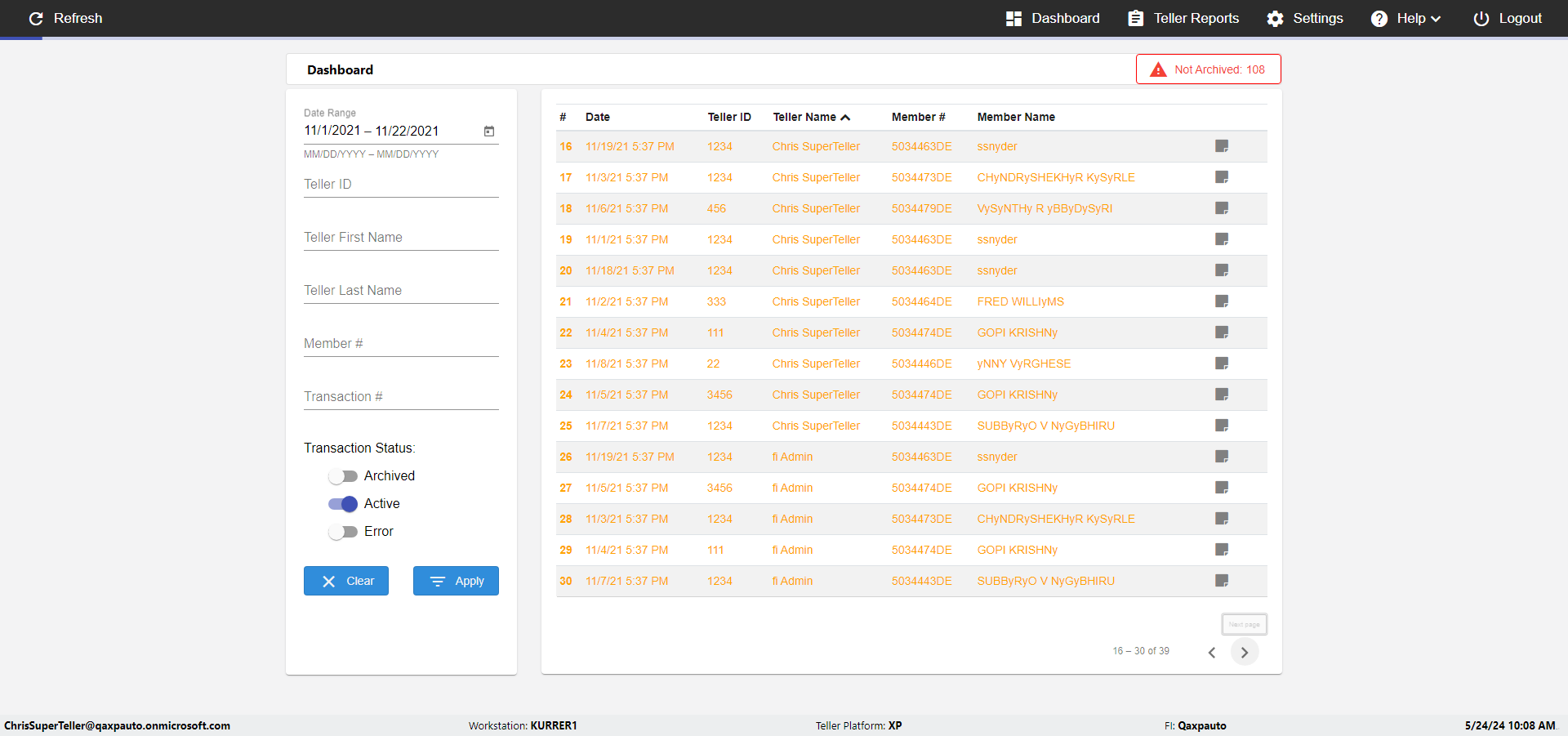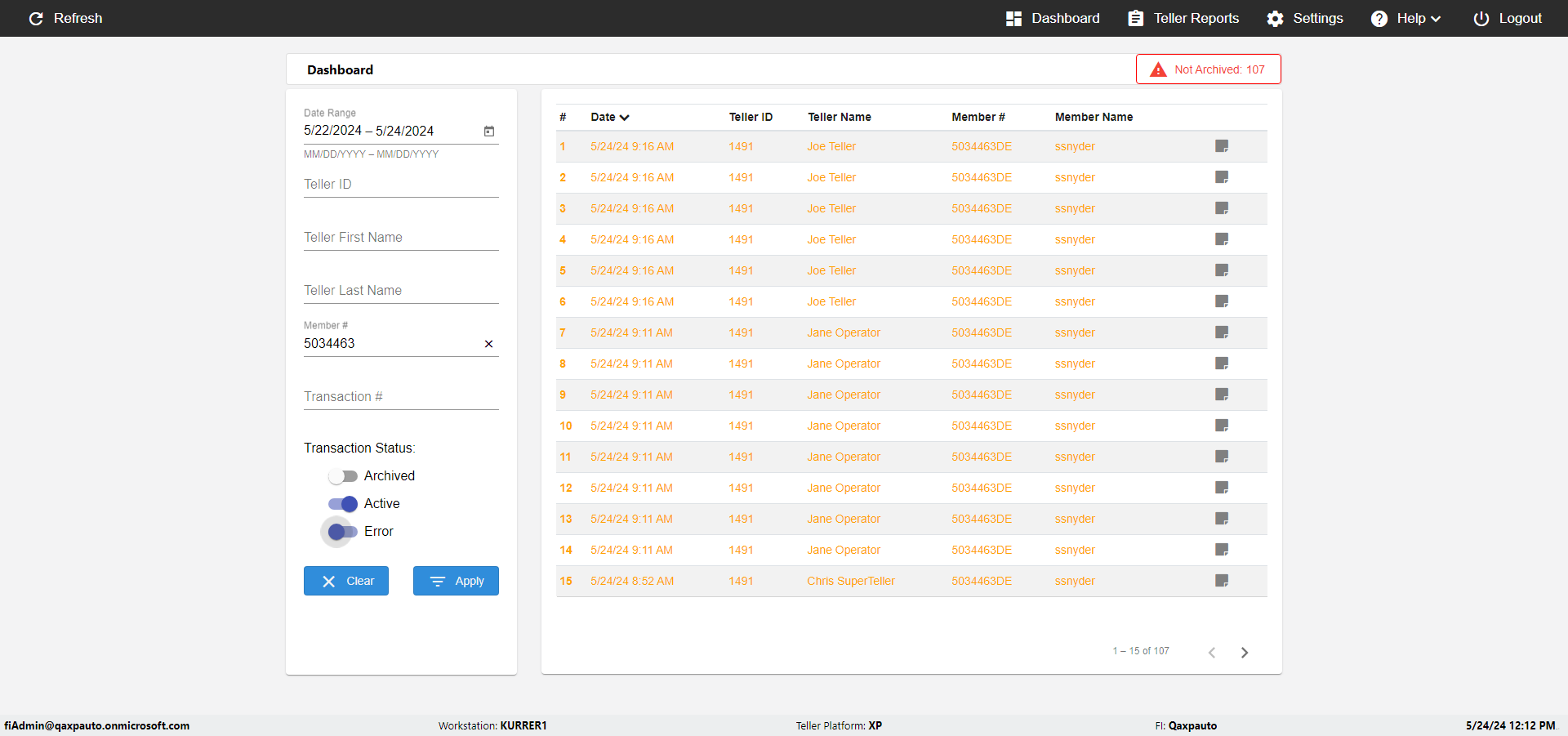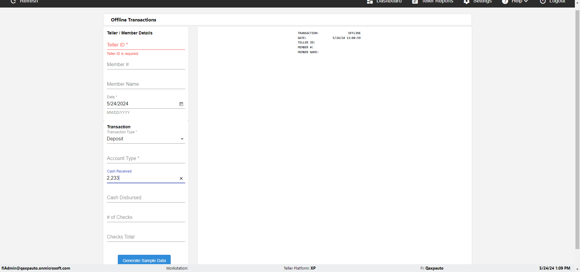 | 09:24:12 AM | Successfully navigated to 'eReceipts Teller' Page | |