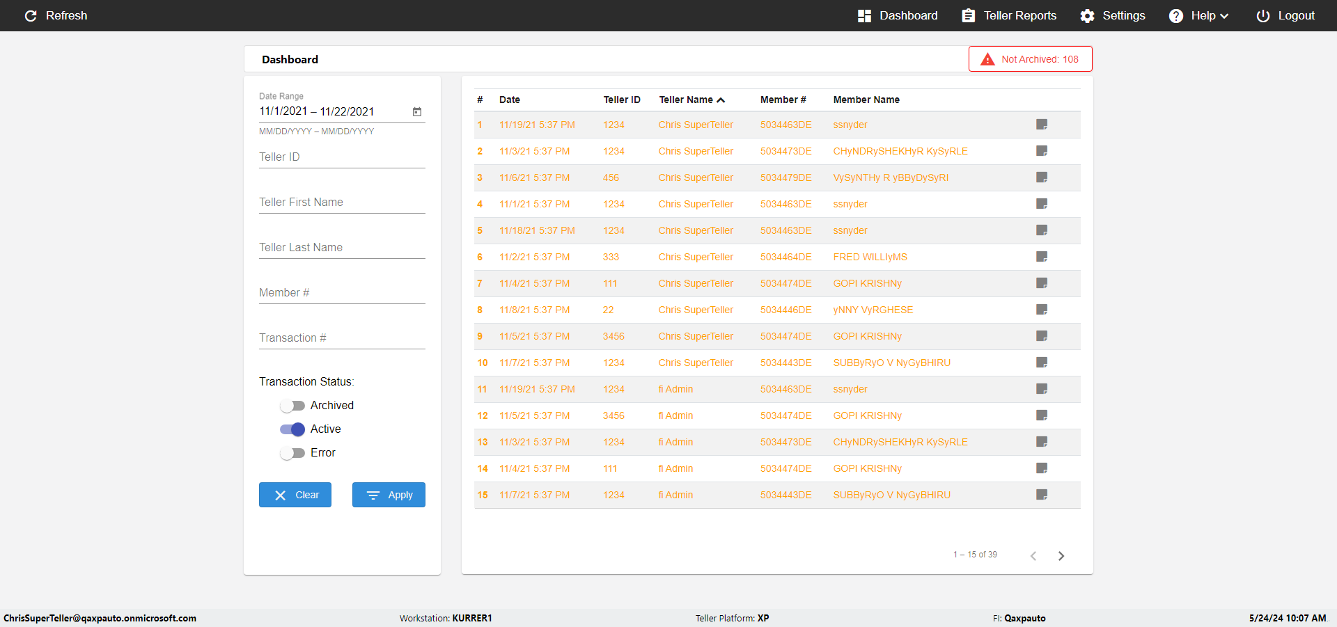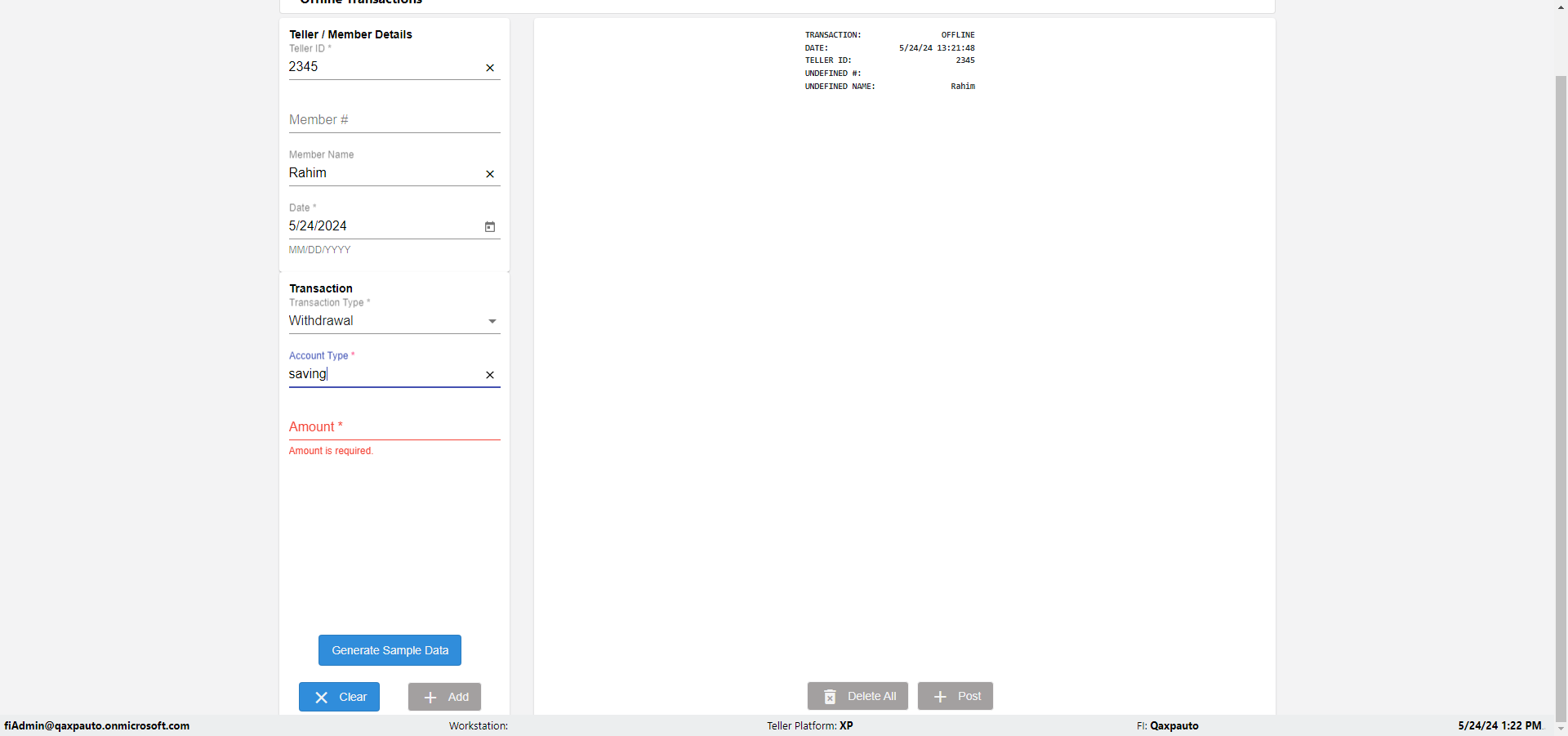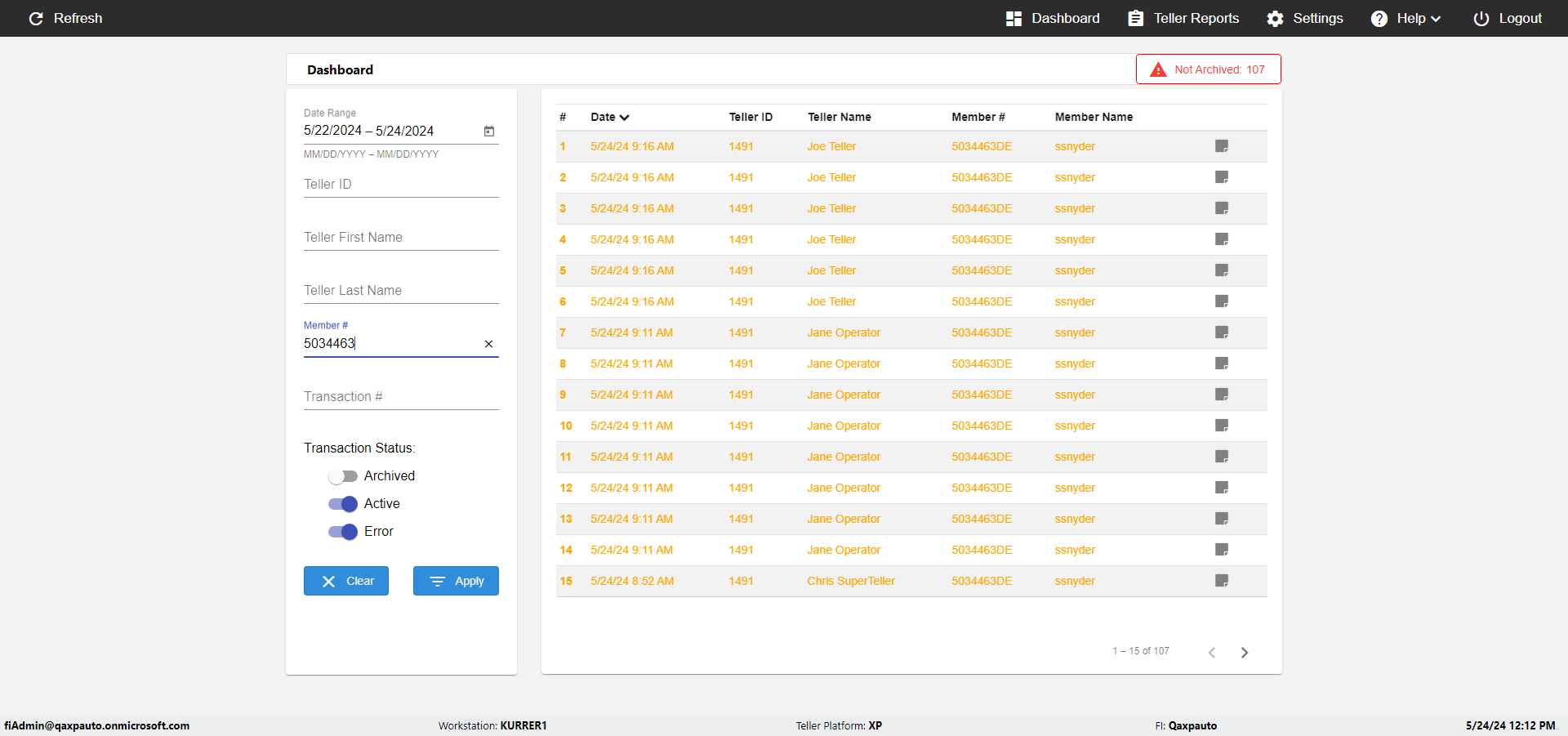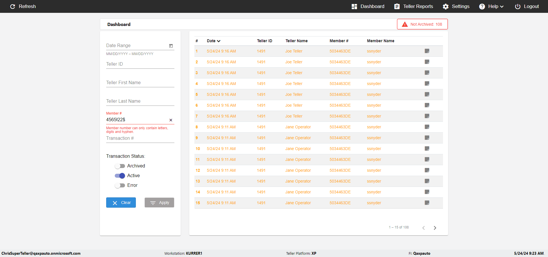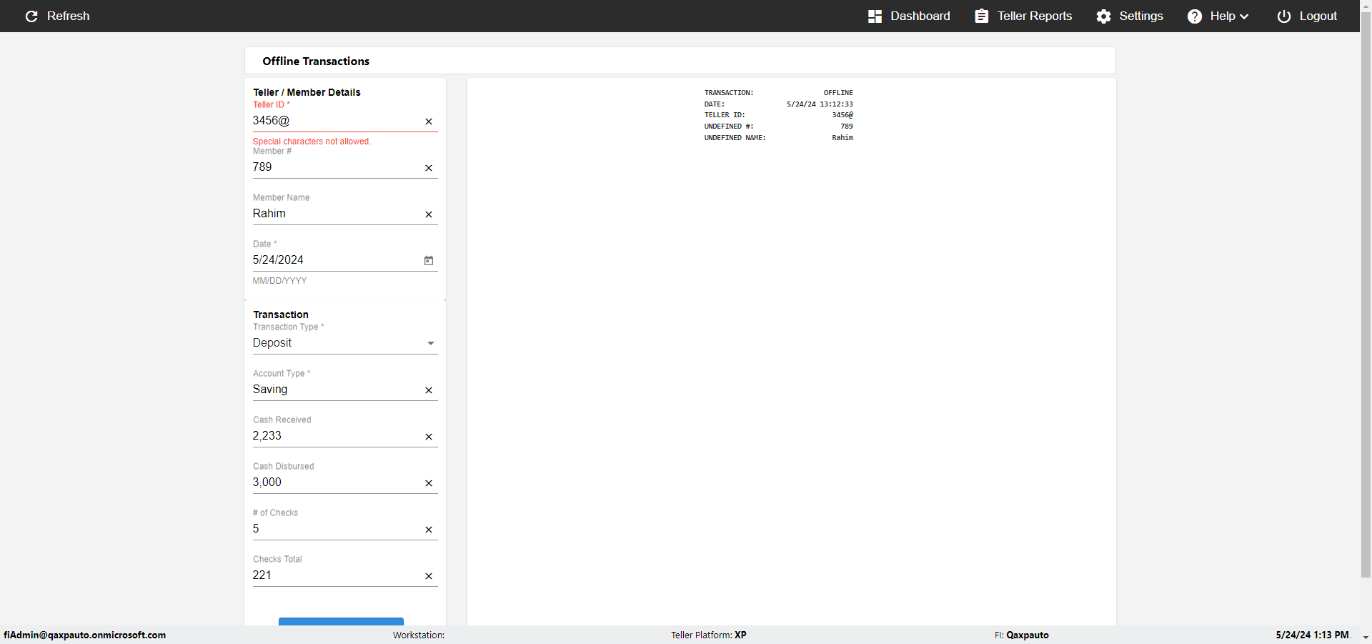 | 09:24:12 AM | Successfully navigated to 'eReceipts Teller' Page | |