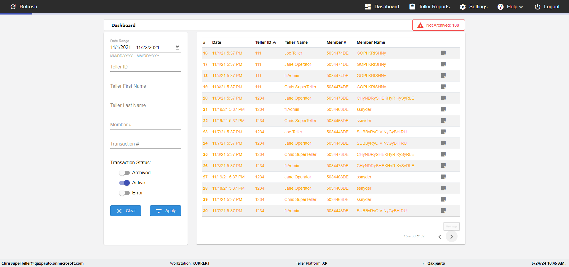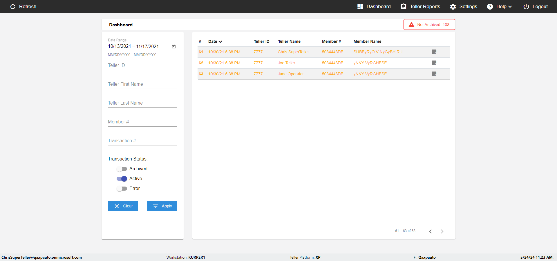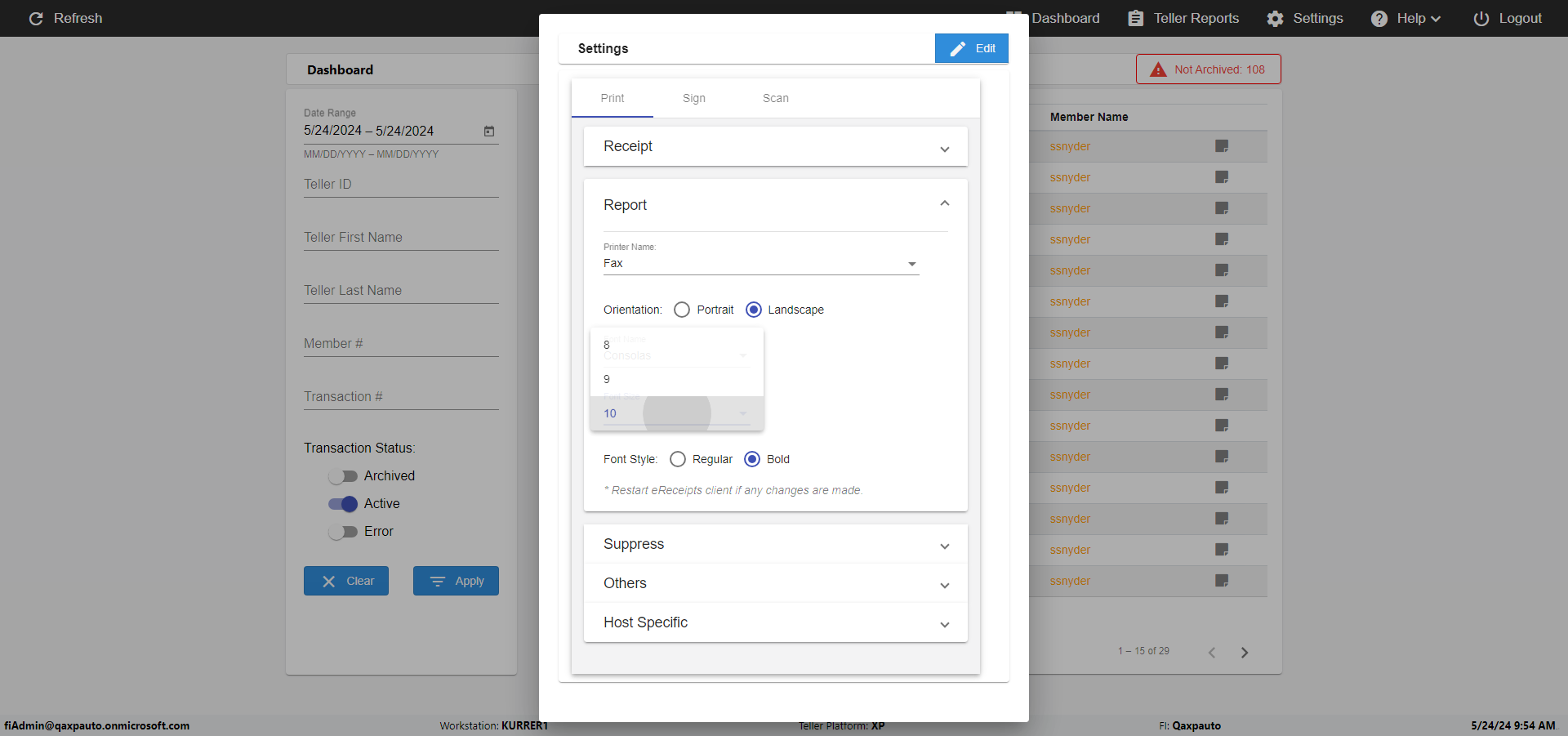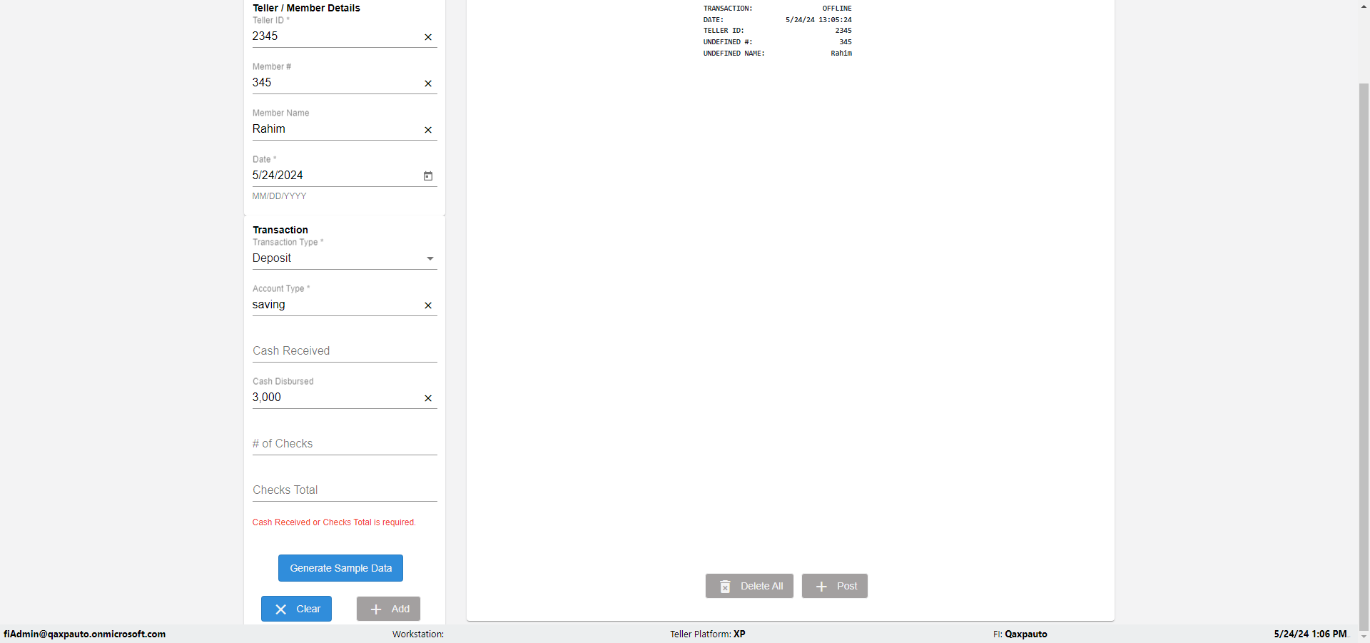 | 09:24:12 AM | Successfully navigated to 'eReceipts Teller' Page | |