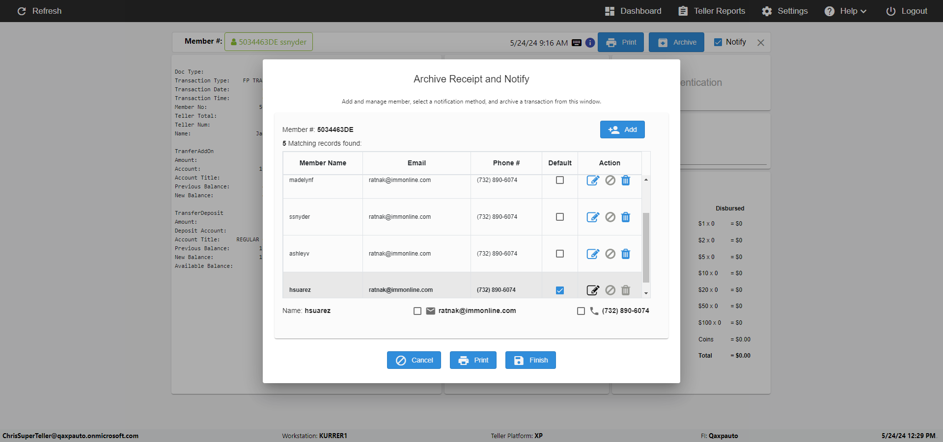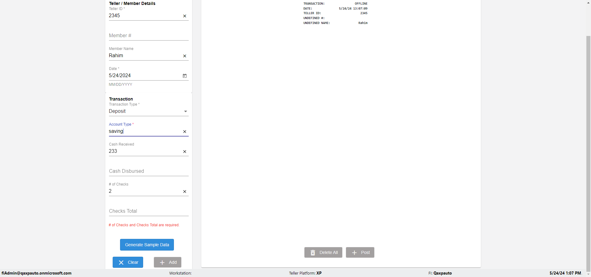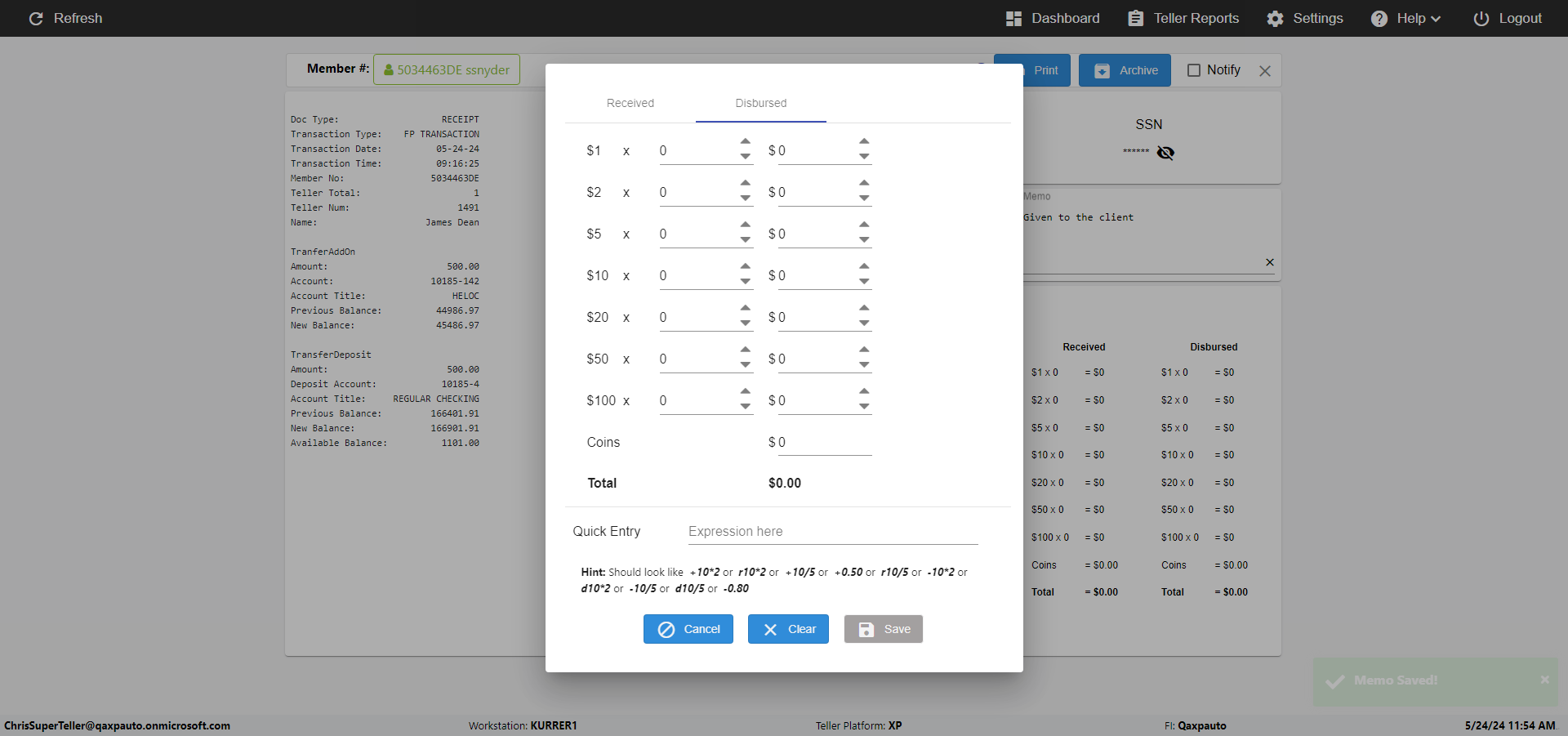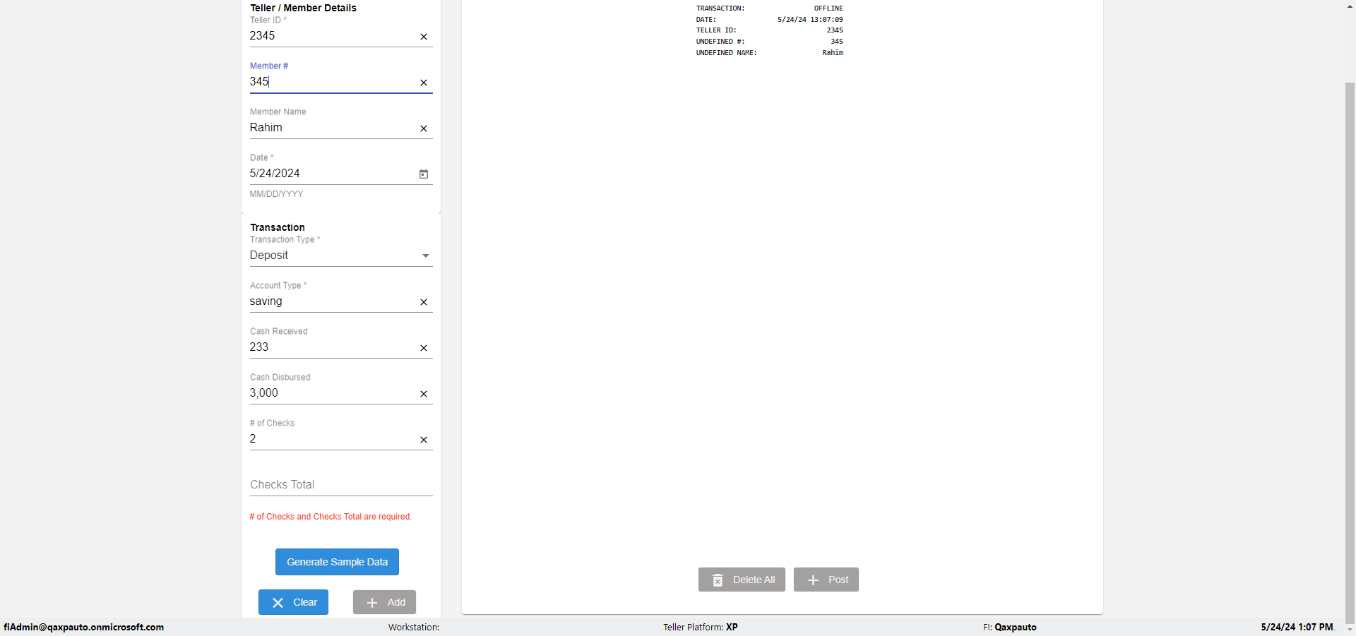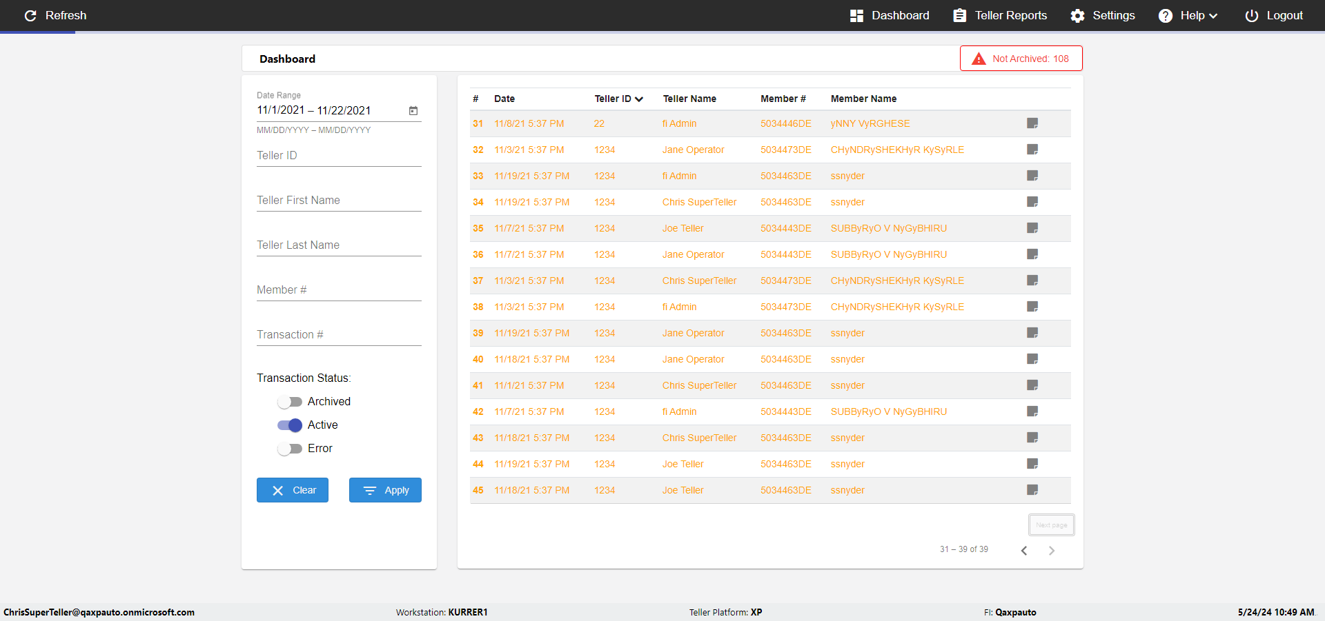 | 09:24:12 AM | Successfully navigated to 'eReceipts Teller' Page | |
