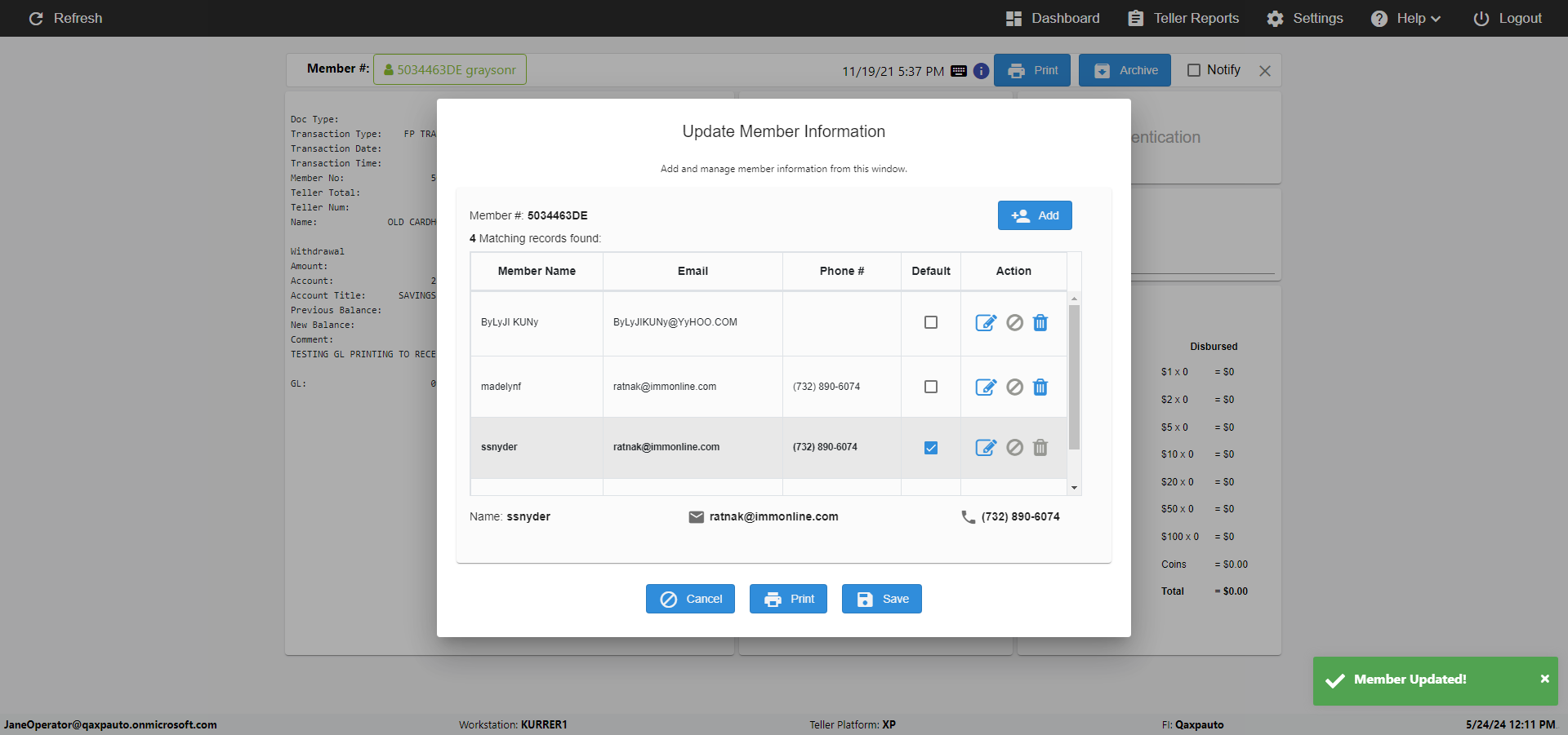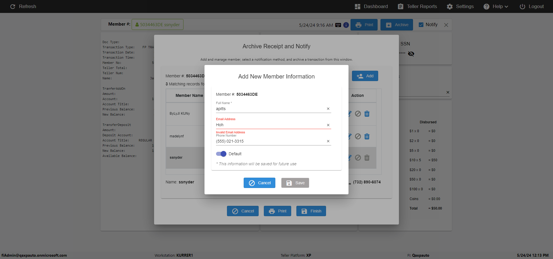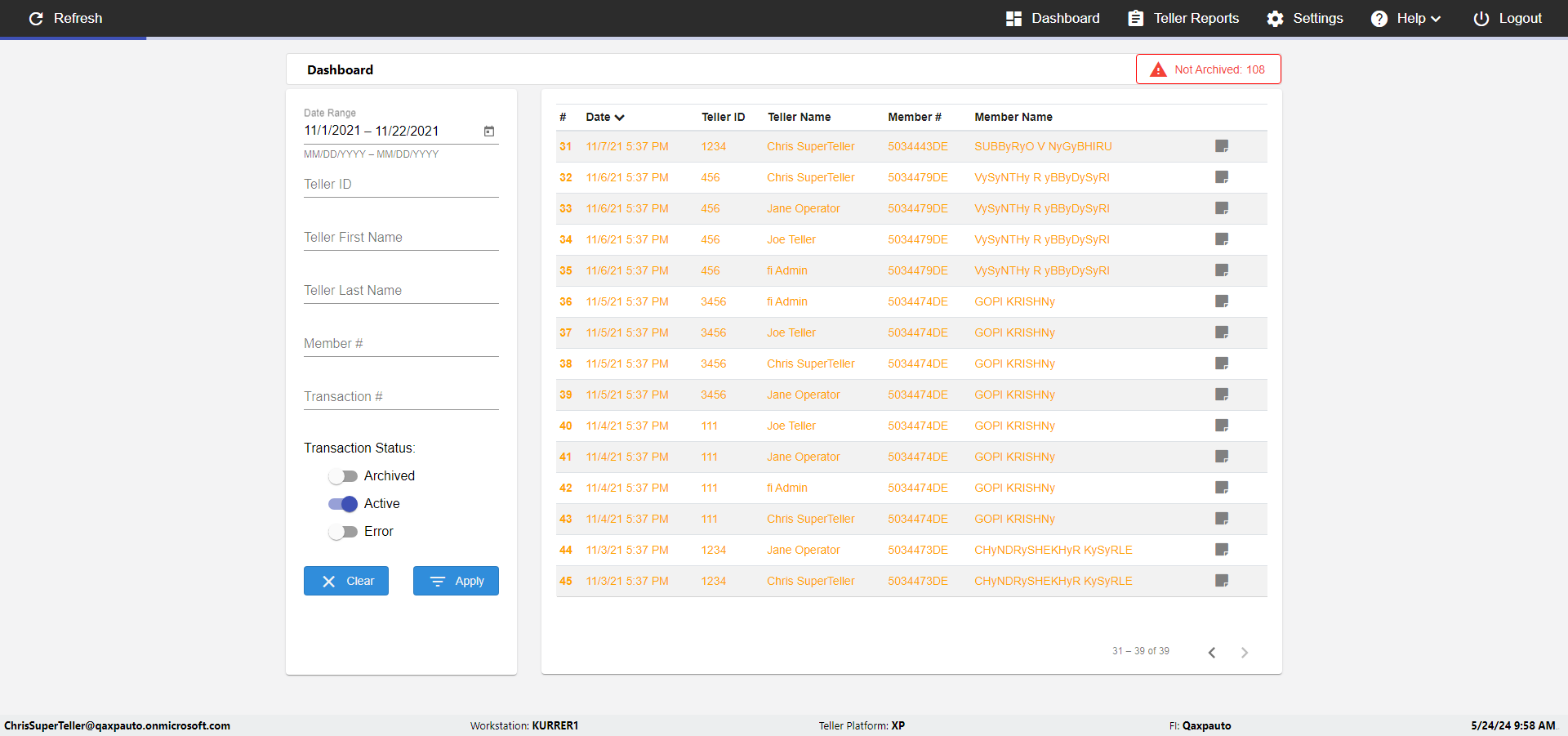 | 09:21:55 AM | Successfully navigated to 'eReceipts Teller' Page | |