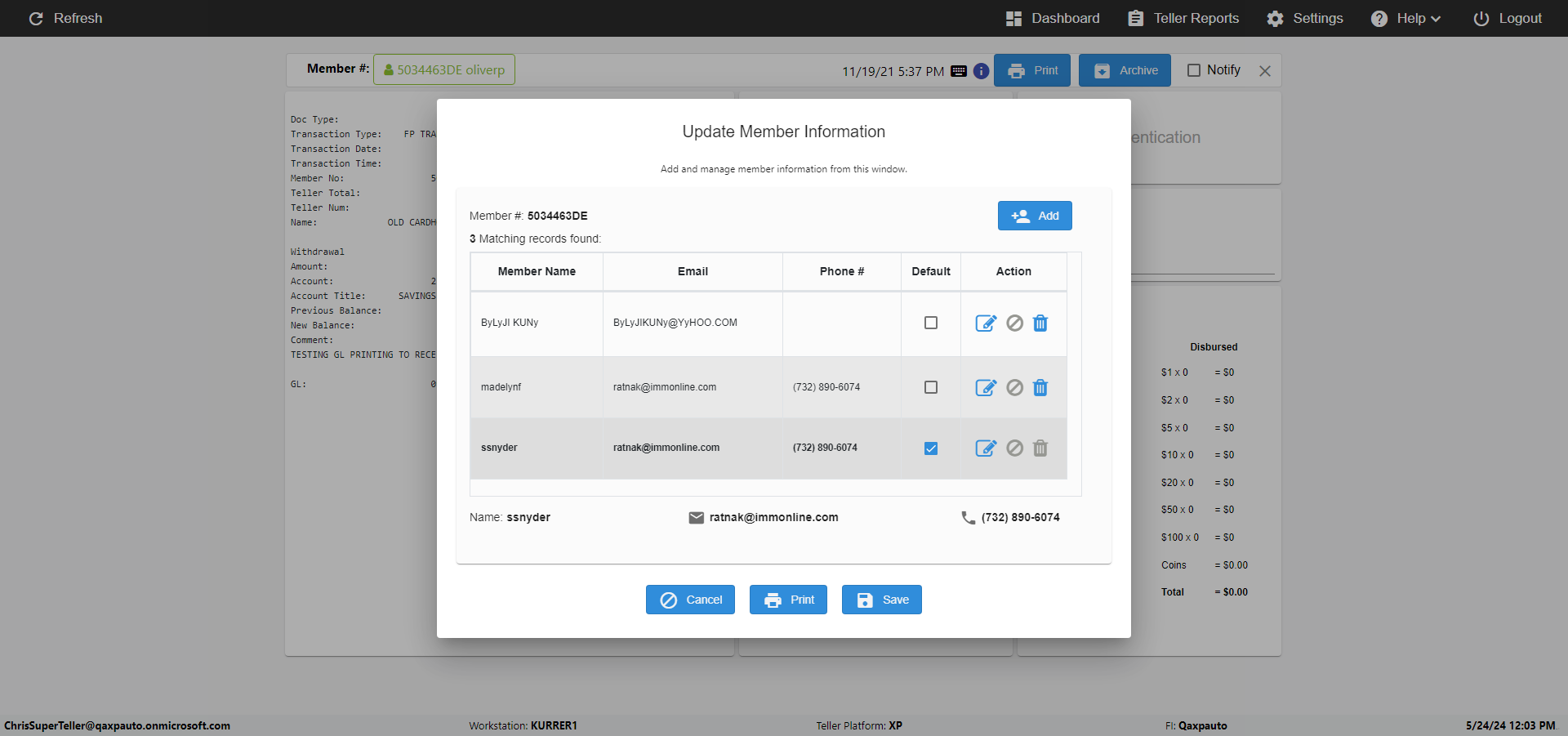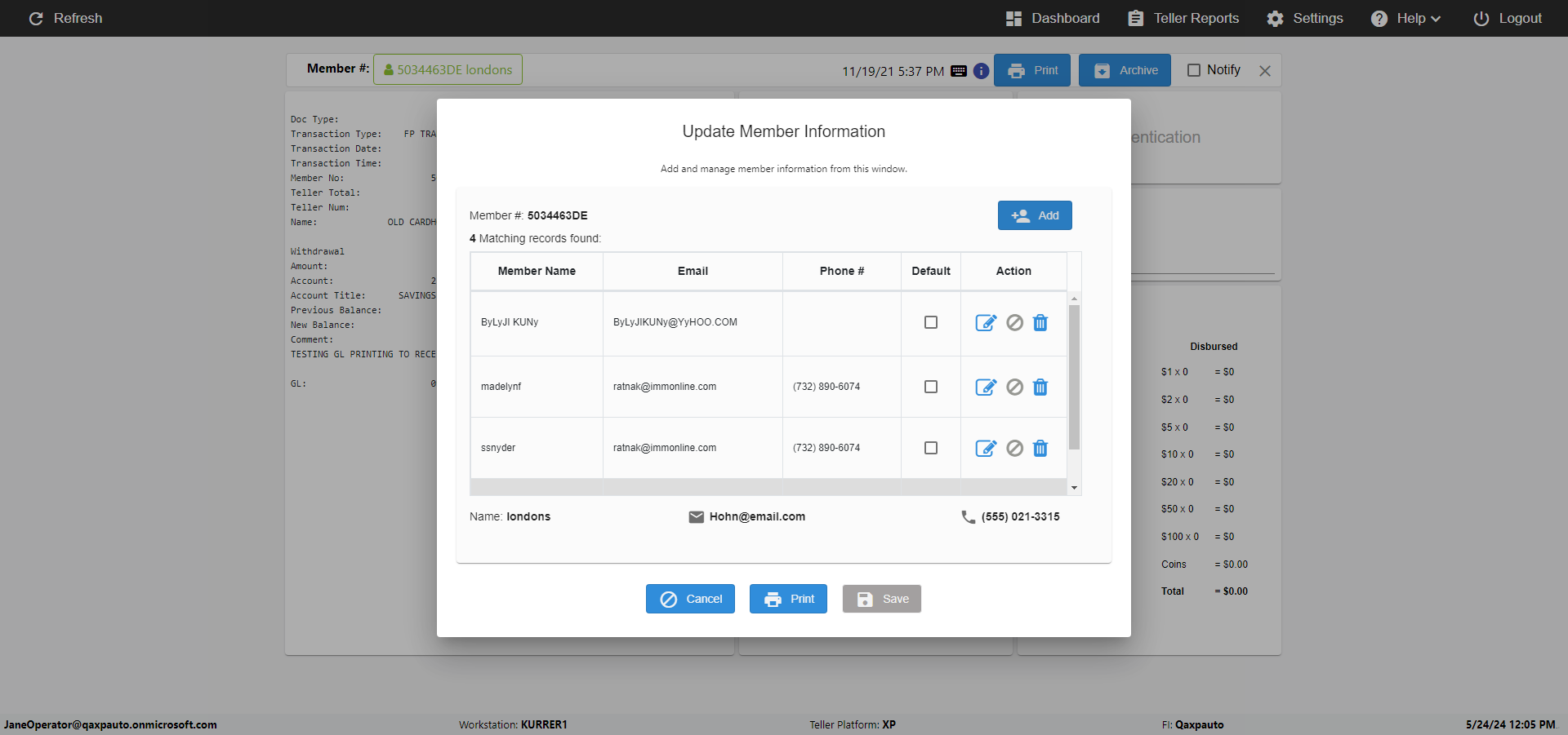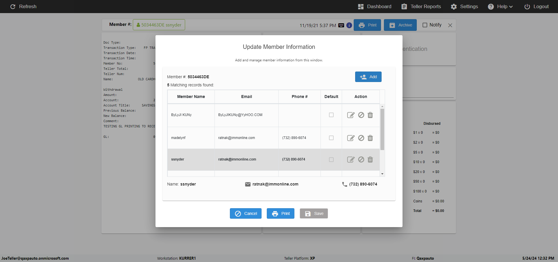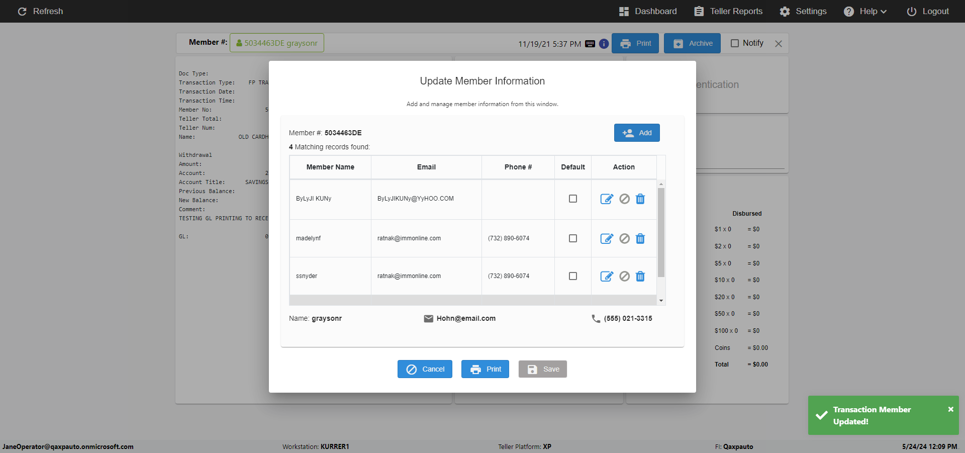 | 09:21:55 AM | Successfully navigated to 'eReceipts Teller' Page | |