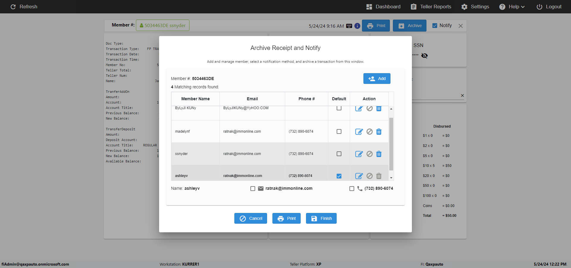 | 09:22:44 AM | Successfully navigated to 'eReceipts Teller' Page | |