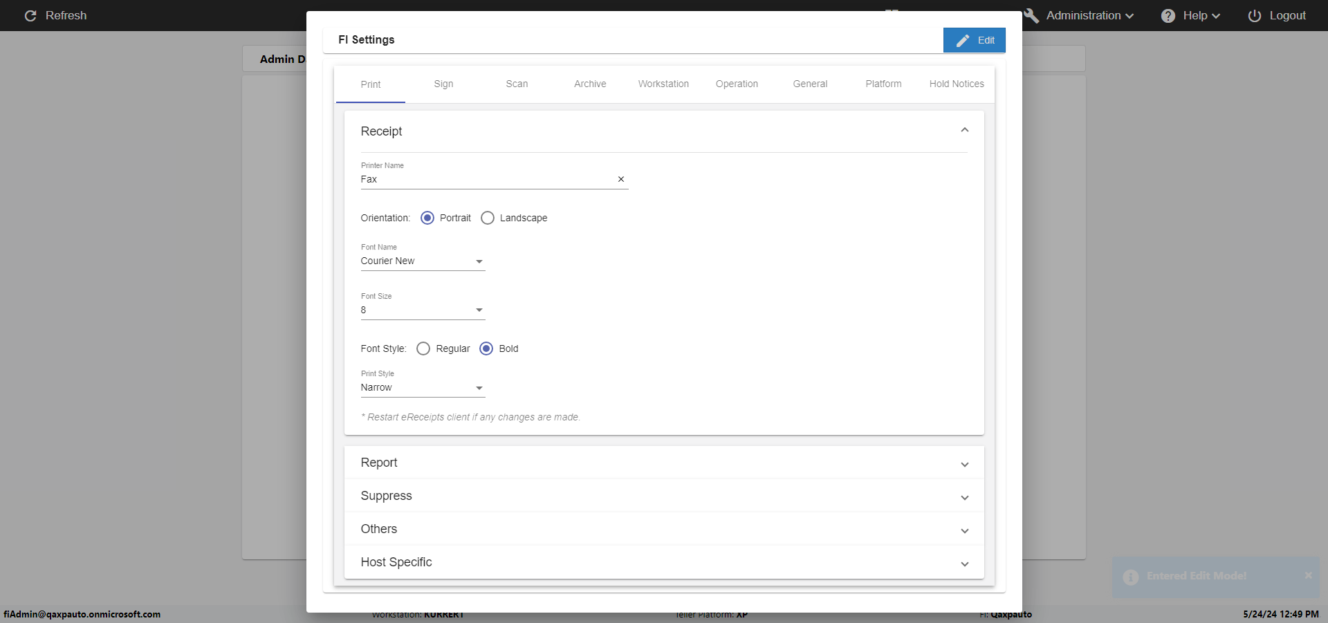 | 09:19:00 AM | Successfully navigated to 'eReceipts FI Admin' Page | |