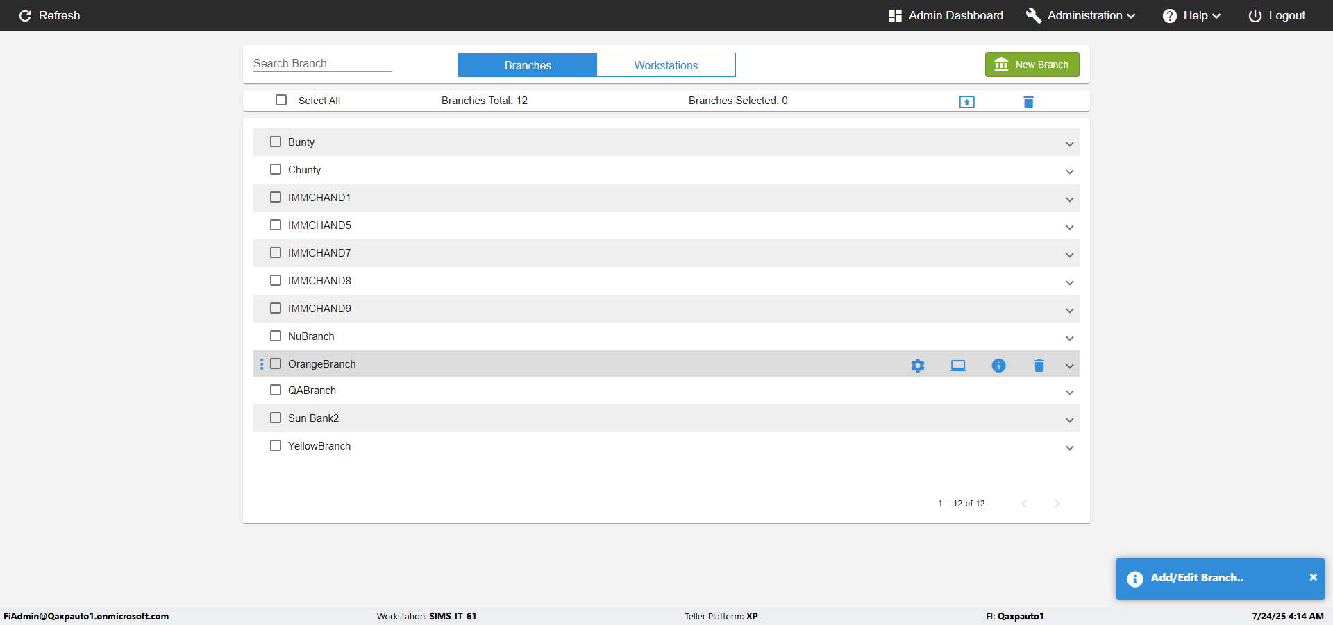 | 04:12:27 AM | Successfully navigated to the 'Branches' page [ScreenShot] | |