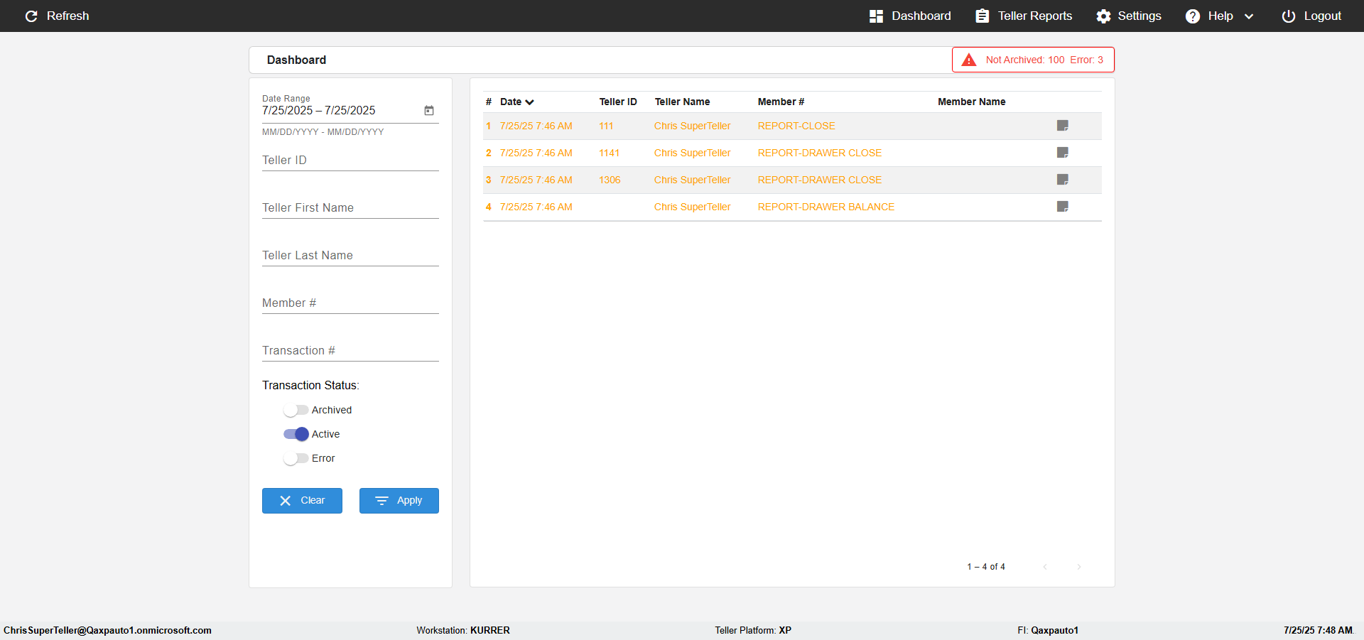 | 07:48:02 AM | Successfully navigated to 'eReceipts Teller' Page | |