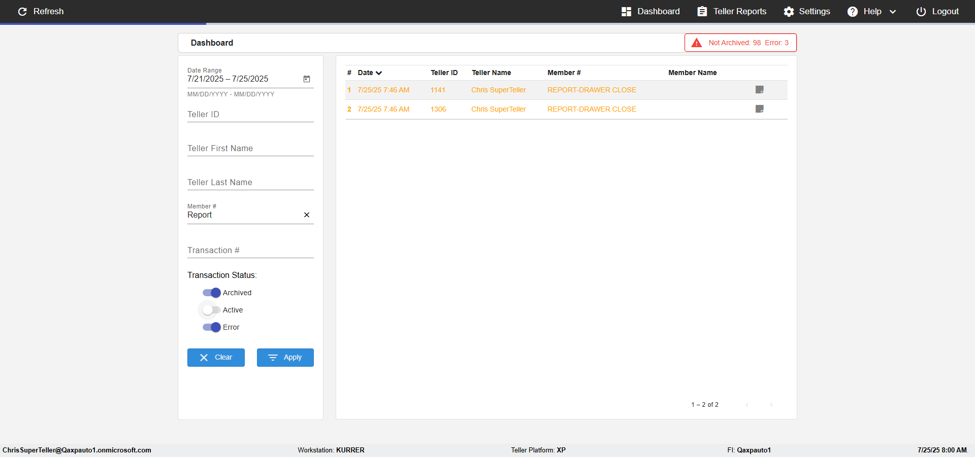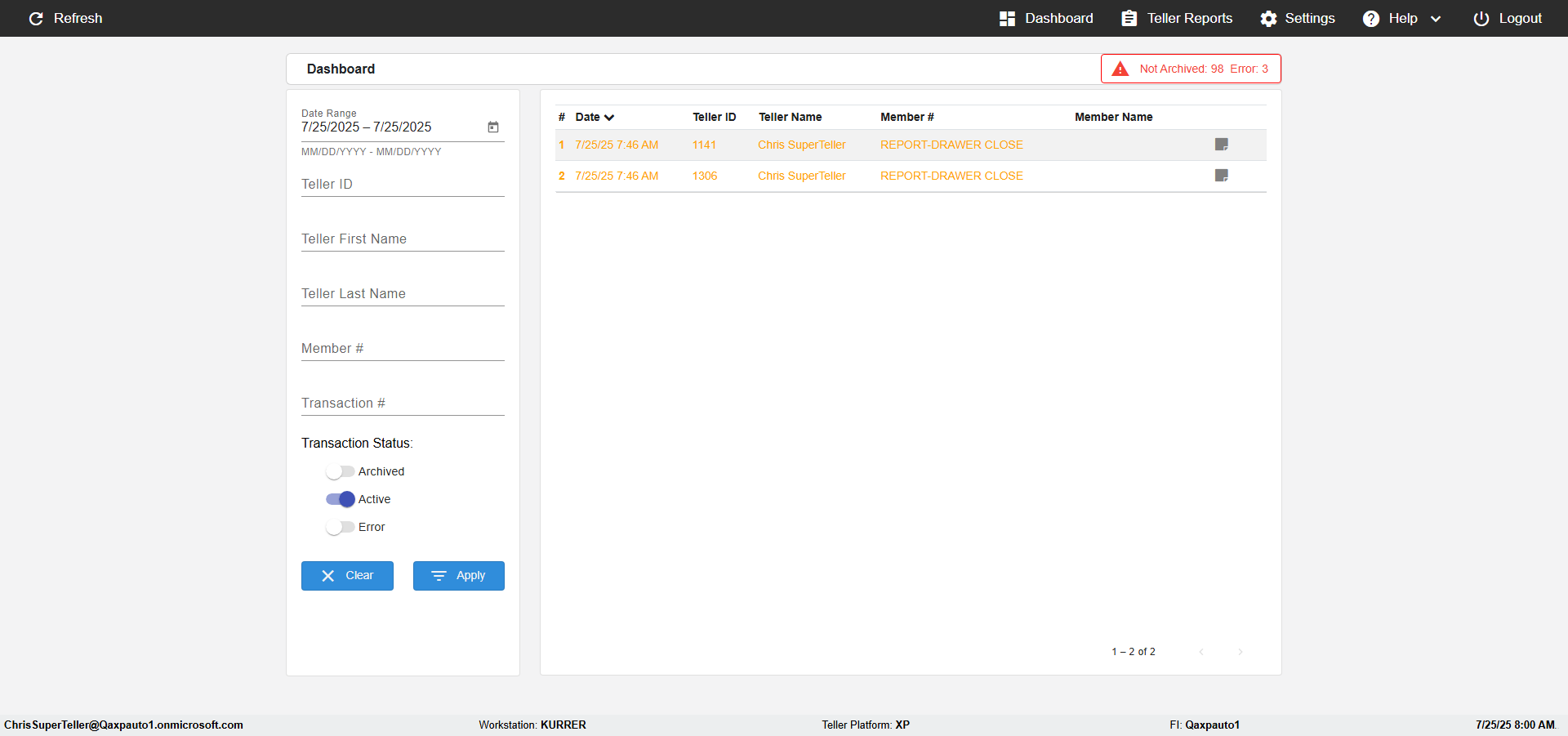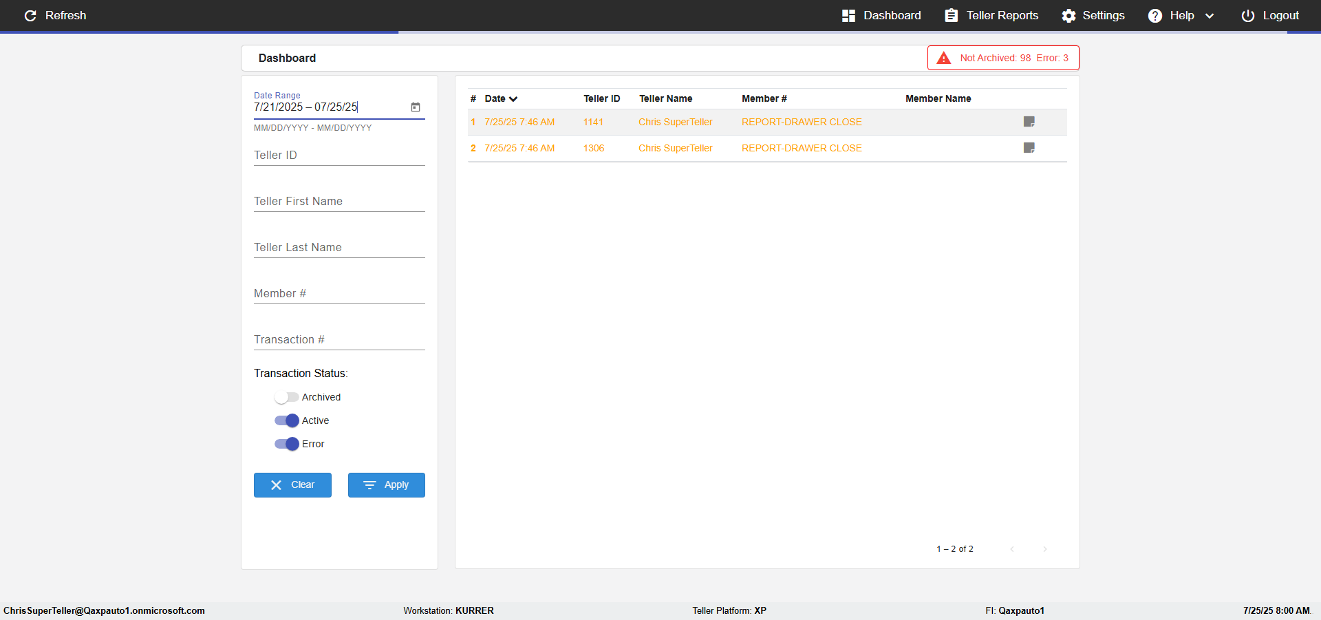 | 07:59:28 AM | Successfully navigated to 'eReceipts Teller' Page | |