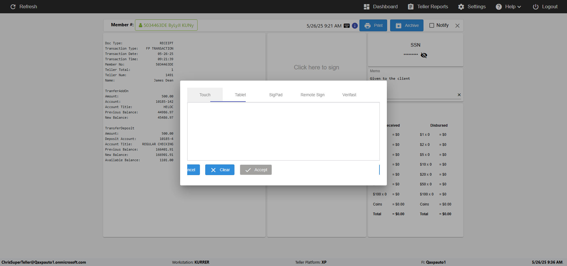 | 09:36:37 AM | Signed on Touch Pad and clicked on Accept button [ScreenShot] | |