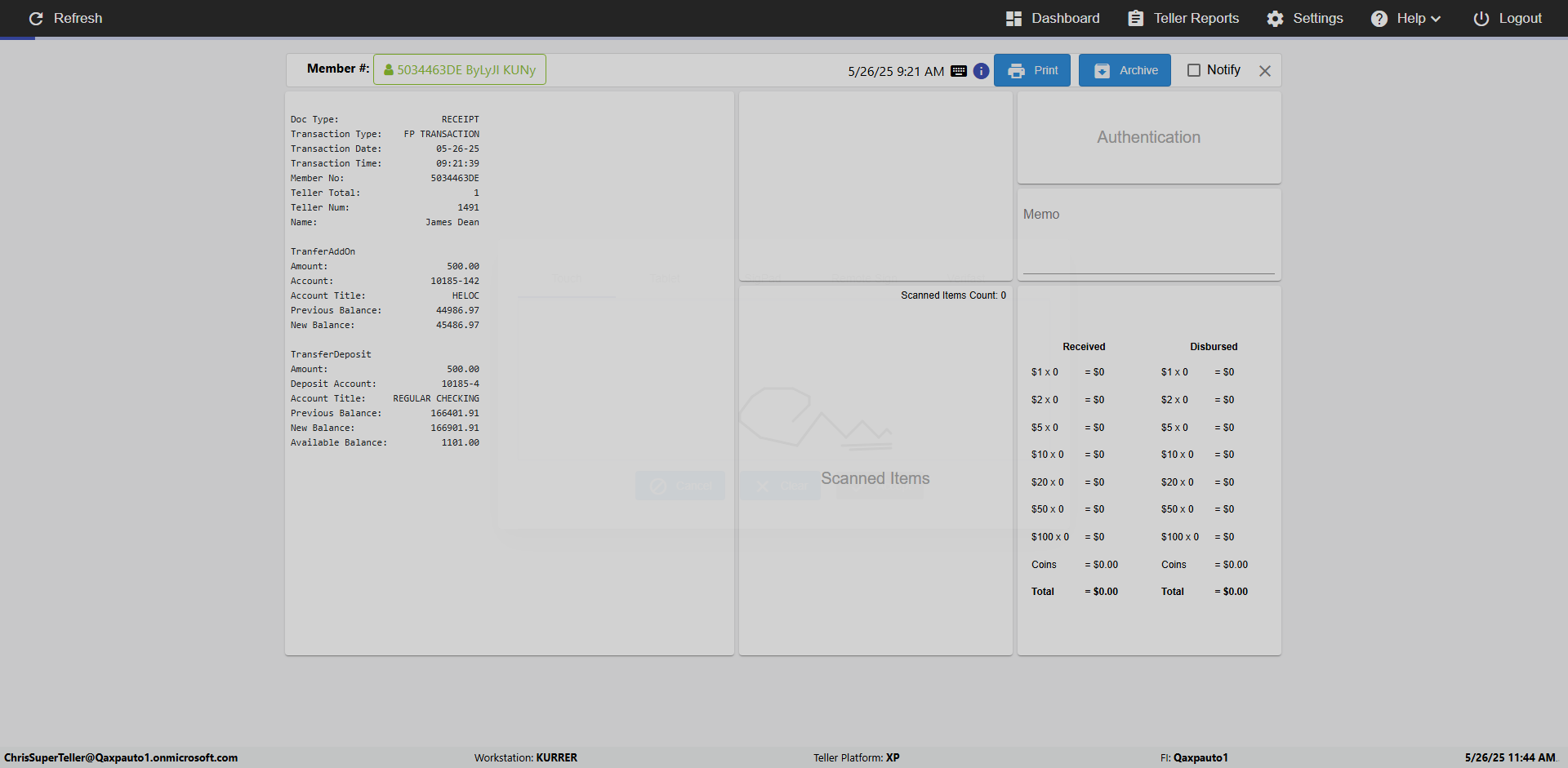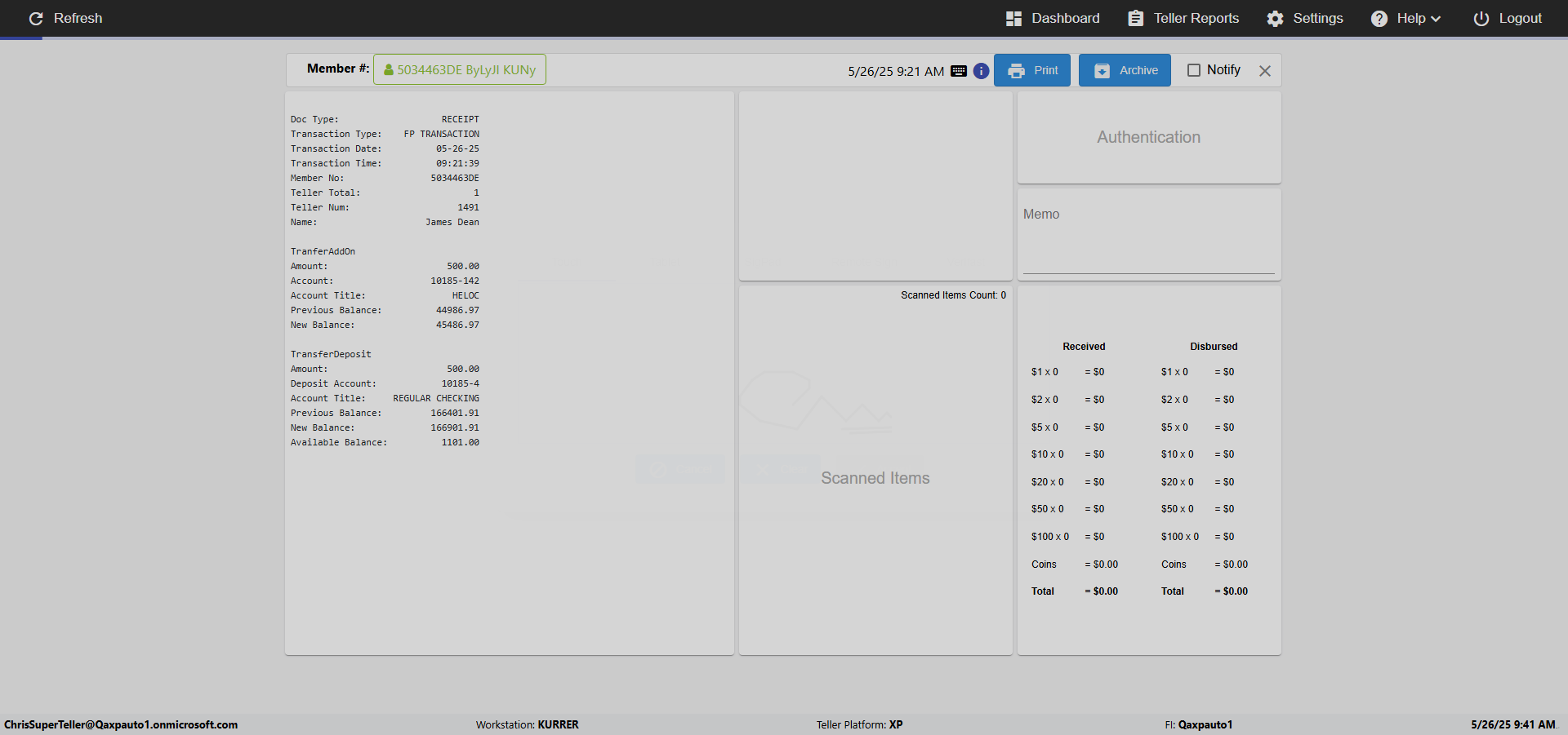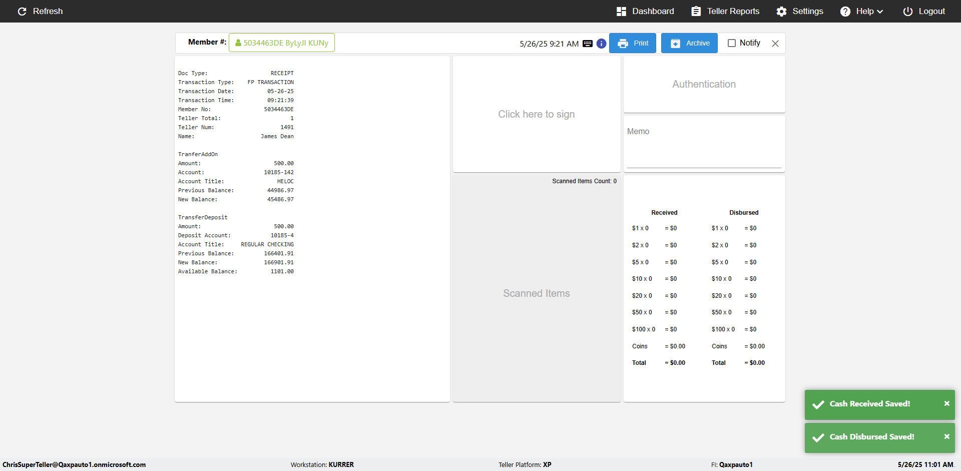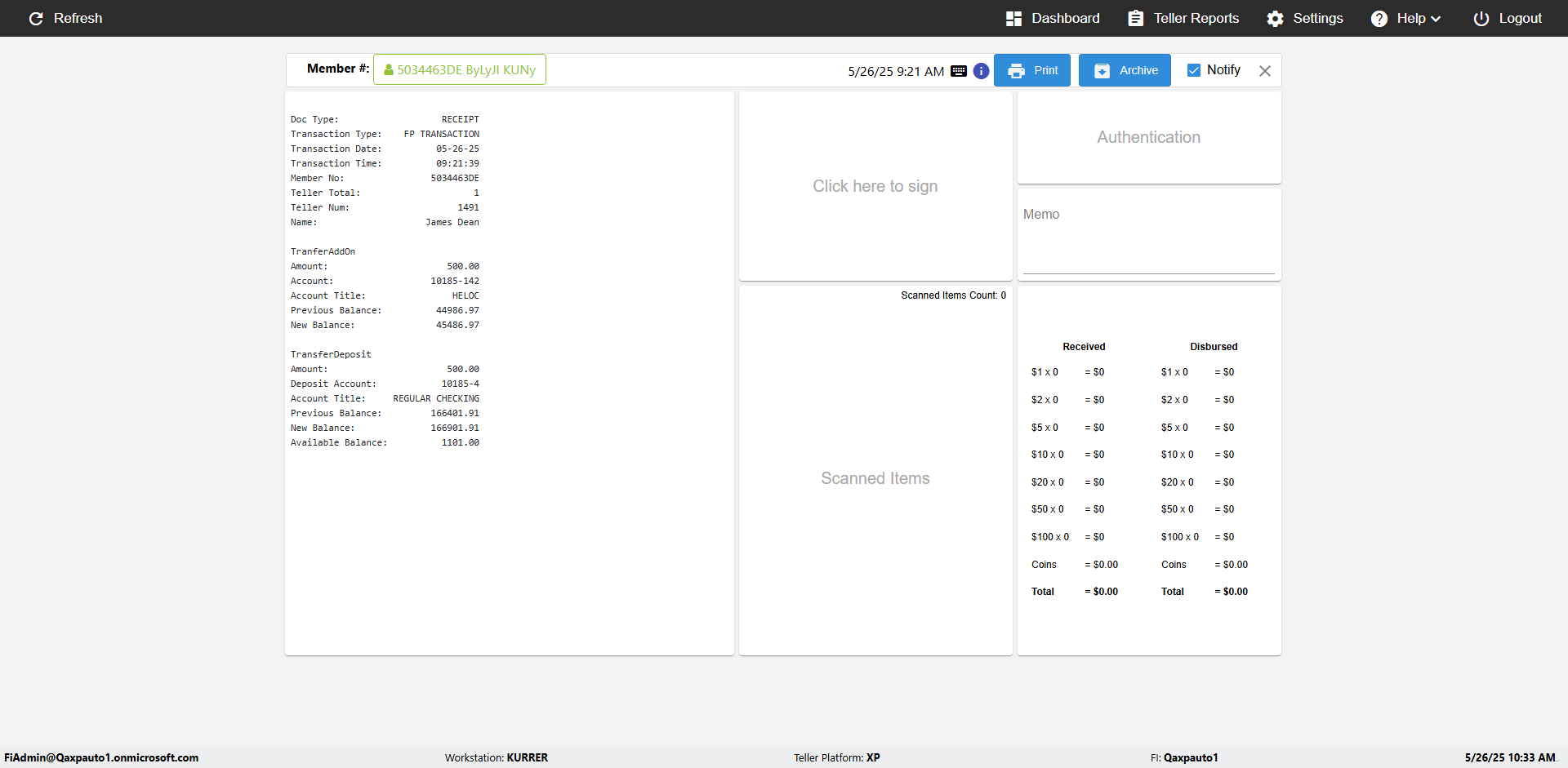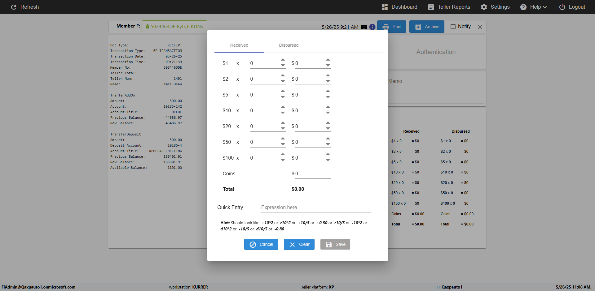 | 09:33:12 AM | Entered 'Teller' : [ScreenShot] | |