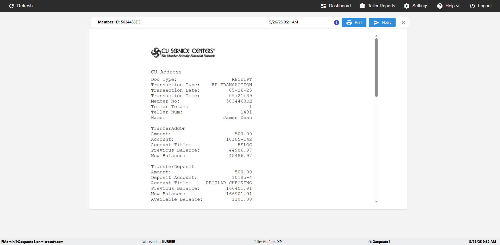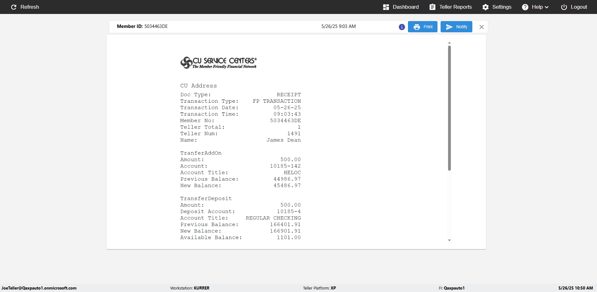 | 09:35:07 AM | Successfully navigated to 'eReceipts Teller' Page | |