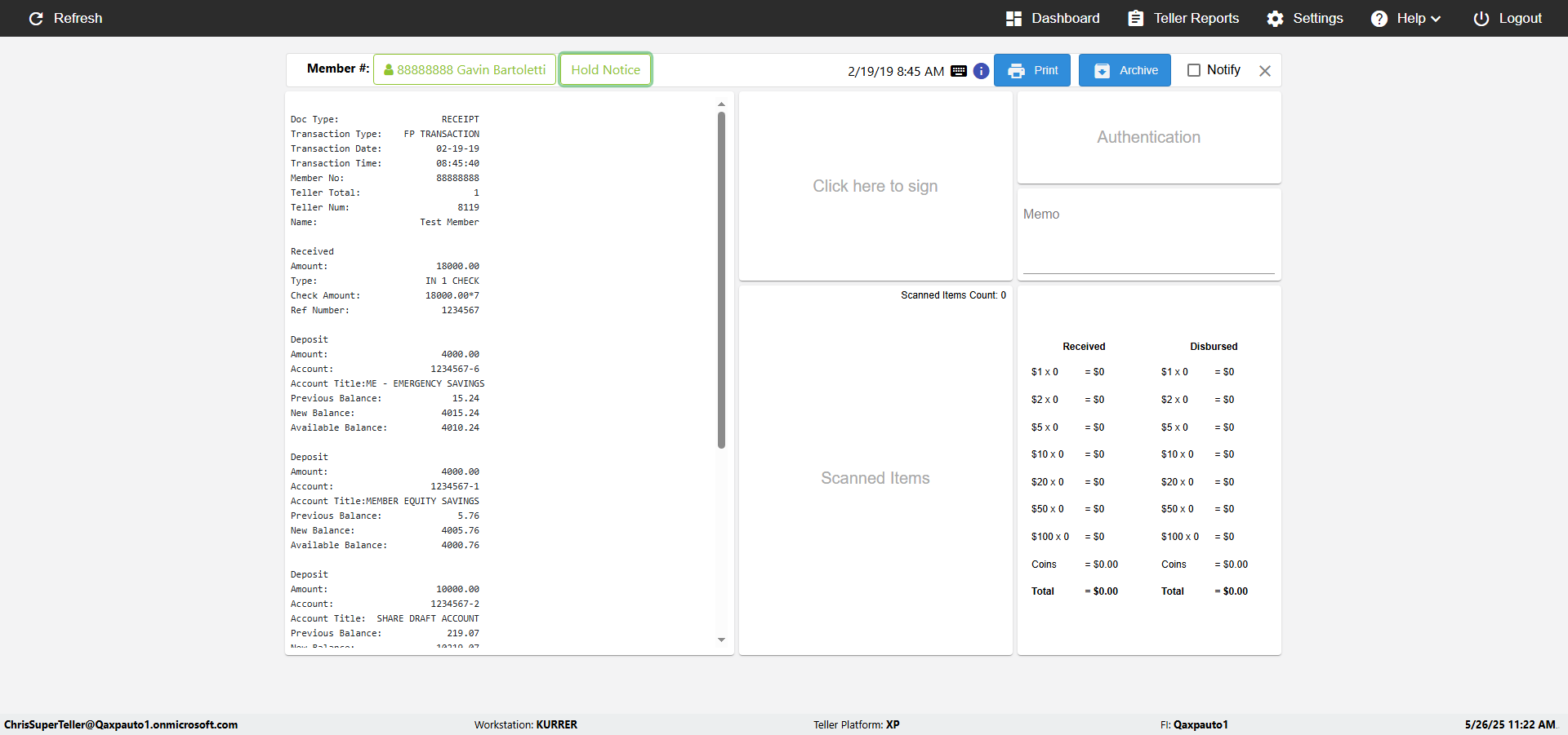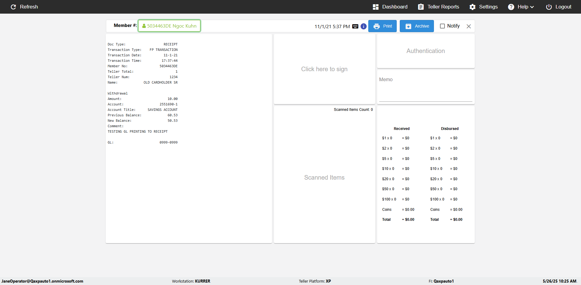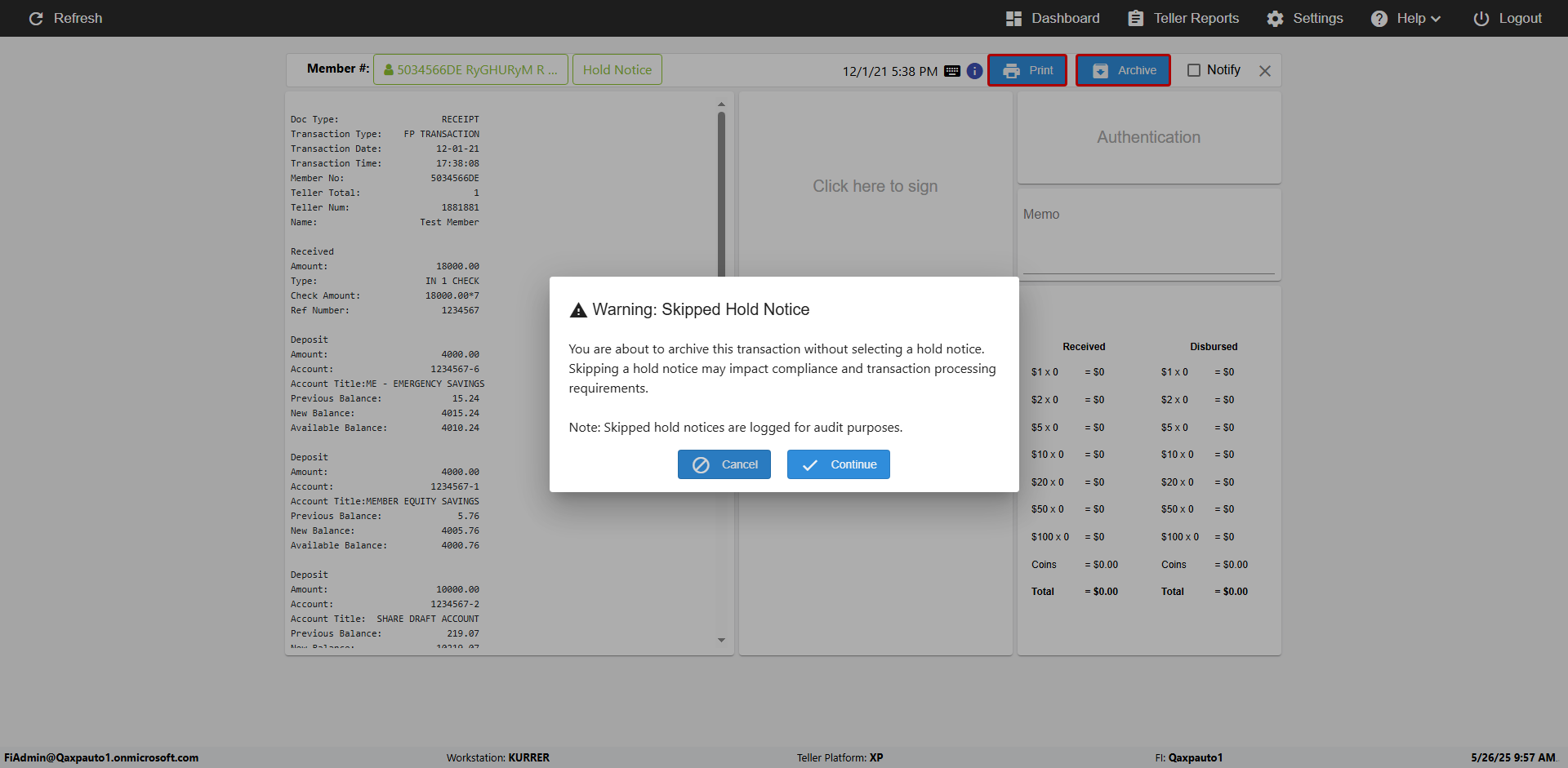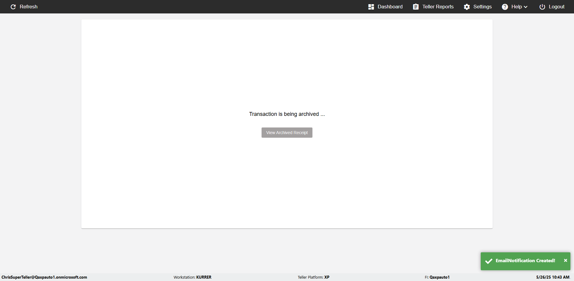 | 09:40:00 AM | Expected: check transaction status message Actual(Passed): Transaction is archived. [ScreenShot] |