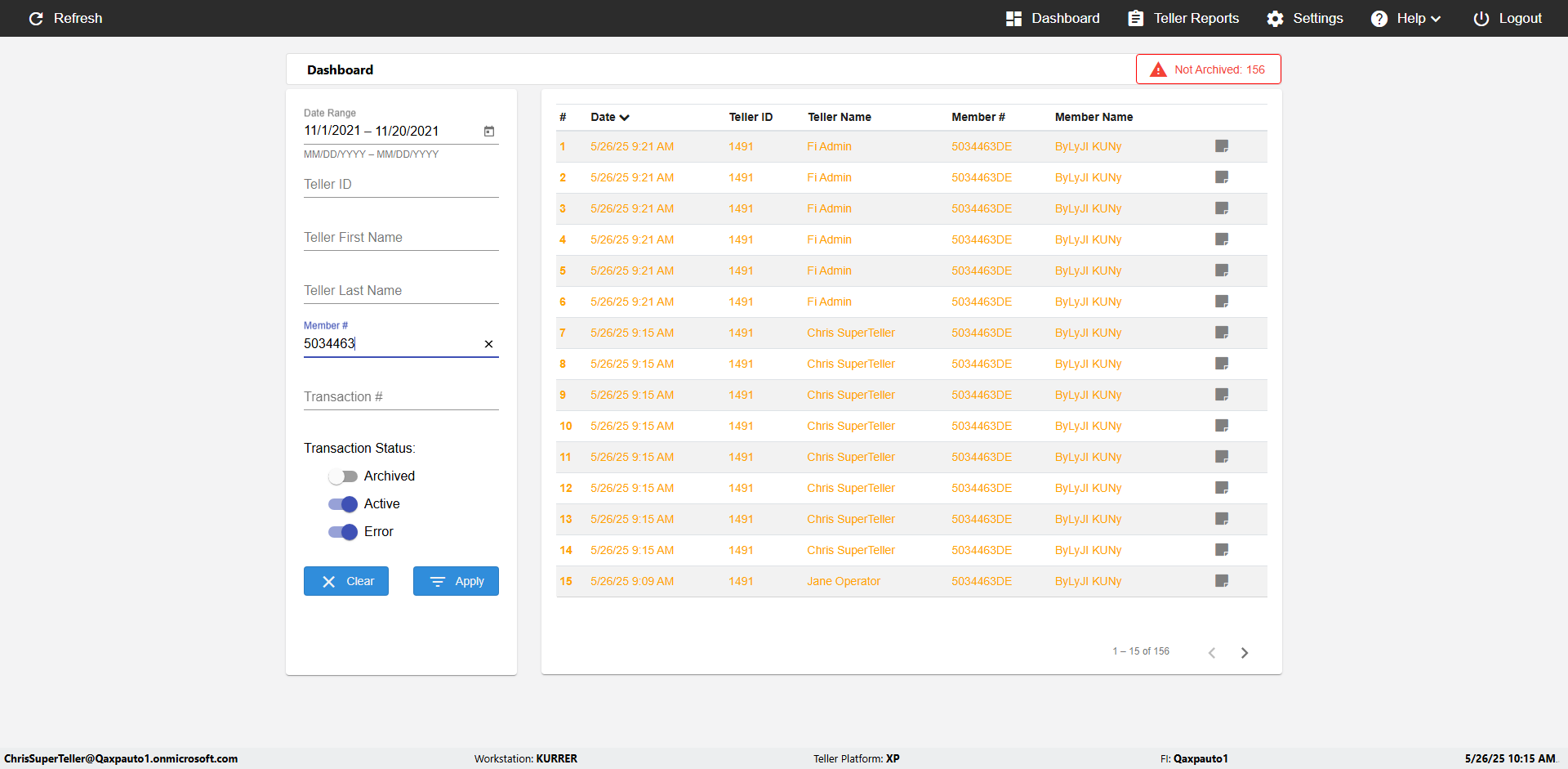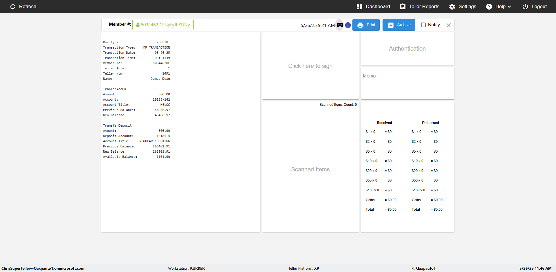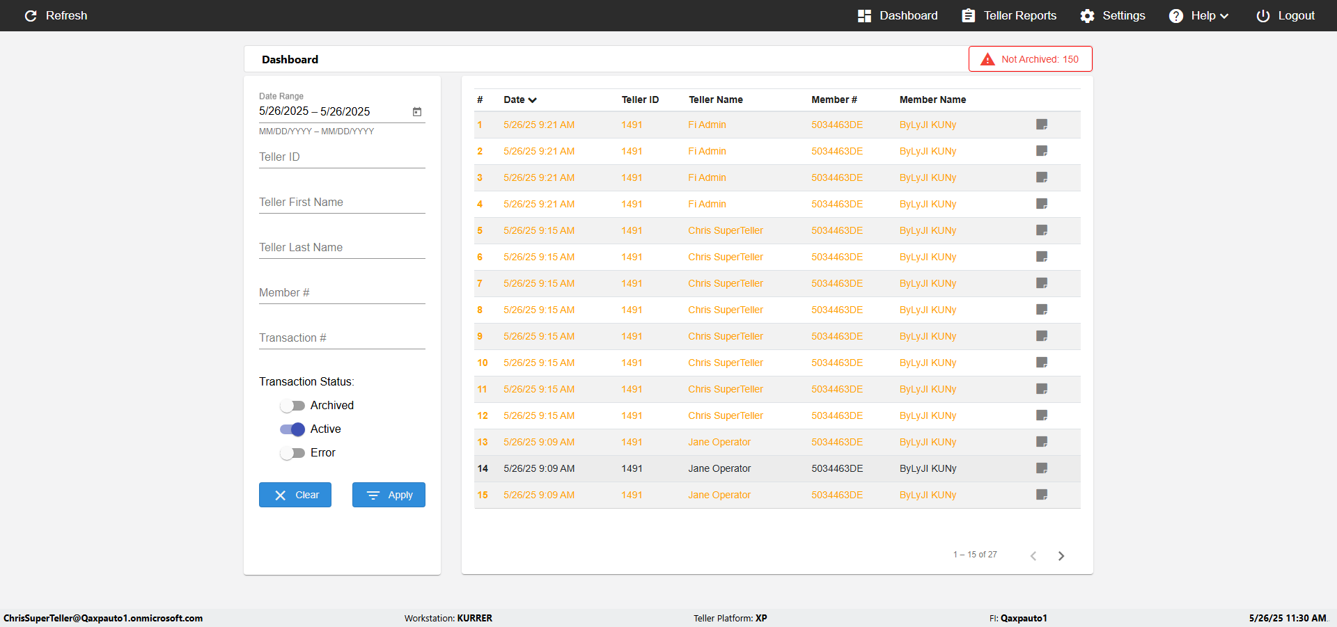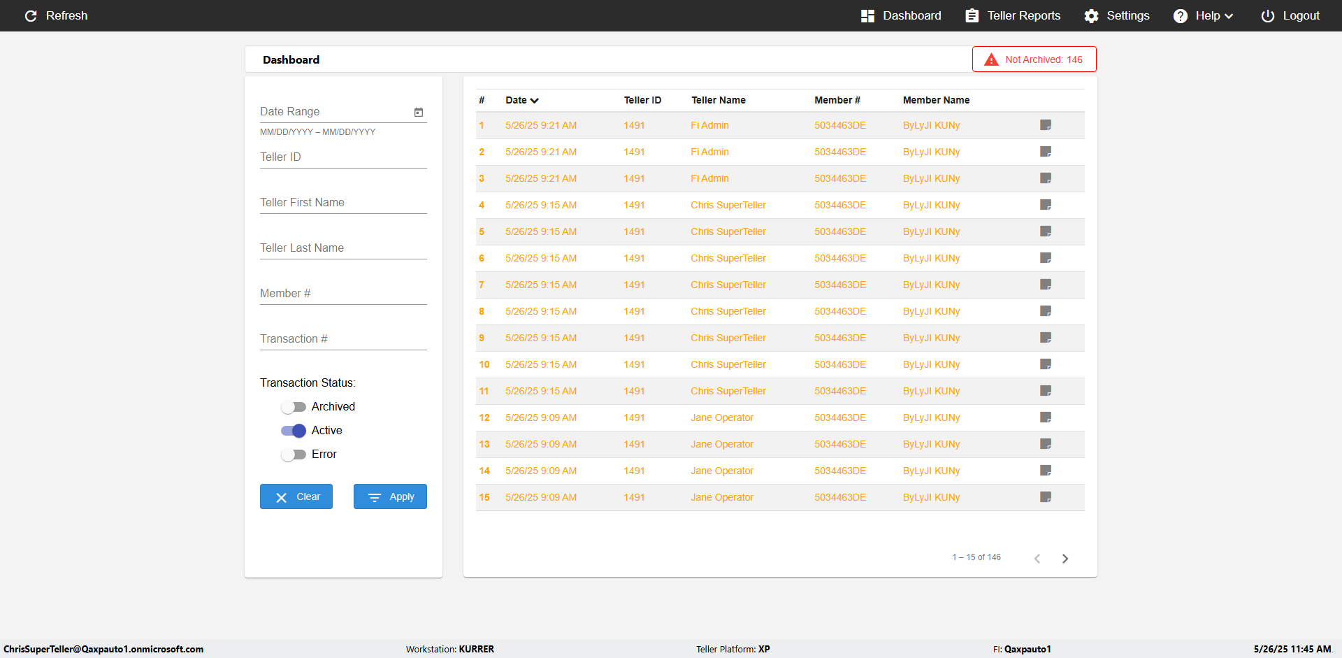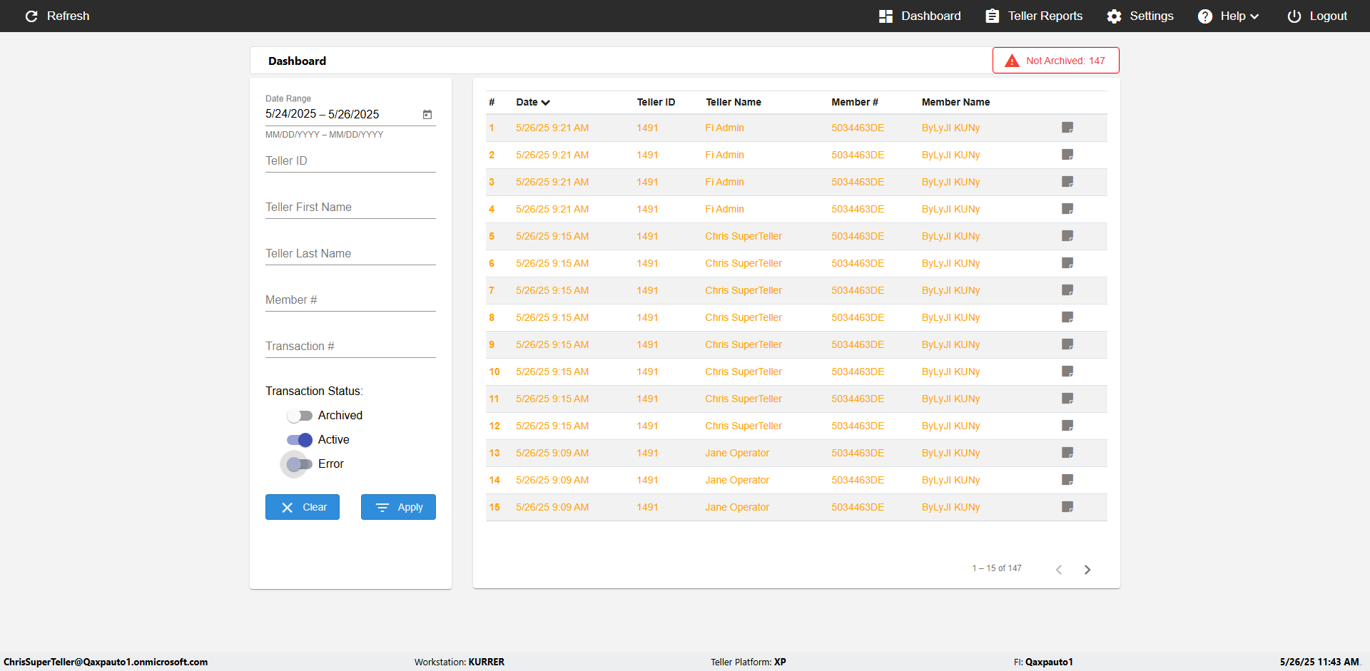 | 11:45:24 AM | Entered 'Teller' : [ScreenShot] | |