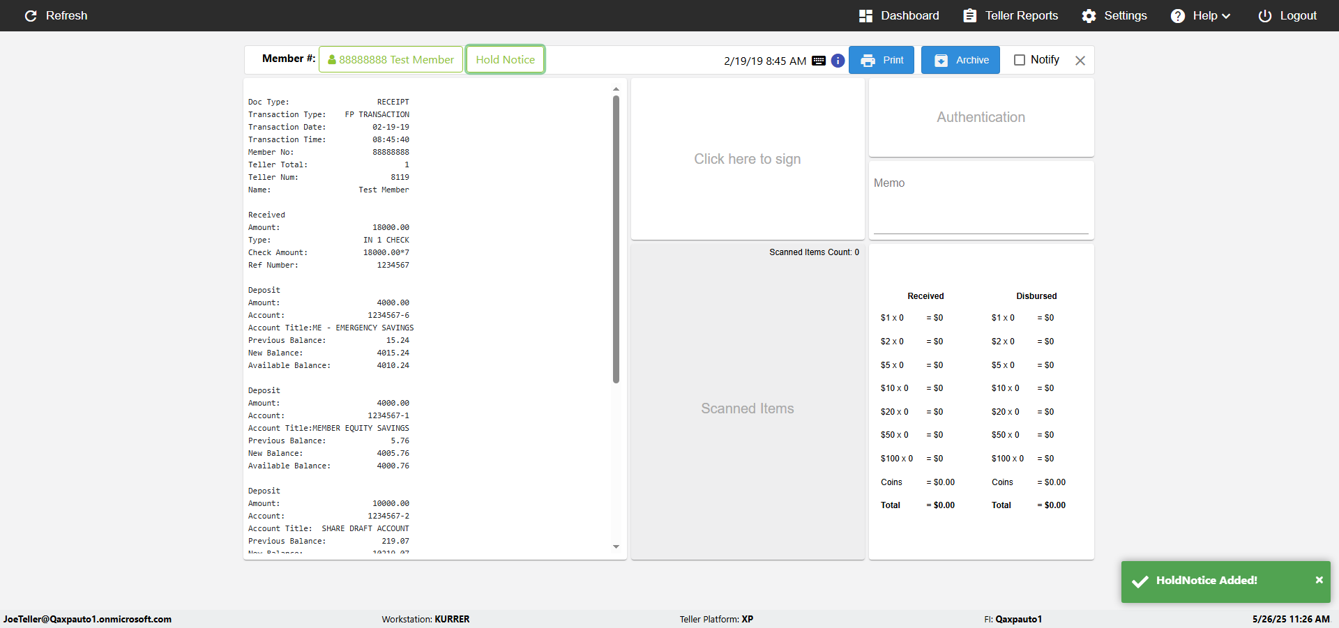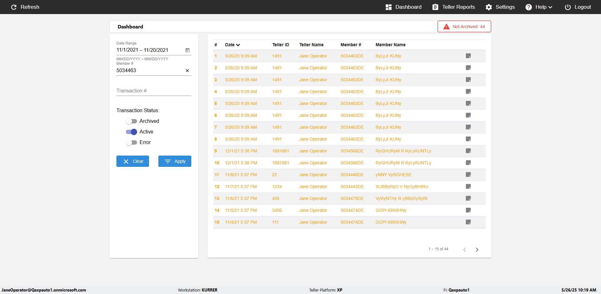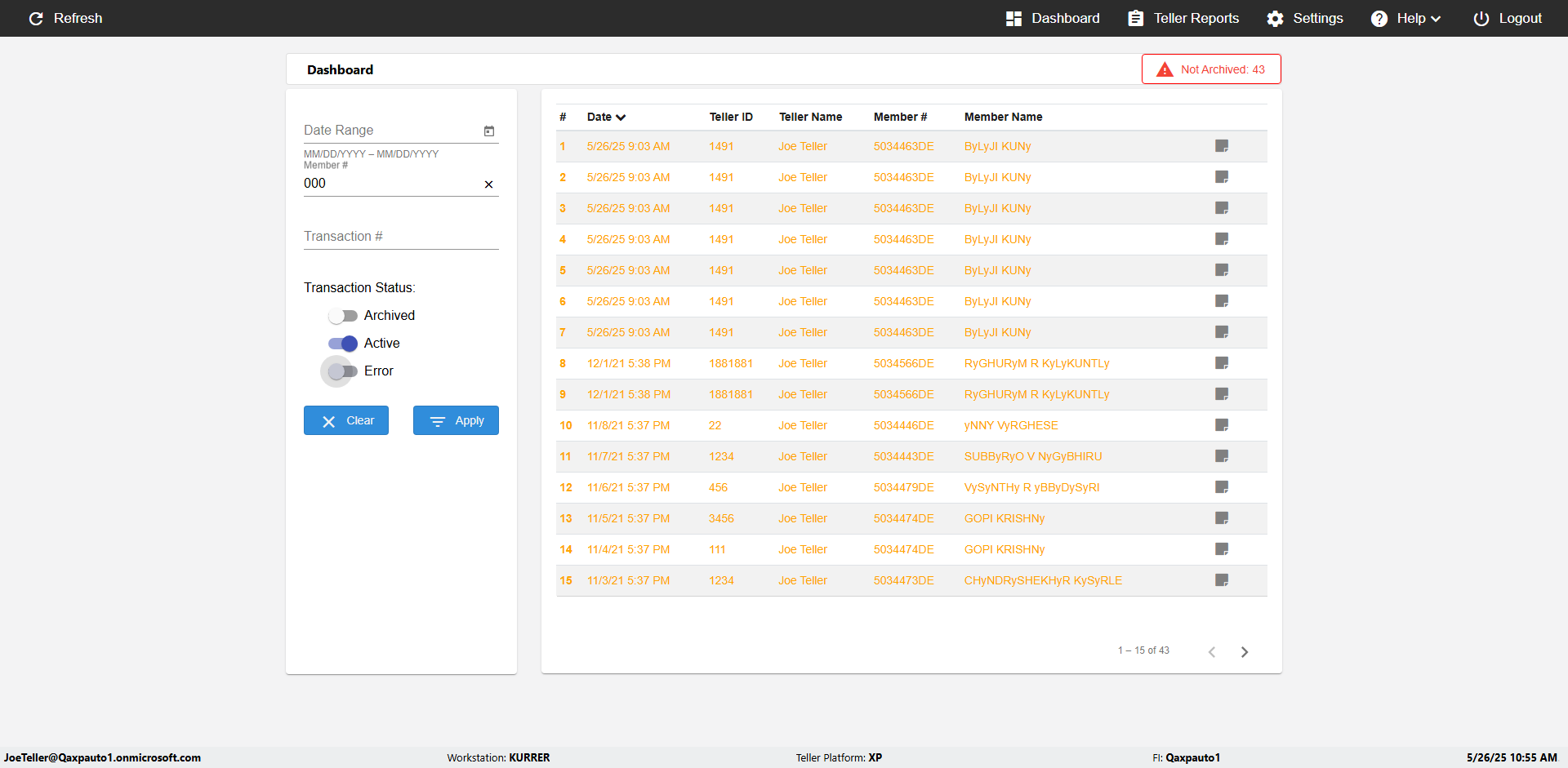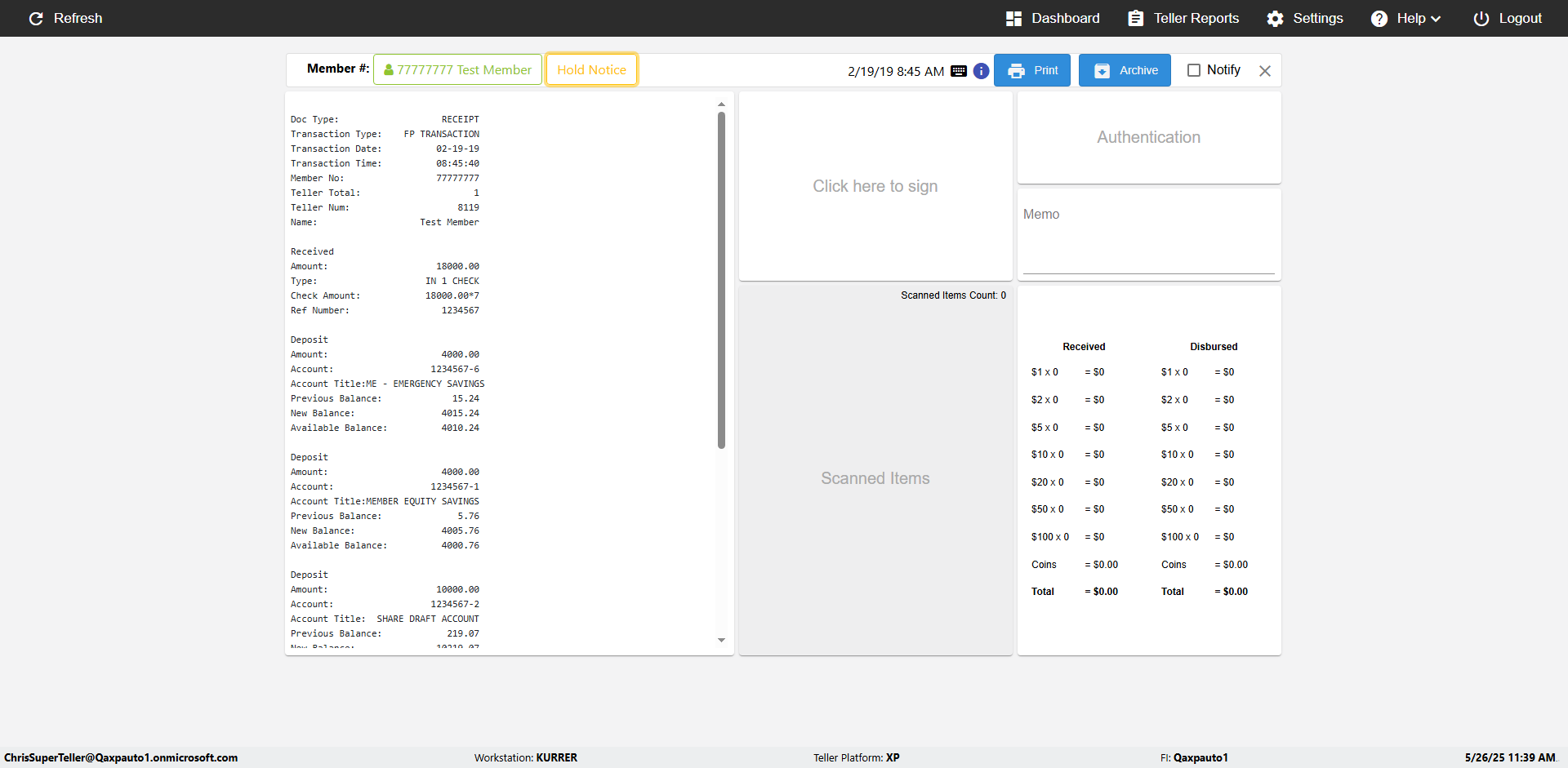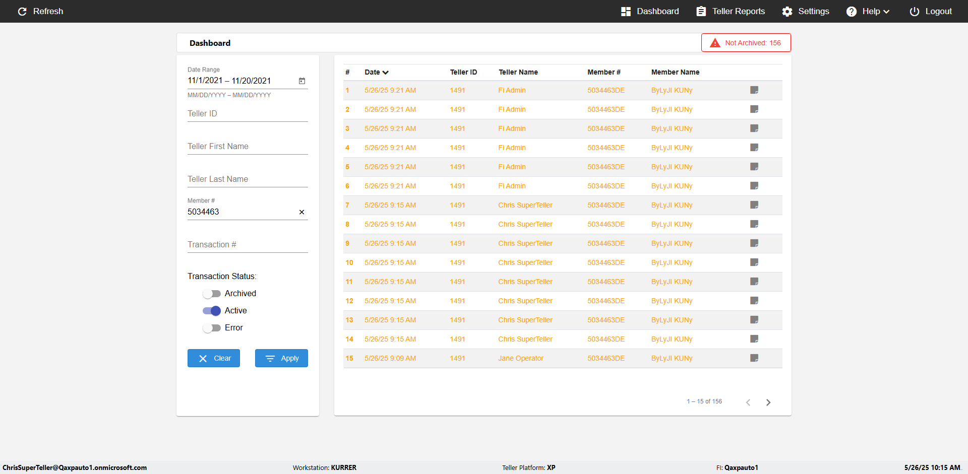 | 11:45:24 AM | Entered 'Teller' : [ScreenShot] | |