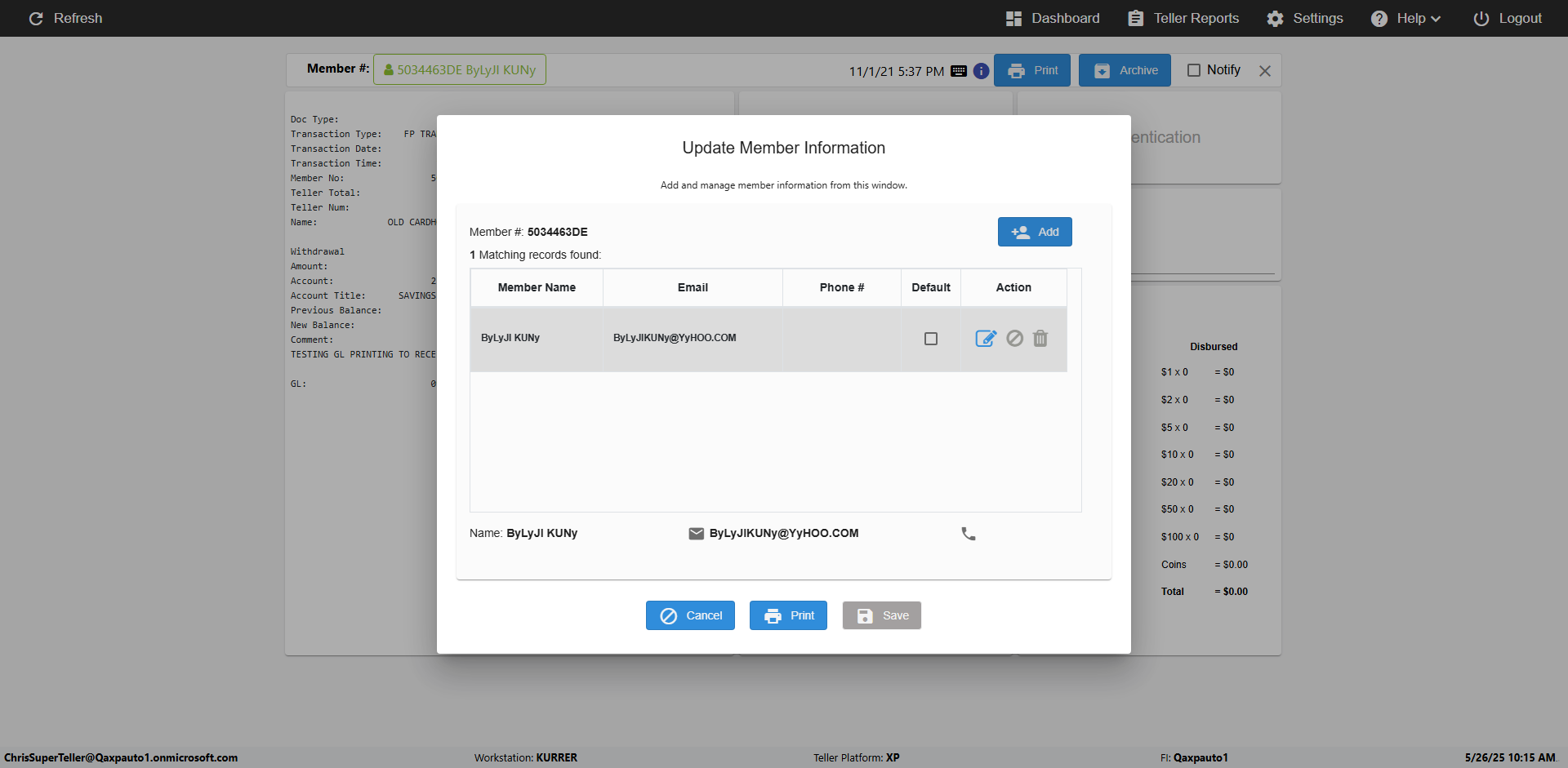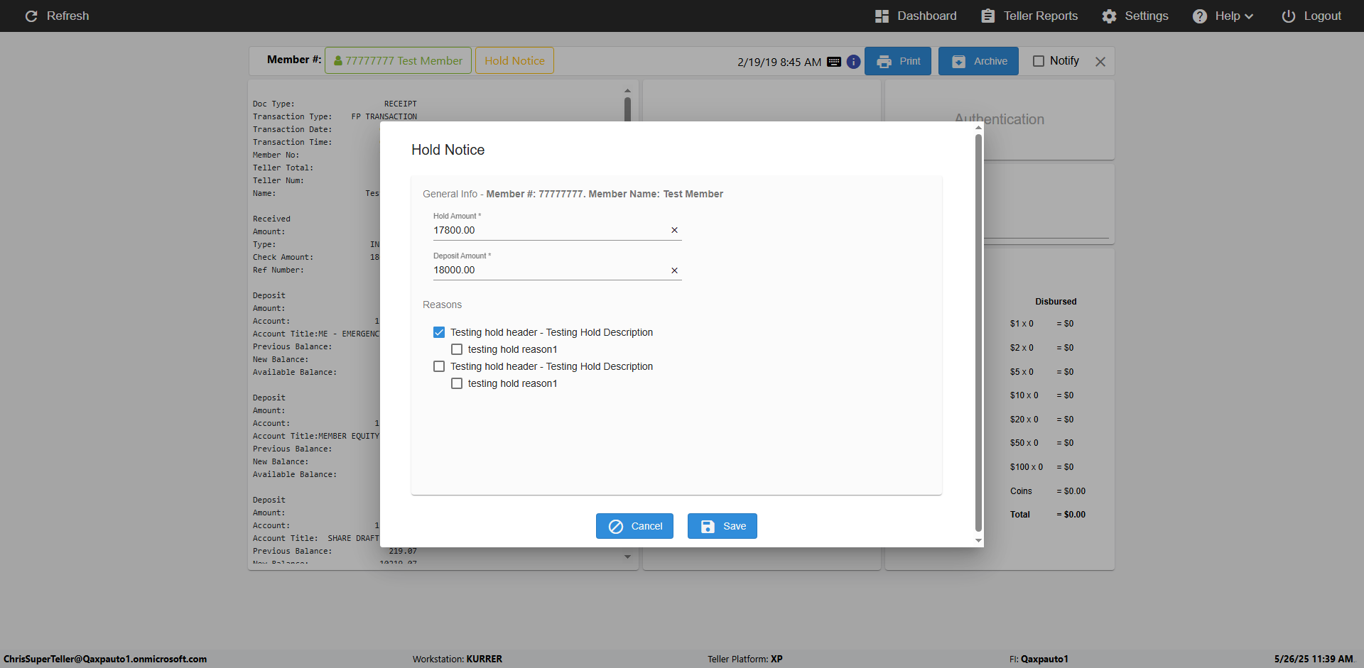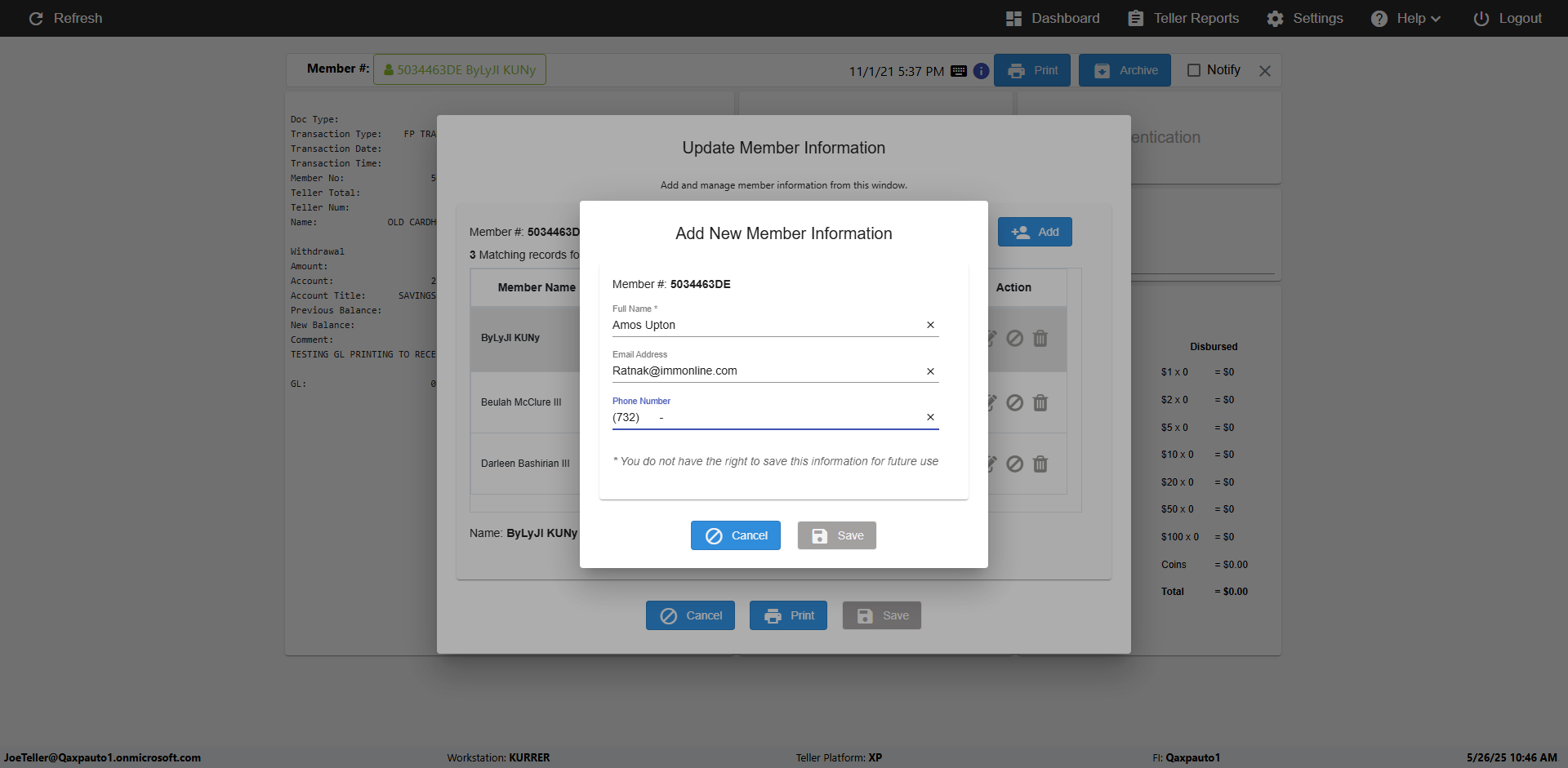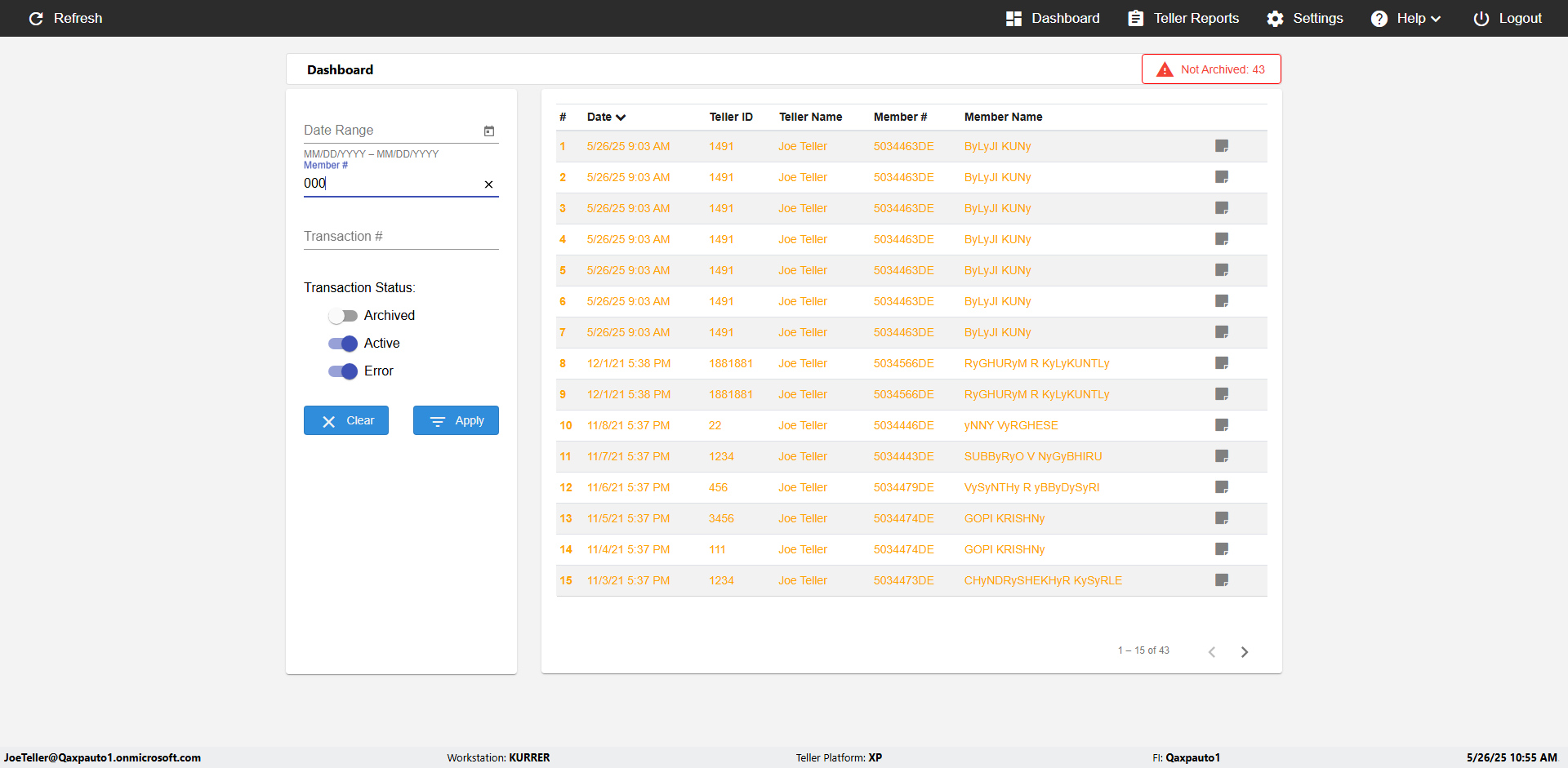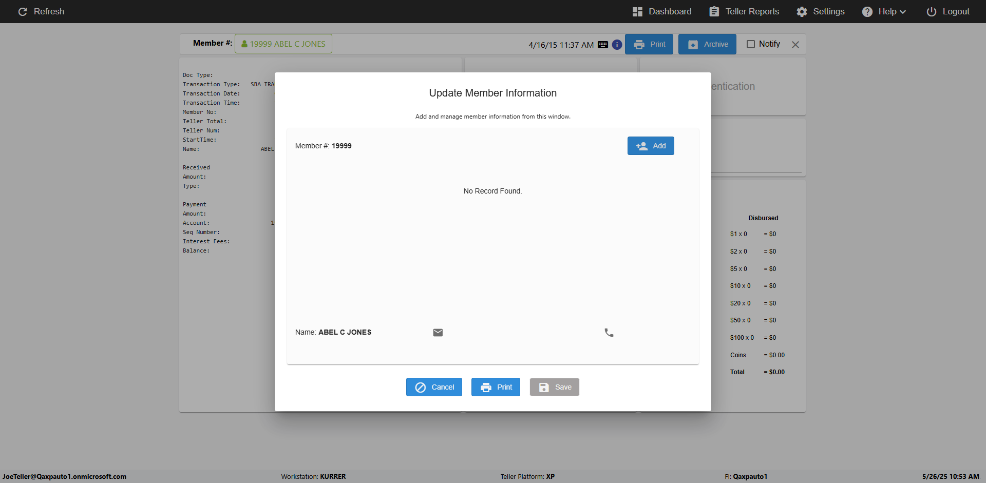 | 11:45:24 AM | Entered 'Teller' : [ScreenShot] | |
