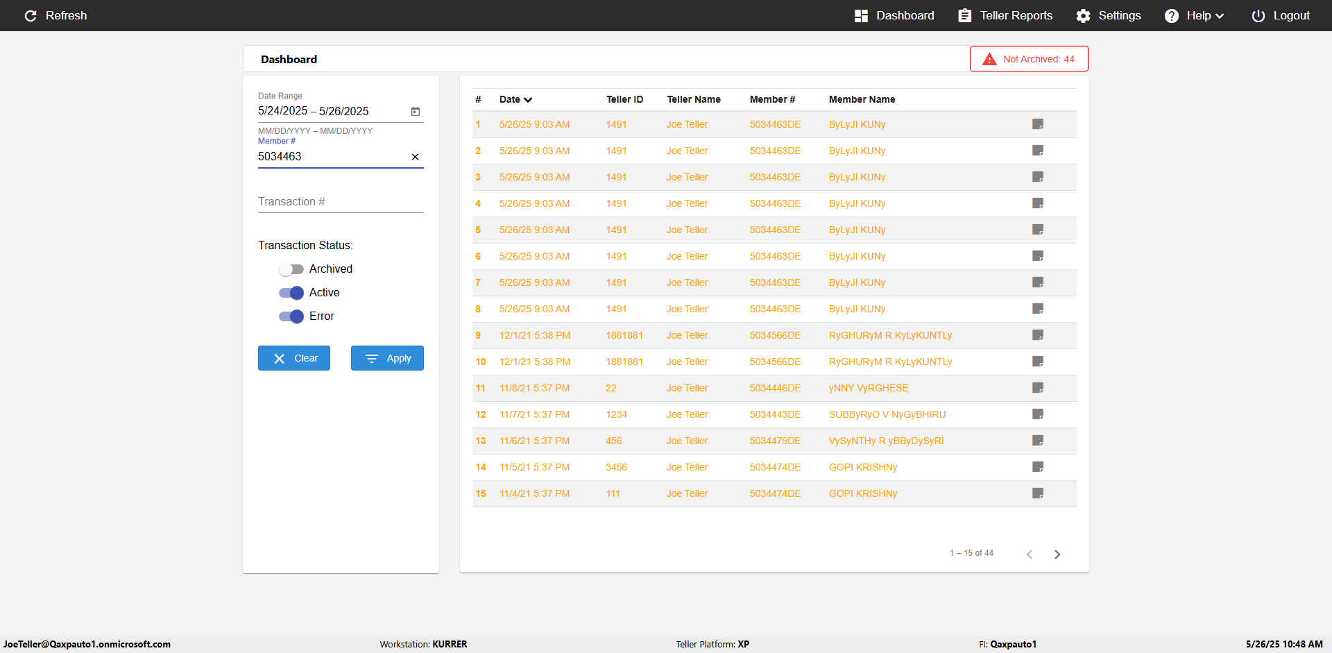 | 11:44:42 AM | Successfully navigated to 'eReceipts Teller' Page | |