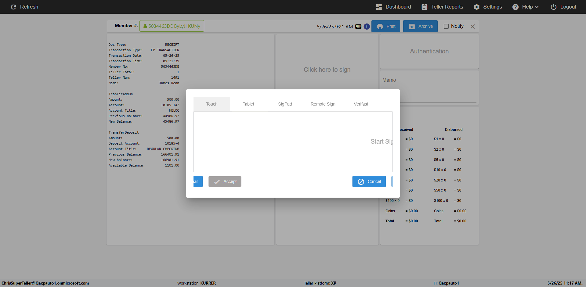 | 11:42:27 AM | Signed on Touch Pad and clicked on Accept button [ScreenShot] | |