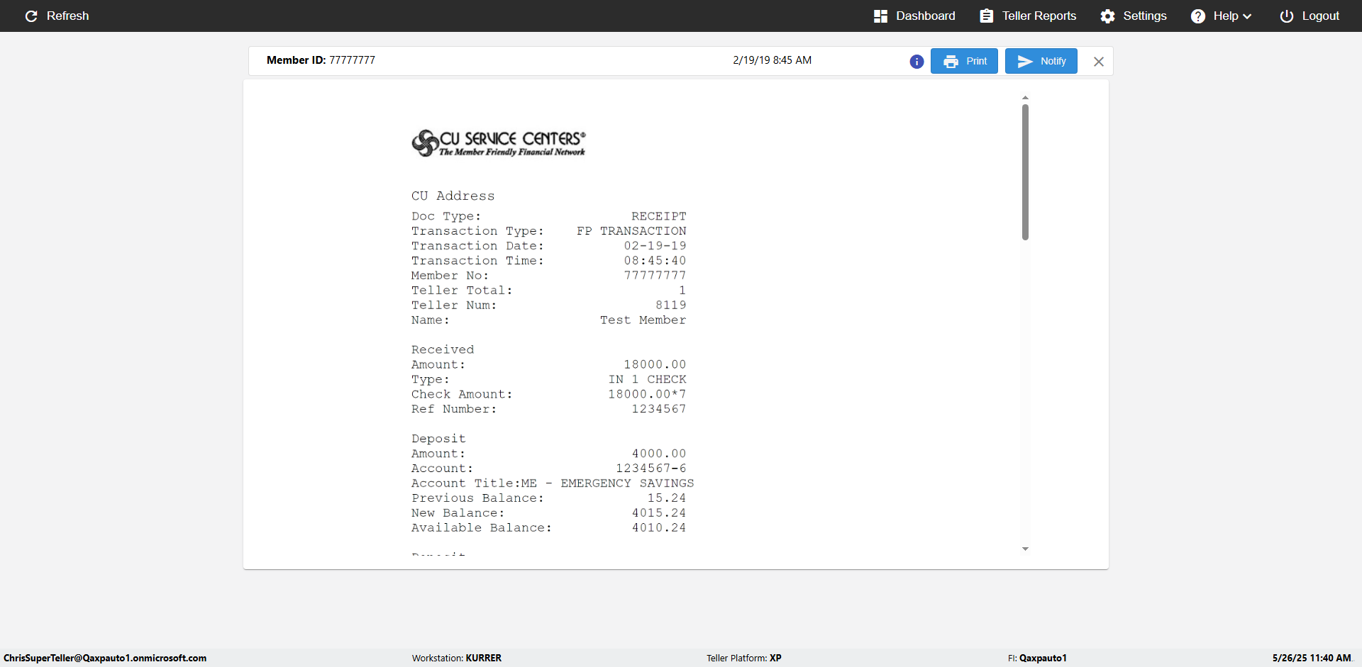 | 09:40:11 AM | ***** verify End TO End Test OF Normal Teller In Ereceipt Page ***** | |