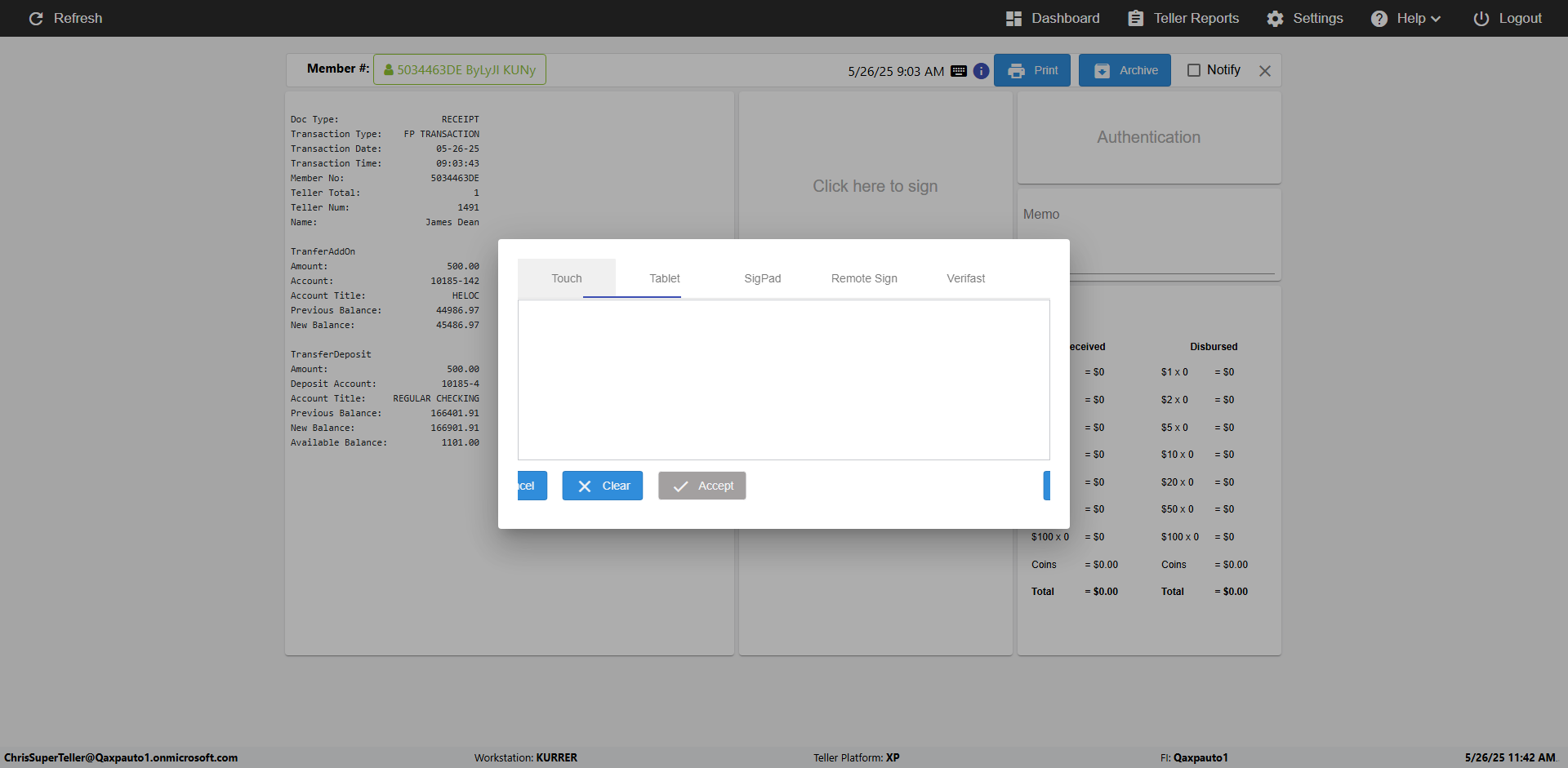 | 11:42:15 AM | Expected: verify the 'Cancel, Clear or Accept' elements in 'Touch' of Signature change mode Actual(Passed): verified the 'Cancel, Clear or Accept' elements in 'Touch' of Signature change mode [ScreenShot] |