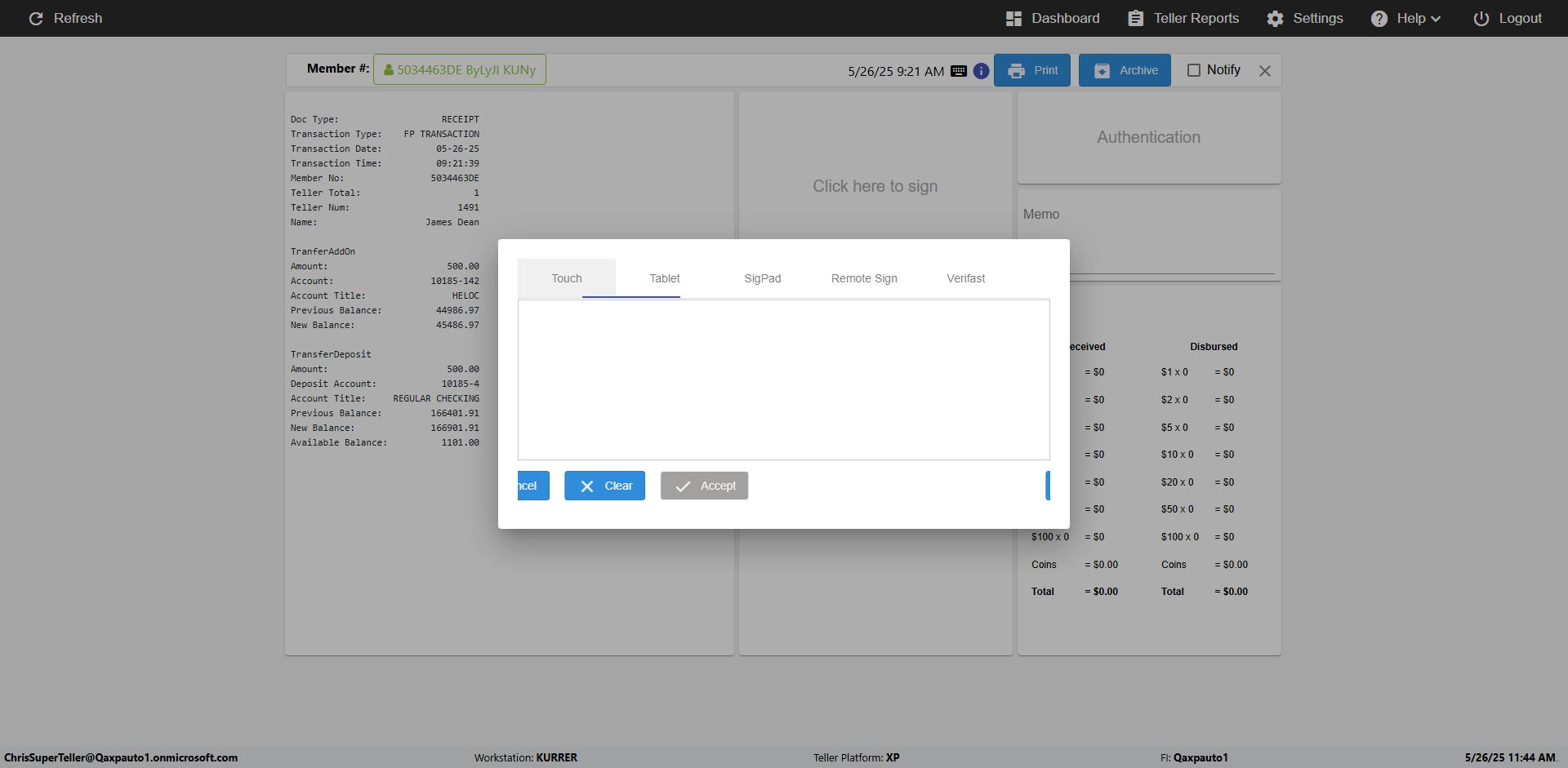 | 11:44:03 AM | Expected: verify the 'Cancel, Clear or Accept' elements in 'Touch' of Signature change mode Actual(Passed): verified the 'Cancel, Clear or Accept' elements in 'Touch' of Signature change mode [ScreenShot] |