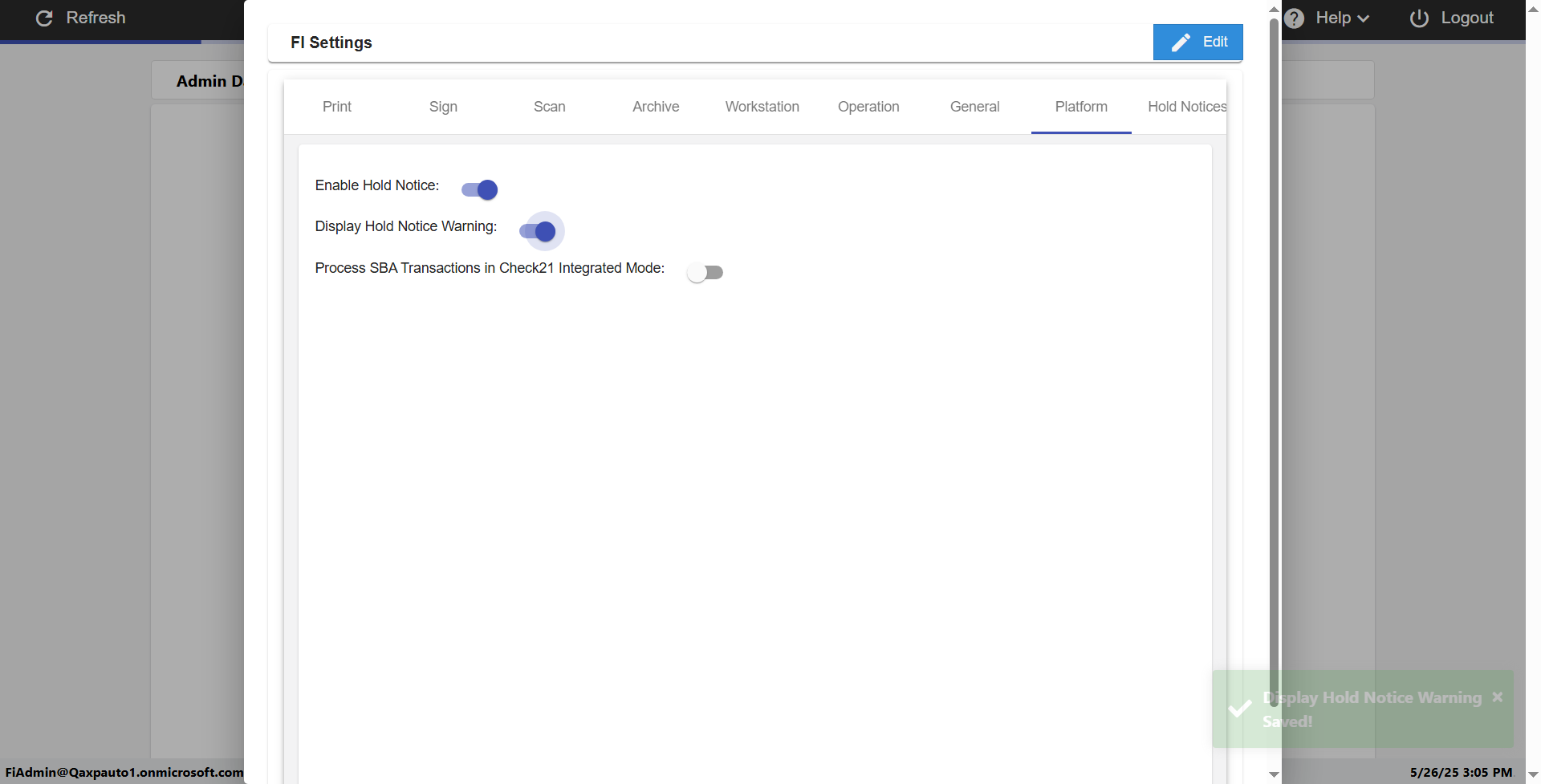 | 03:05:01 PM | Expected: click on Enable Hold Notice Actual(Passed): Sucessfully clicked on Enable Hold Notice:true [ScreenShot] |