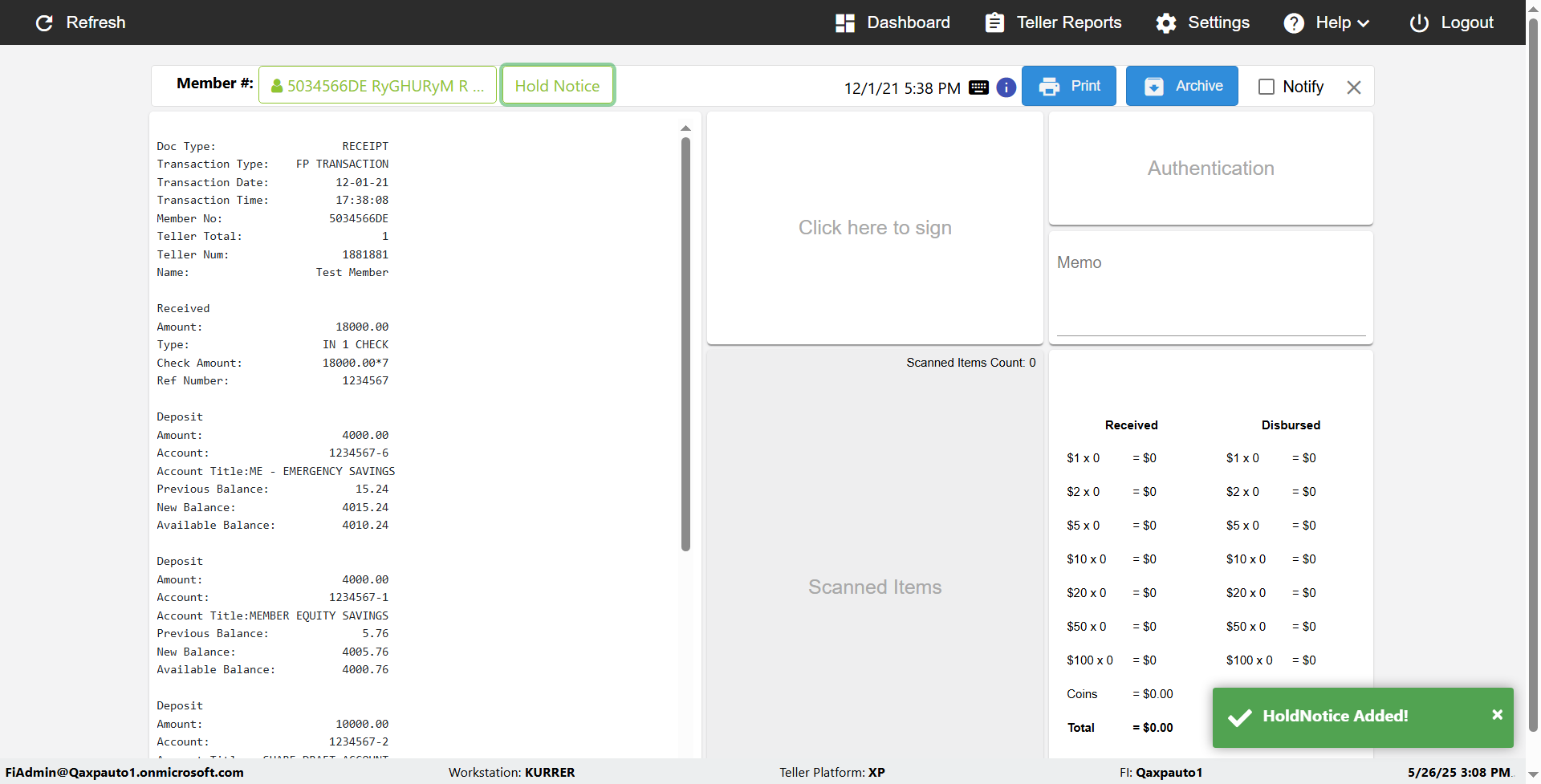 | 03:06:49 PM | Expected: Check the Hold Notice after opening Receipt Page Actual(Passed): Successfully Checked the Hold Notice after opening Receipt Page [ScreenShot] |