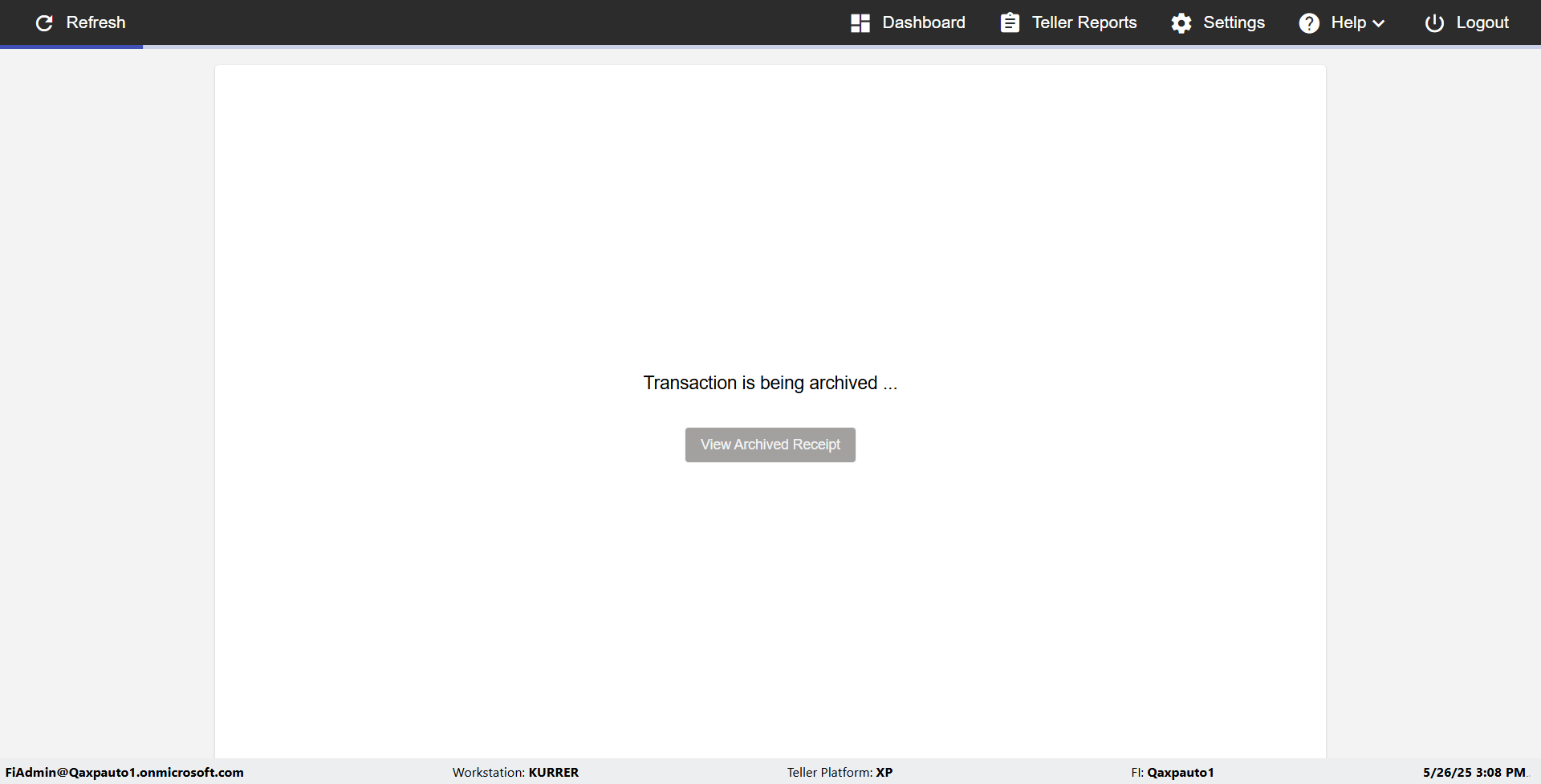 | 03:08:33 PM | Expected: check transaction status message Actual(Passed): Transaction is being archived ... [ScreenShot] |