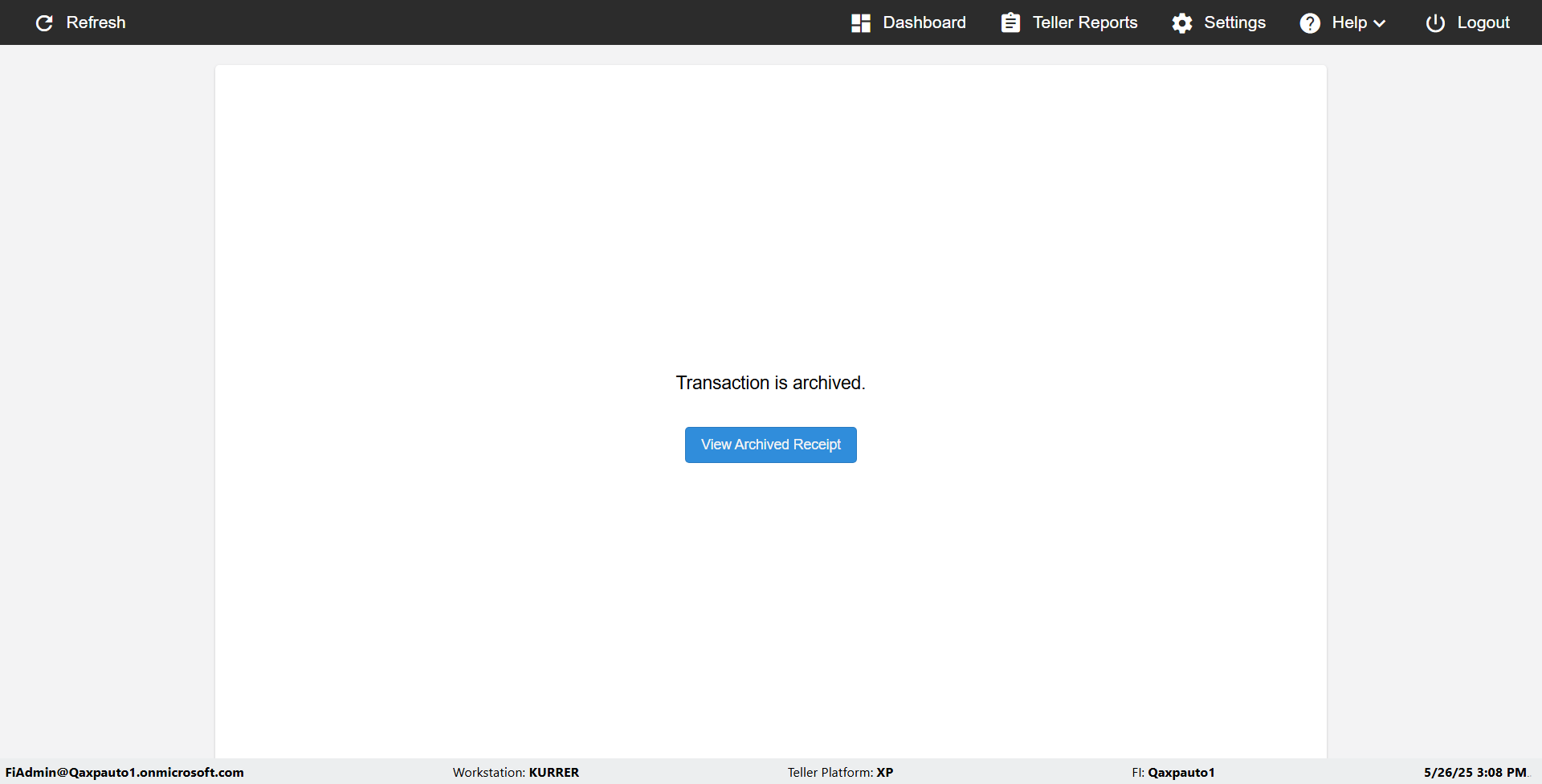 | 03:08:56 PM | Expected: check transaction status message Actual(Passed): Transaction is archived. [ScreenShot] |
