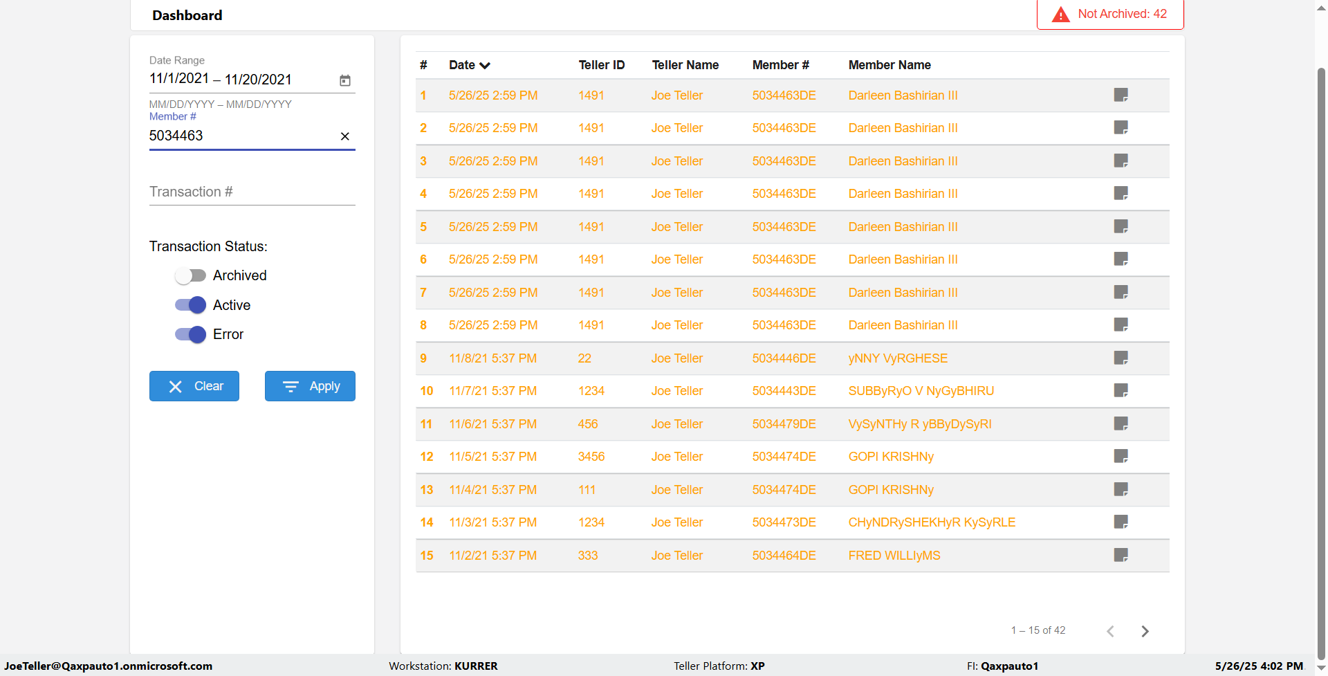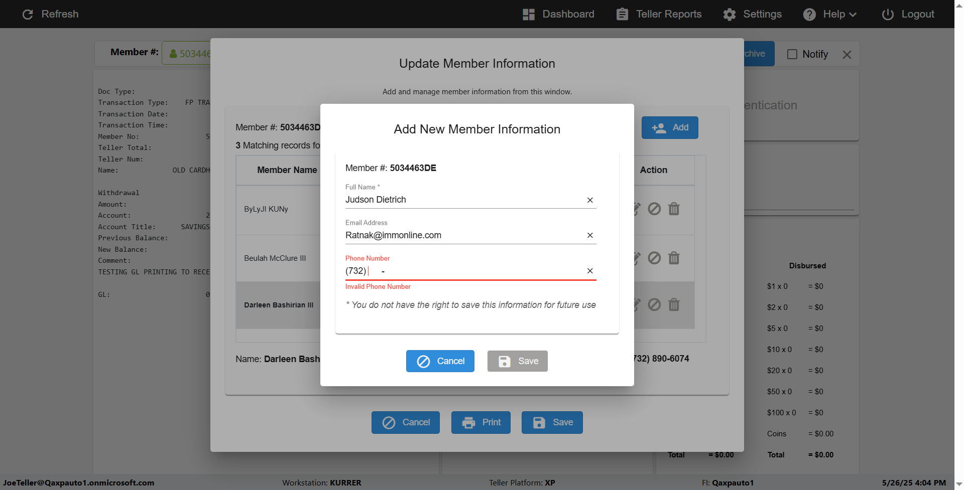 {Toggel=TRUE, Archived Transactions=no, Description=verify Normal MemberID And Archive Information Update (Use Normal only), Email=Ratnak@immonline.com, Archive=, Document Type=, Notify=, SignatureTab=, DisbursedExpression=, Operation=, Teller LastName=, Disbursed cash=, errorint=, TestID=verifyNormalMemberAddUpdateContactInfo, Print=, DisbursedExpressionValue=, Phone=(732) 890-6074, ReceivedCashValue=, Member=5034463, UserPwd=iMM2022!, Transtatus=Archived-false;Active-true;Error-false, Docment ID=, Teller=, Teller FirstName=, errorMessage=, ReceivedExpressionValue=, SecondName=, Date=11/01/2021 - 11/20/2021, Platfrom=, Received cash=, Transaction=, Header=, Expression=, Username=JoeTeller@Qaxpauto1.onmicrosoft.com, DisbursedCashValue=, FullName=Johna, ReceivedExpression=, SMS=, Memo=}