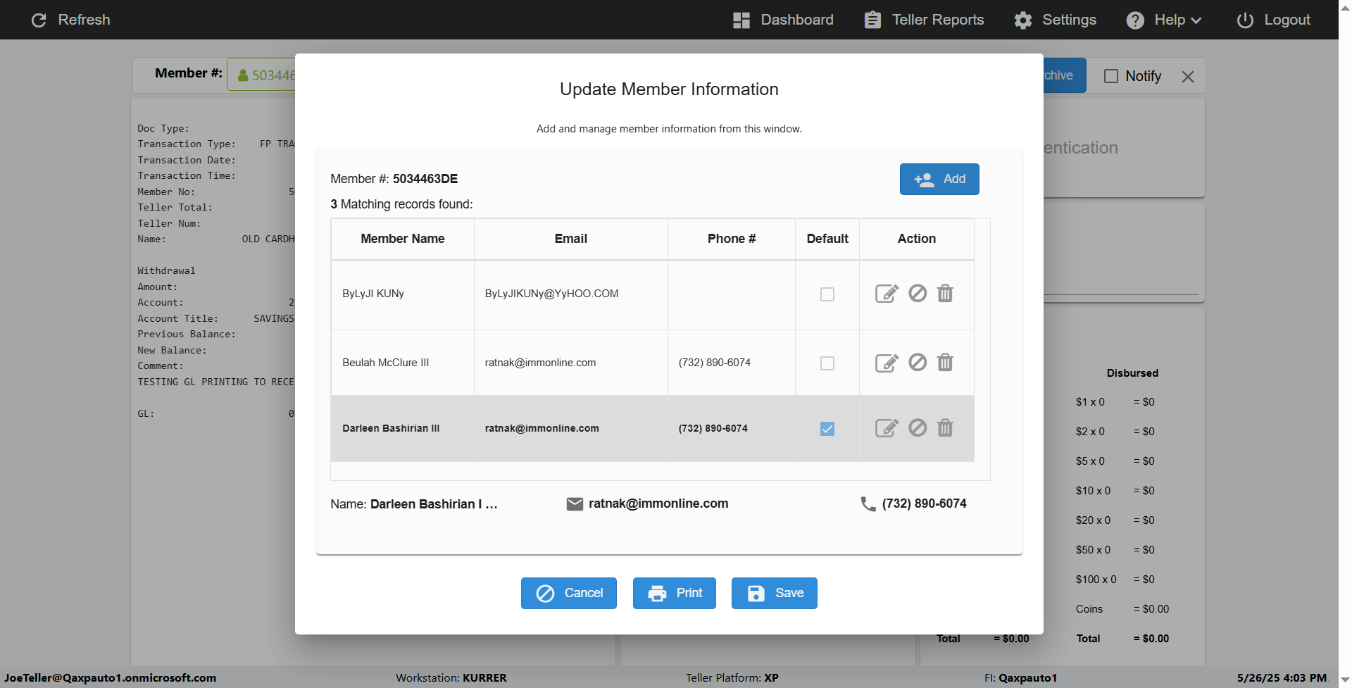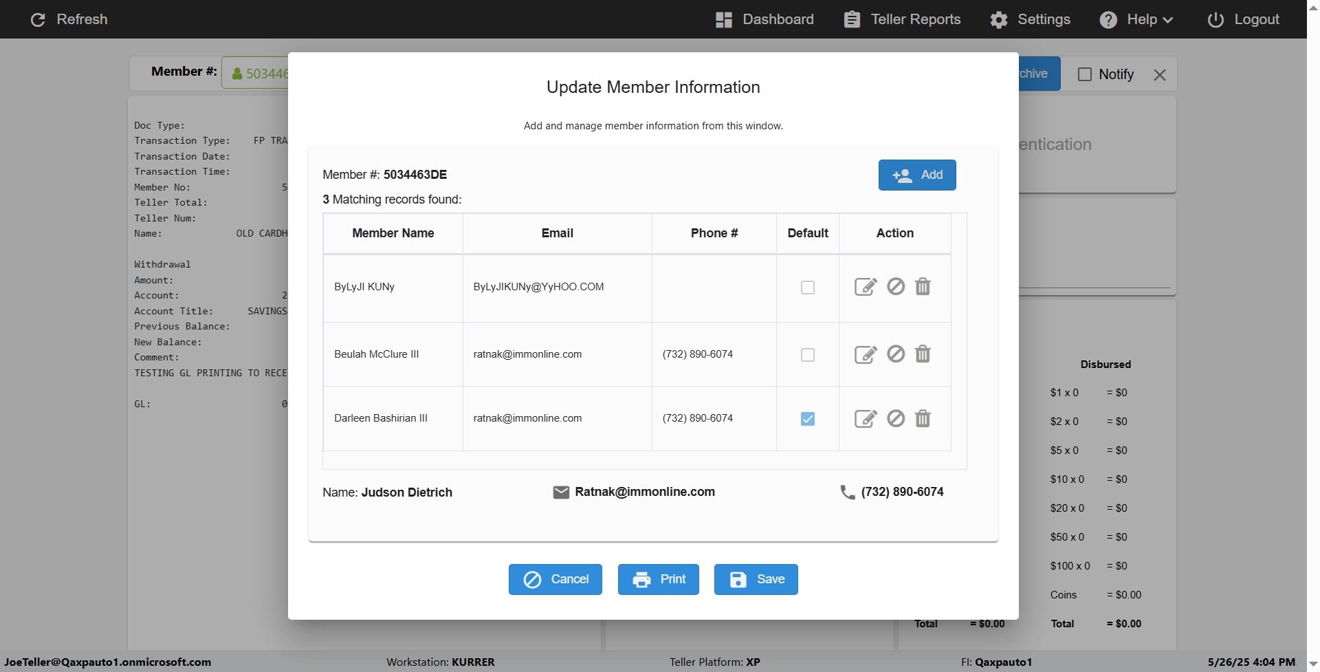 Expected: verify 'Cancel,print,save' Elements in Update Contact Information box