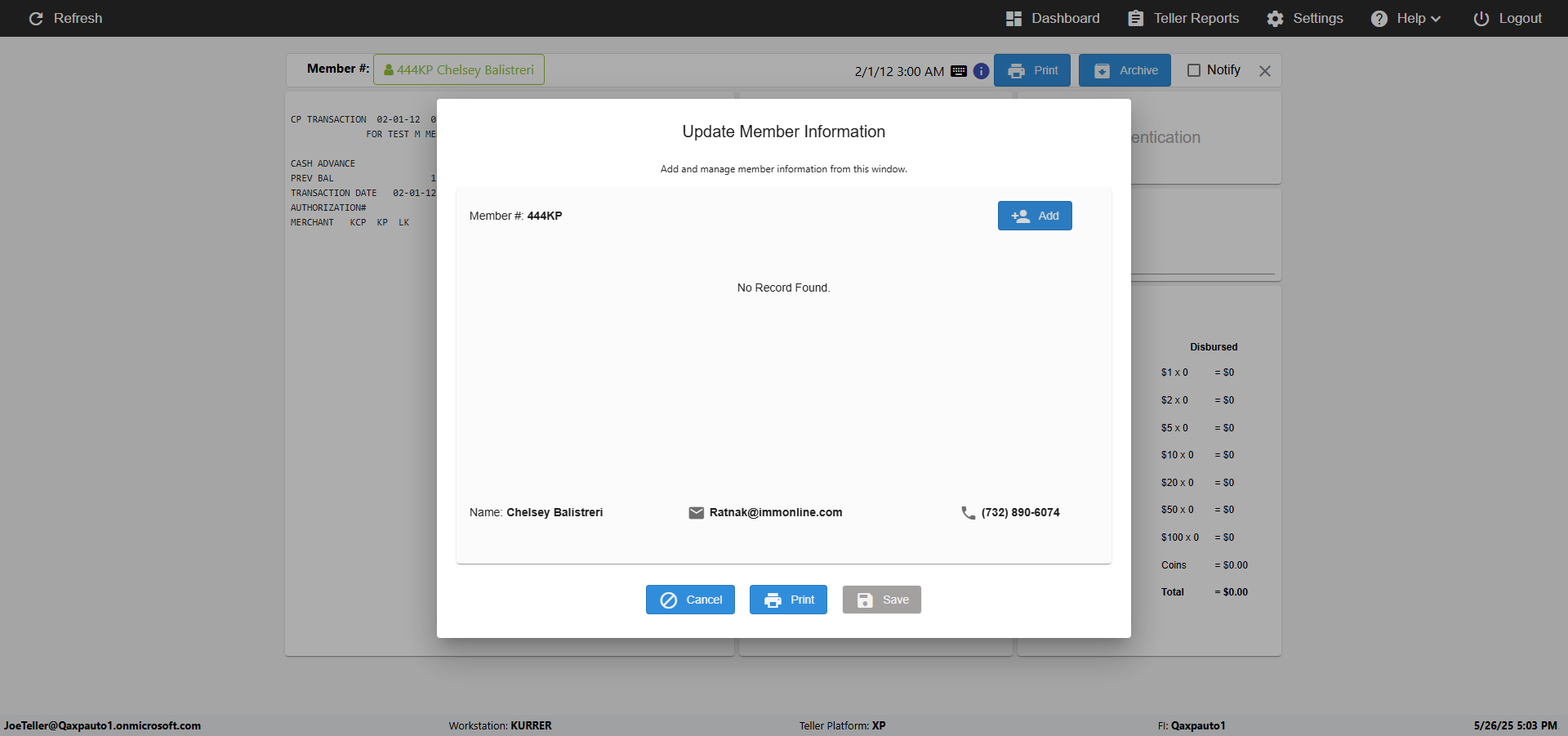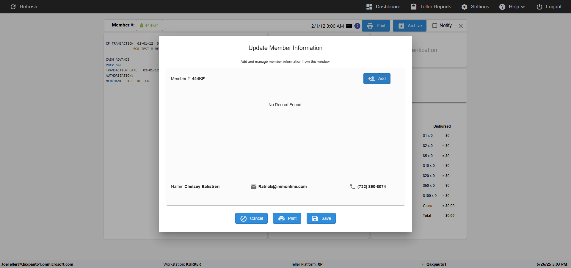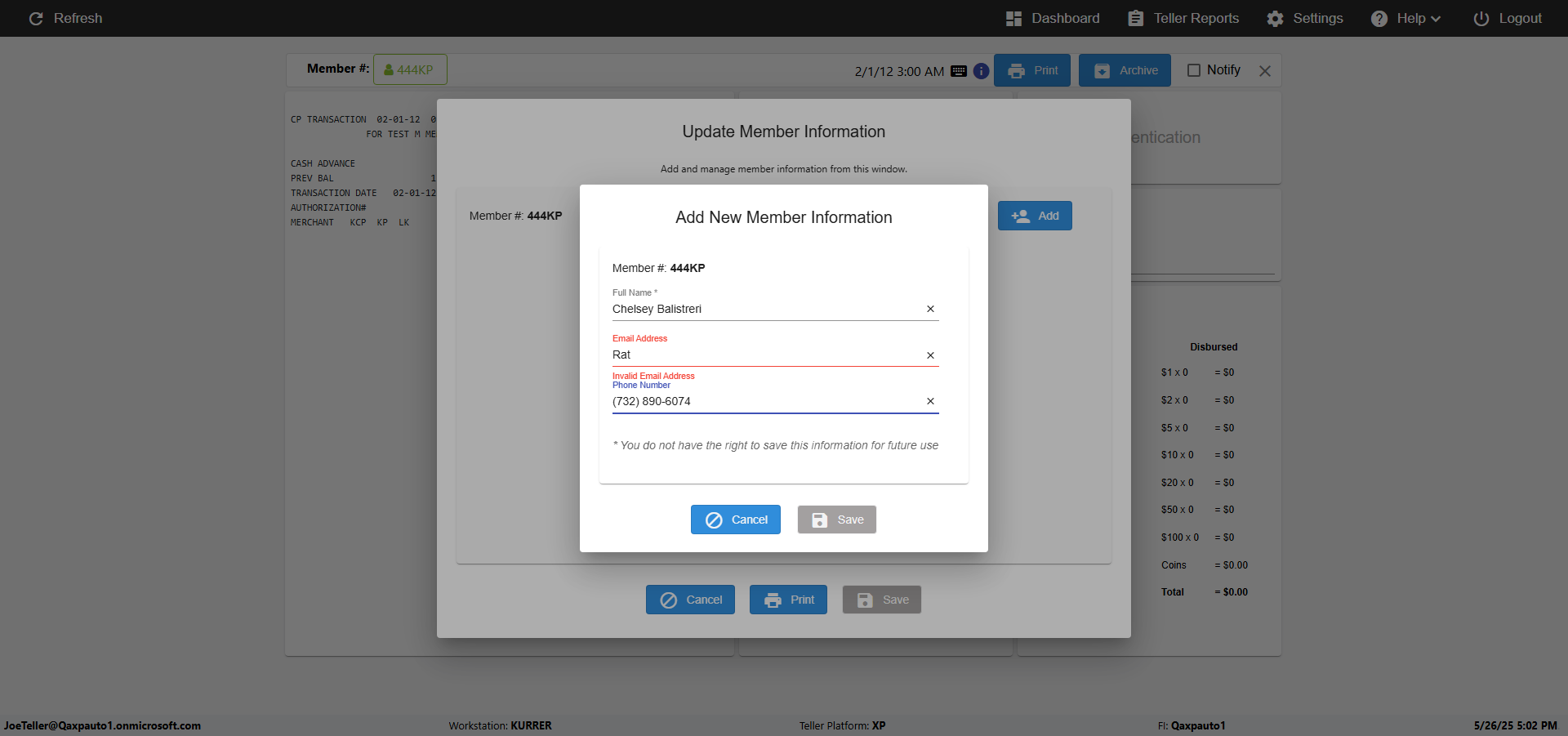 | {Toggel=TRUE, Archived Transactions=no, Description=verify Normal MemberID And Archive Information Update (Use Normal only), Email=Ratnak@immonline.com, Archive=, Document Type=, Notify=, SignatureTab=, DisbursedExpression=, Operation=, Teller LastName=, Disbursed cash=, errorint=, TestID=verifyNormalMemberAddUpdateContactInfo, Print=, DisbursedExpressionValue=, Phone=(732) 890-6074, ReceivedCashValue=, Member=444KP, UserPwd=iMM2022!, Transtatus=Archived-false;Active-true;Error-false, Docment ID=, Teller=, Teller FirstName=, errorMessage=, ReceivedExpressionValue=, SecondName=, Date=, Platfrom=, Received cash=, Transaction=, Header=, Expression=, Username=JoeTeller@Qaxpauto1.onmicrosoft.com, DisbursedCashValue=, FullName=Johna, ReceivedExpression=, SMS=, Memo=} |