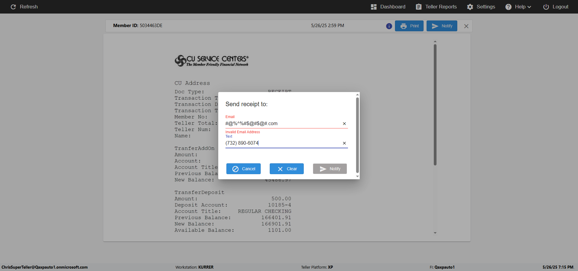 {Description=verify the invalid email in notify dashboard page, Email=#@%^%#$@#$@#.com, Teller LastName=, print signatur=, errorint=1, TestID=verifyInvalidEmailInNotifyInDashboardPage, Color Transactions=yes, Member=, UserPwd=iMM2022!, Transtatus=Archived-True;Active-False;Error-False, Receipt=, Report=, Teller=, Teller FirstName=, errorMessage=Invalid Email Address, Suppress=, Date=, print Disburstments=, Print signature line=, Type=, Transaction=, Header=, Username=ChrisSuperTeller@Qaxpauto1.onmicrosoft.com, SMS=(732) 890-6074, Sign=, Scan=}