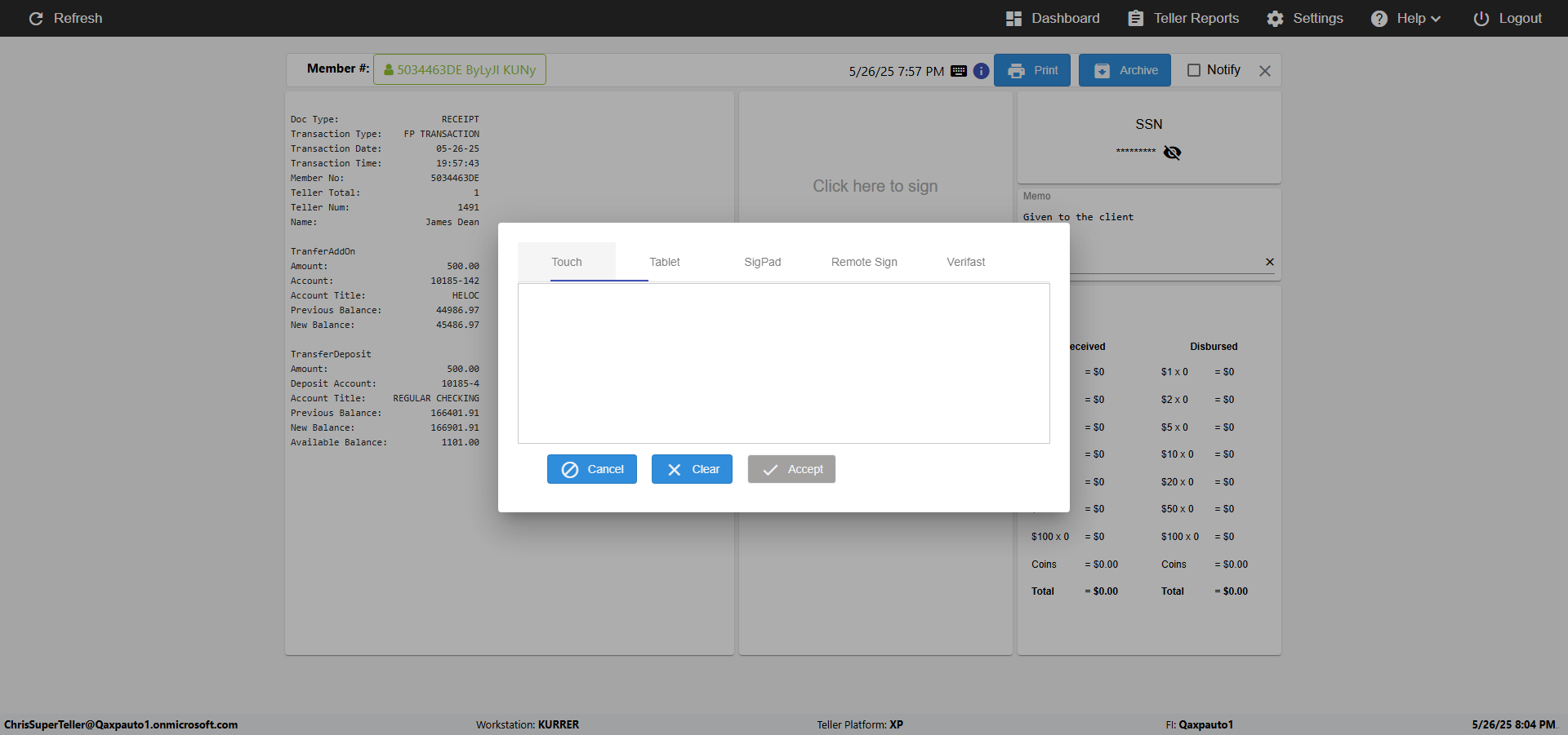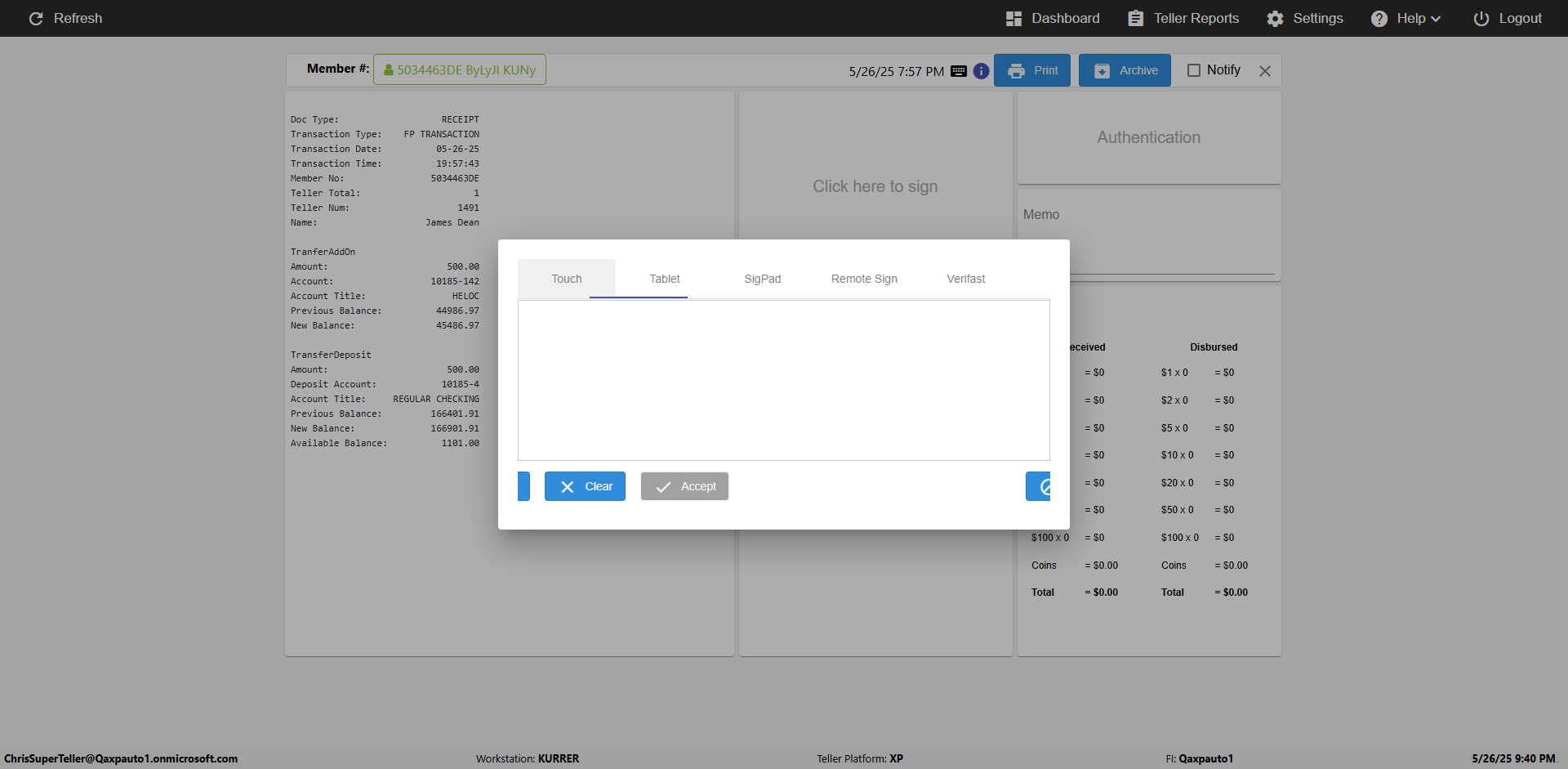 | 08:04:38 PM | Expected: verify the 'Cancel, Clear or Accept' elements in 'Touch' of Signature change mode Actual(Passed): verified the 'Cancel, Clear or Accept' elements in 'Touch' of Signature change mode [ScreenShot] |