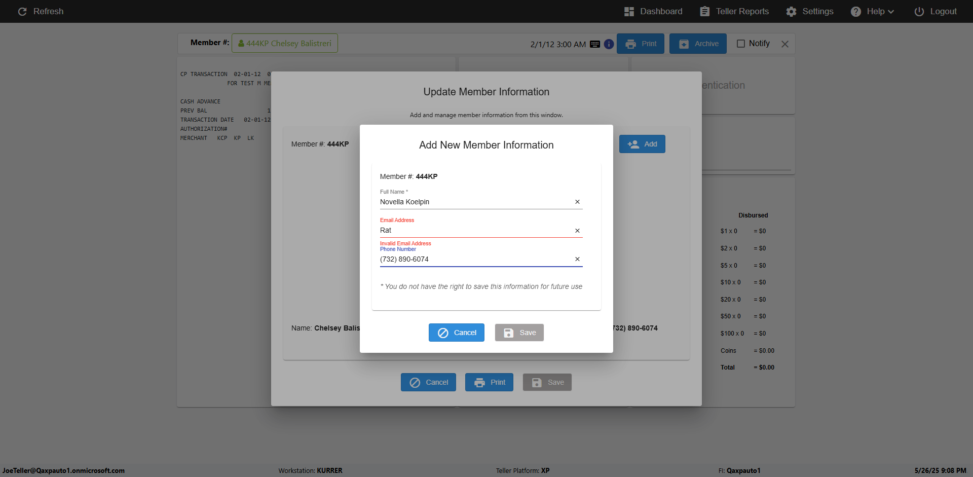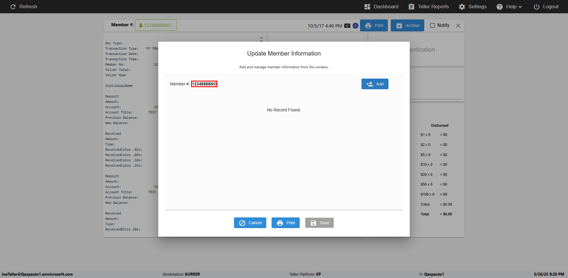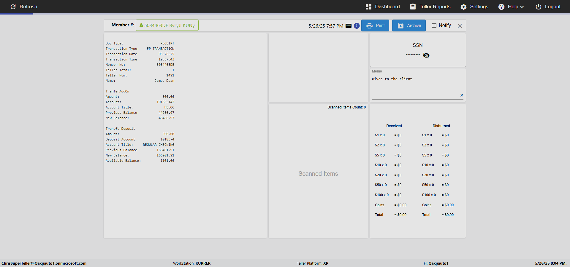 | 08:01:23 PM | Entered 'Teller' : [ScreenShot] | |