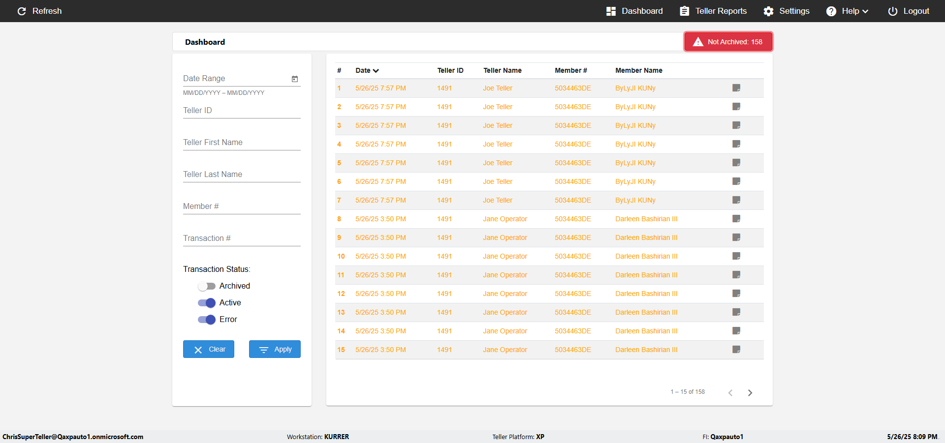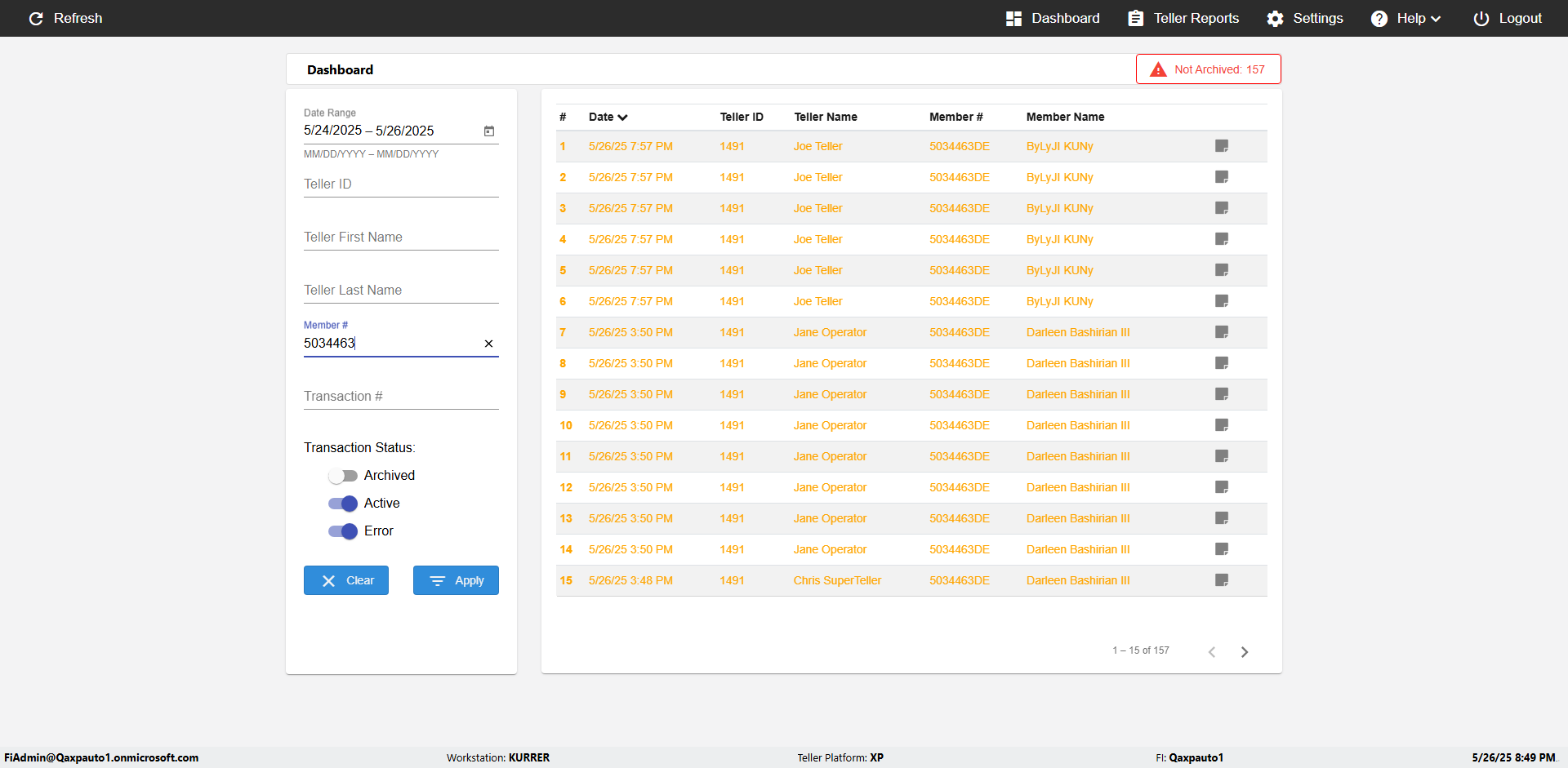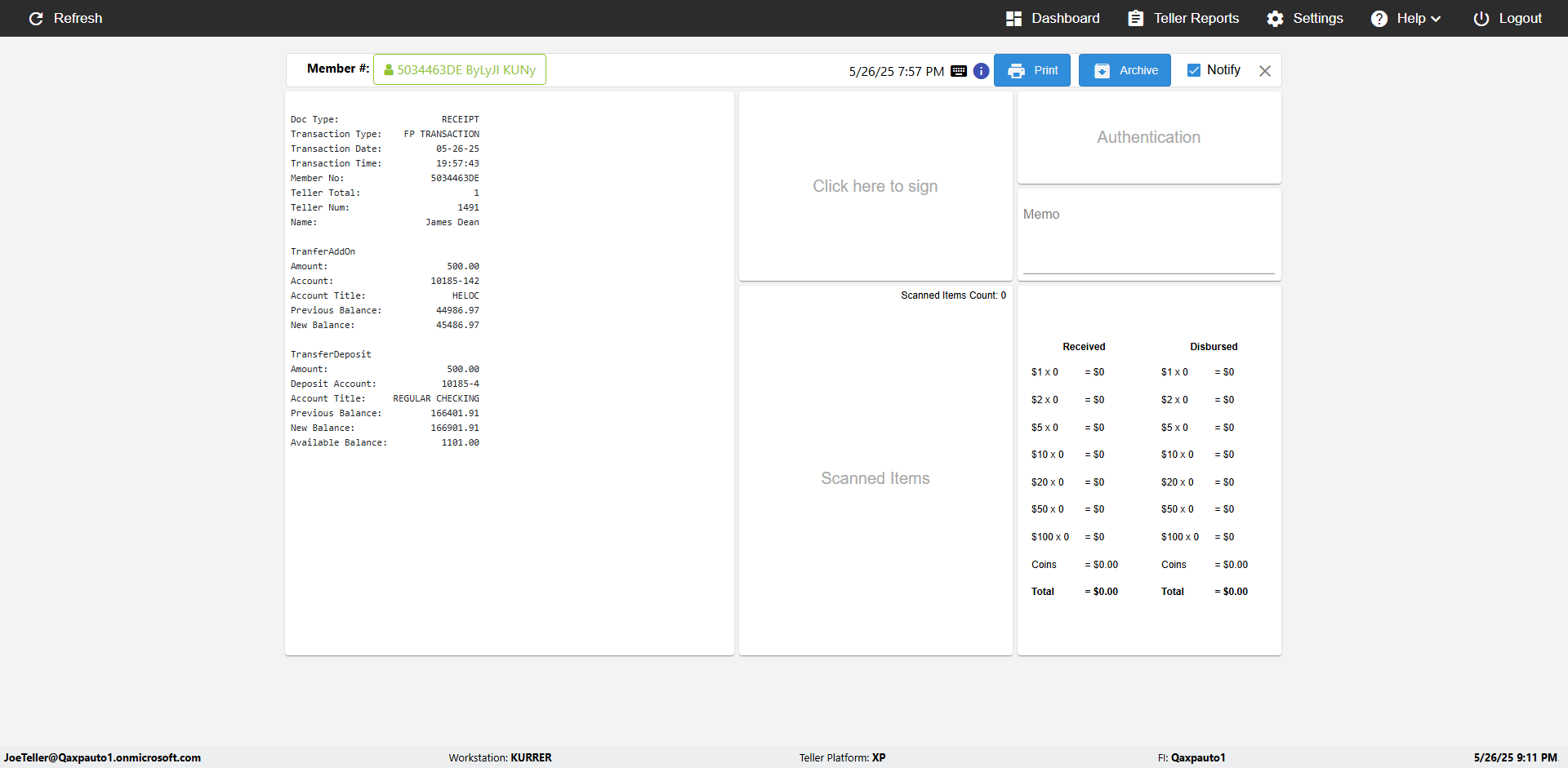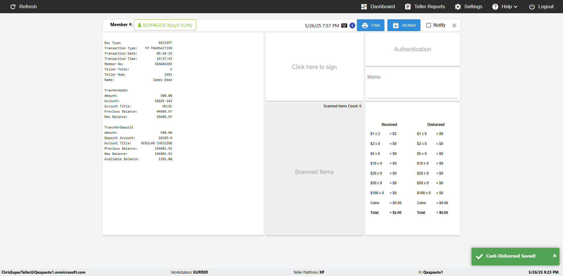 | 09:53:11 PM | Successfully navigated to 'eReceipts Teller' Page | |