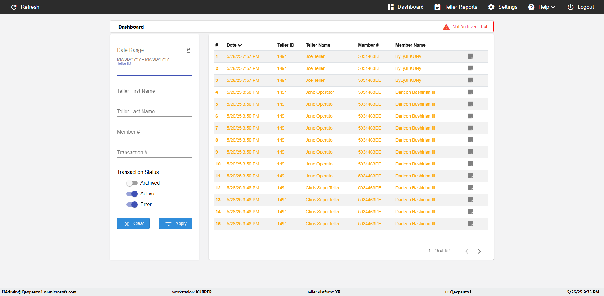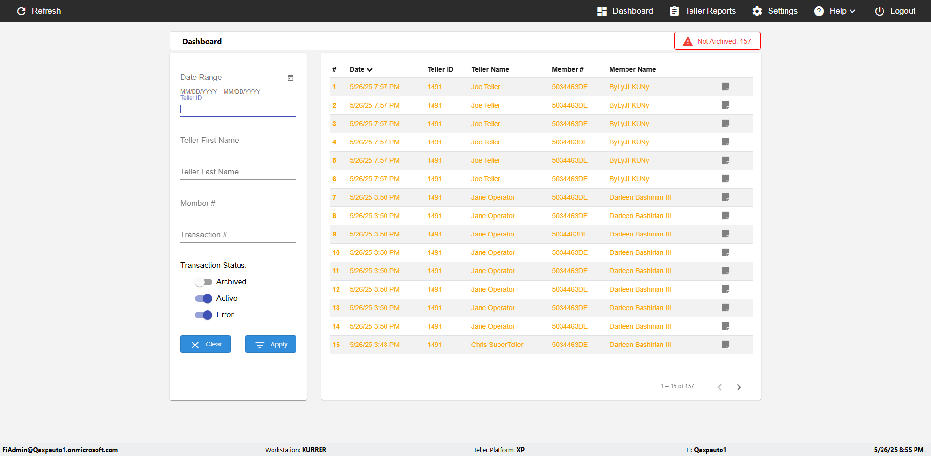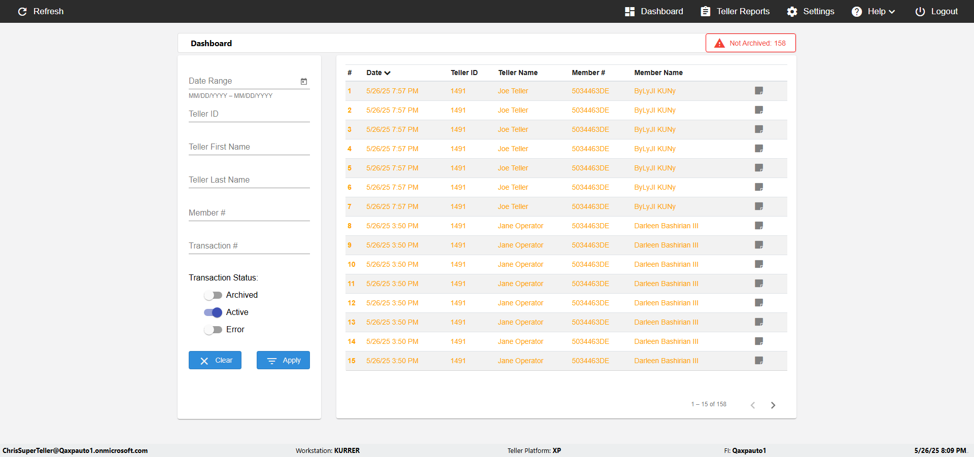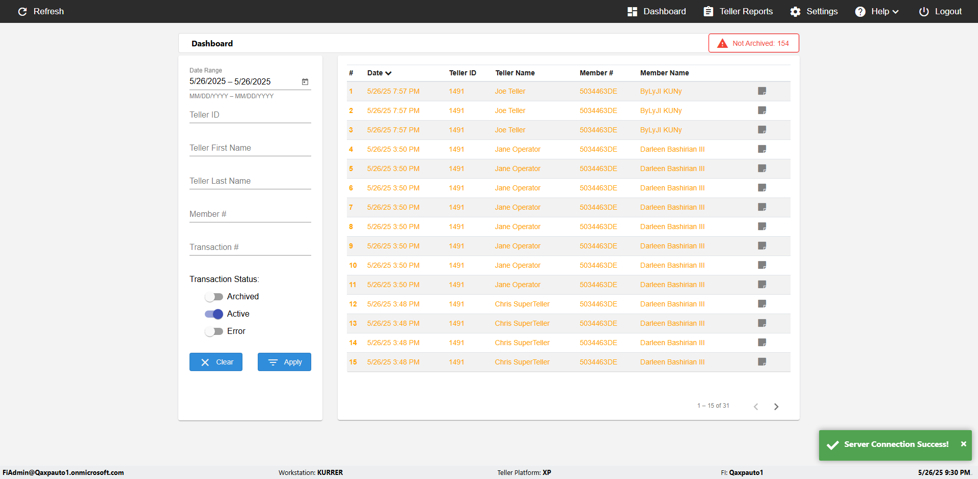 | 09:53:11 PM | Successfully navigated to 'eReceipts Teller' Page | |