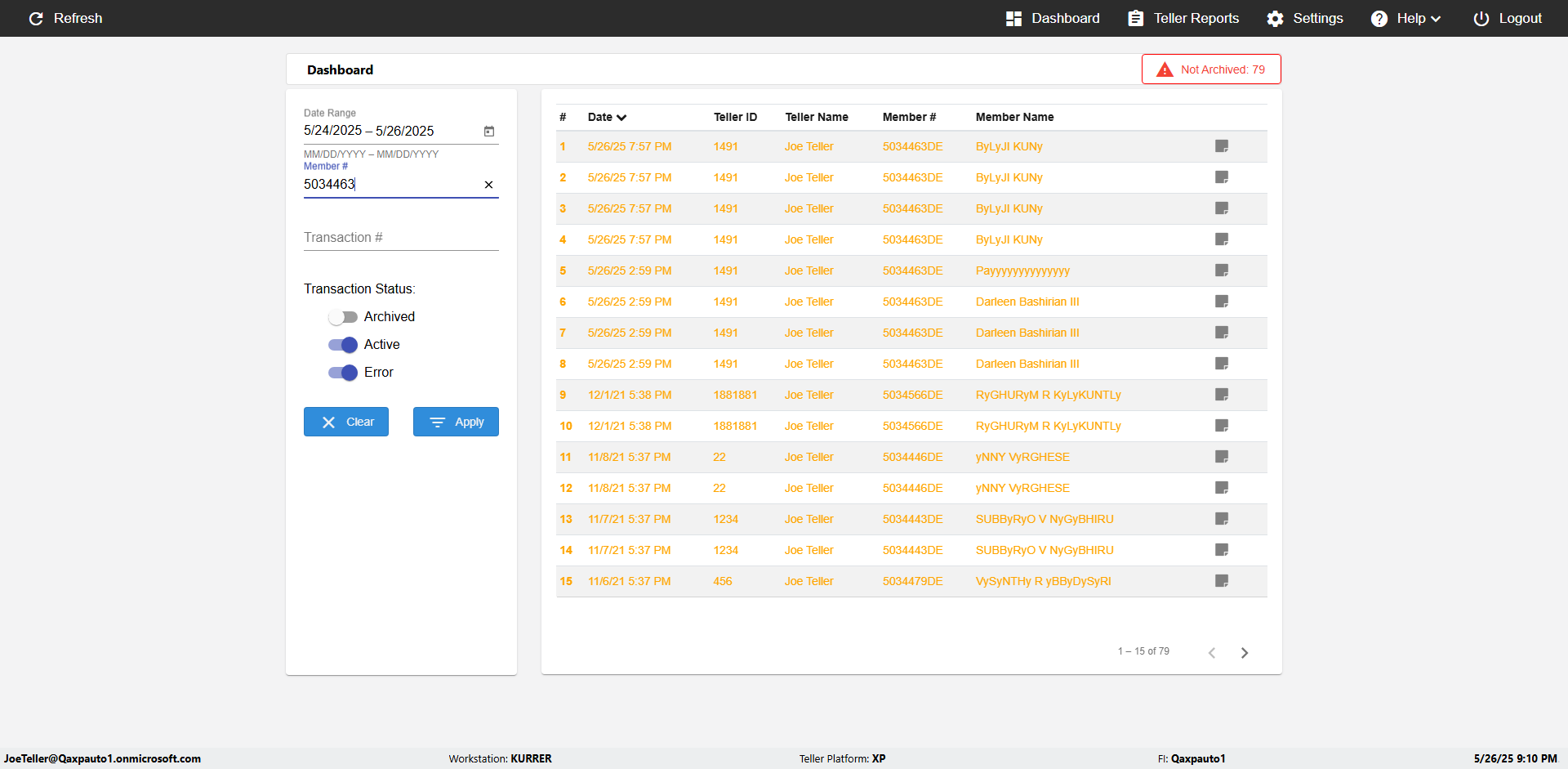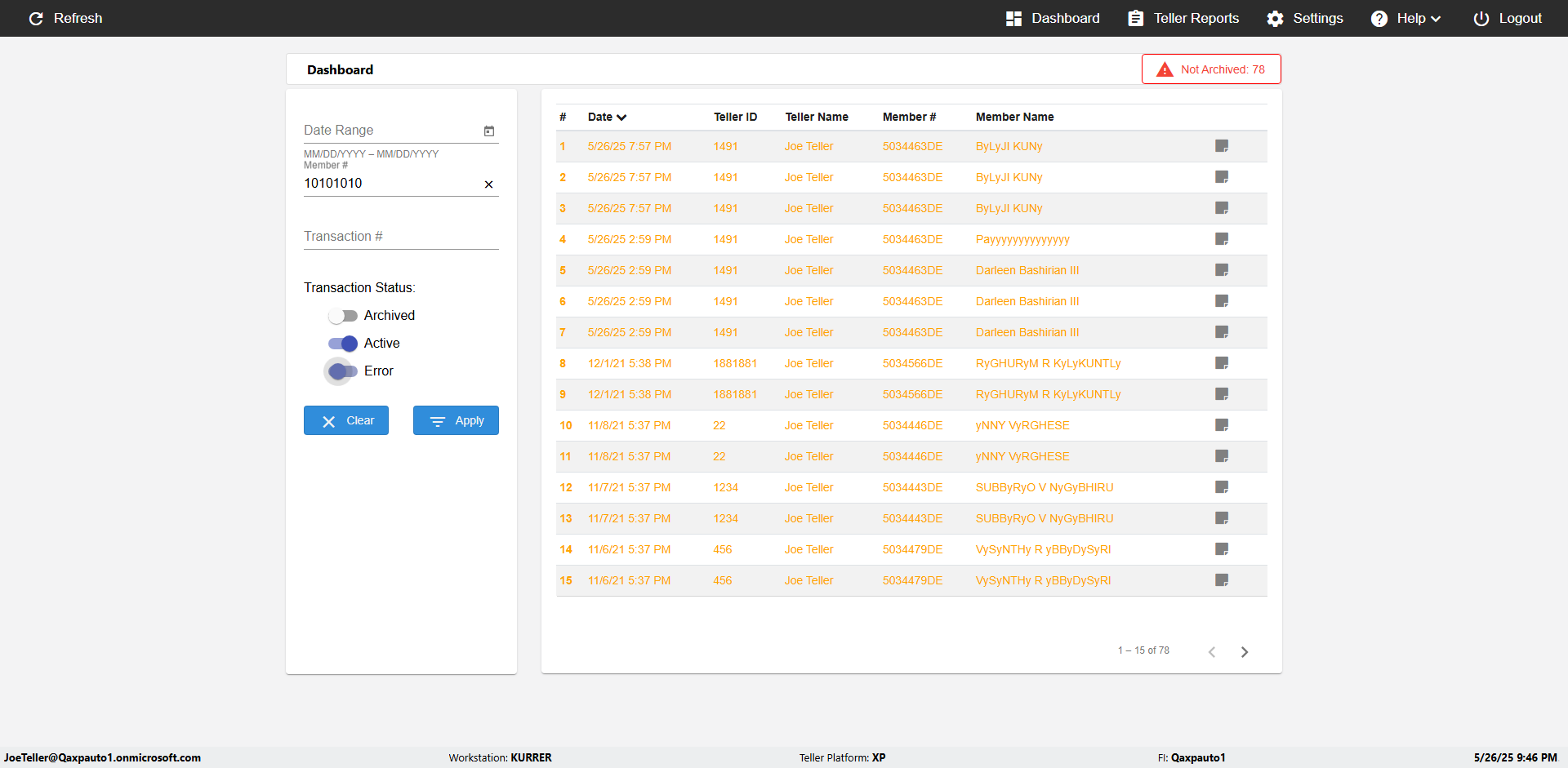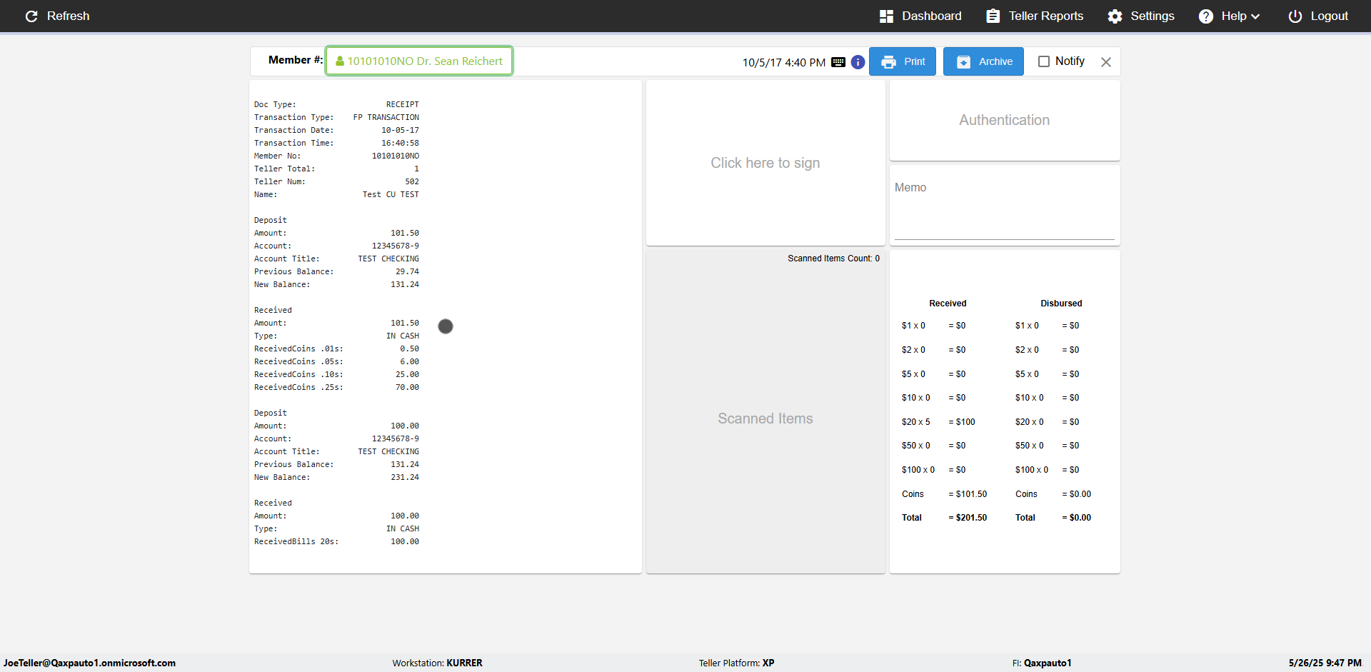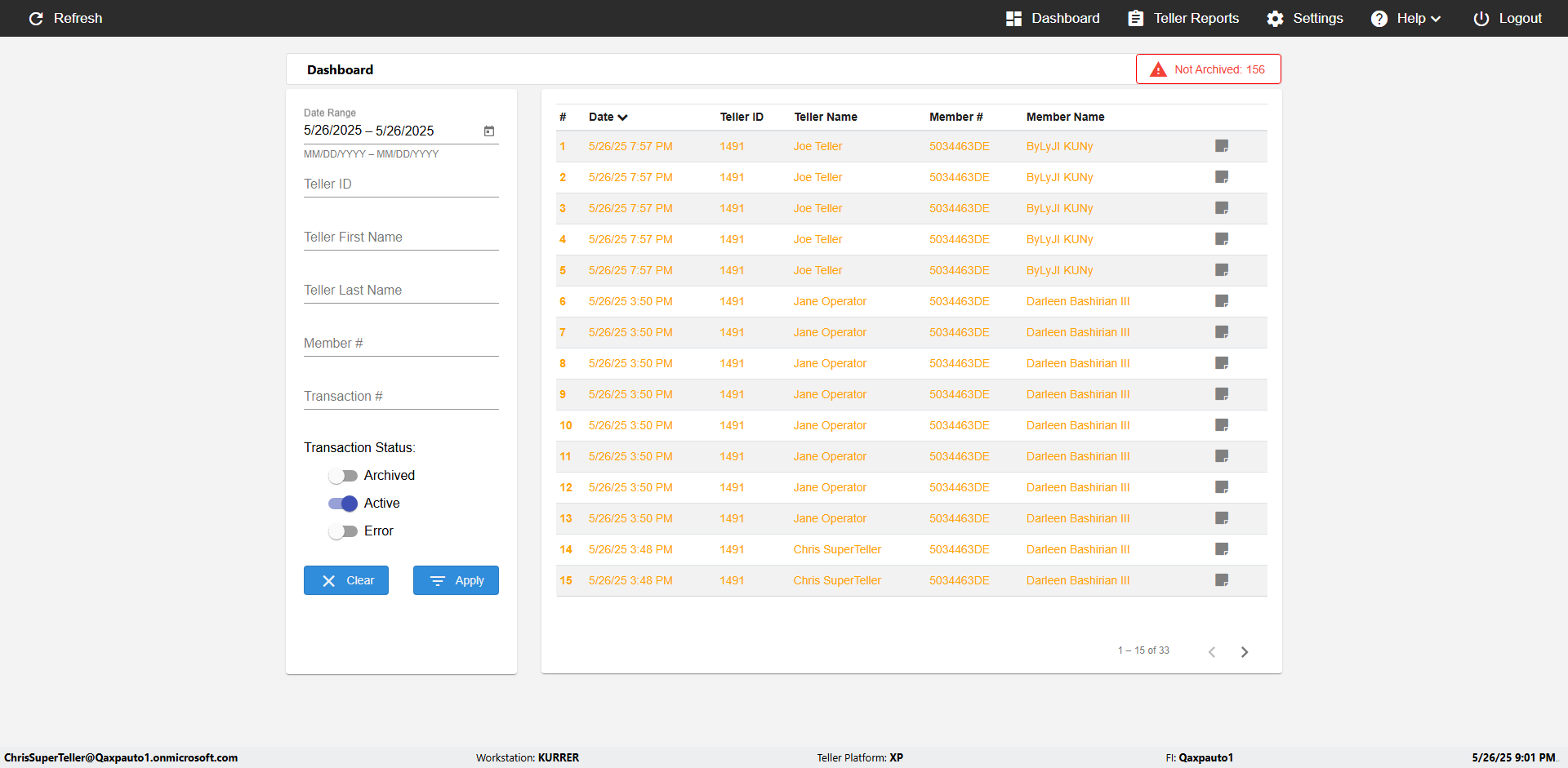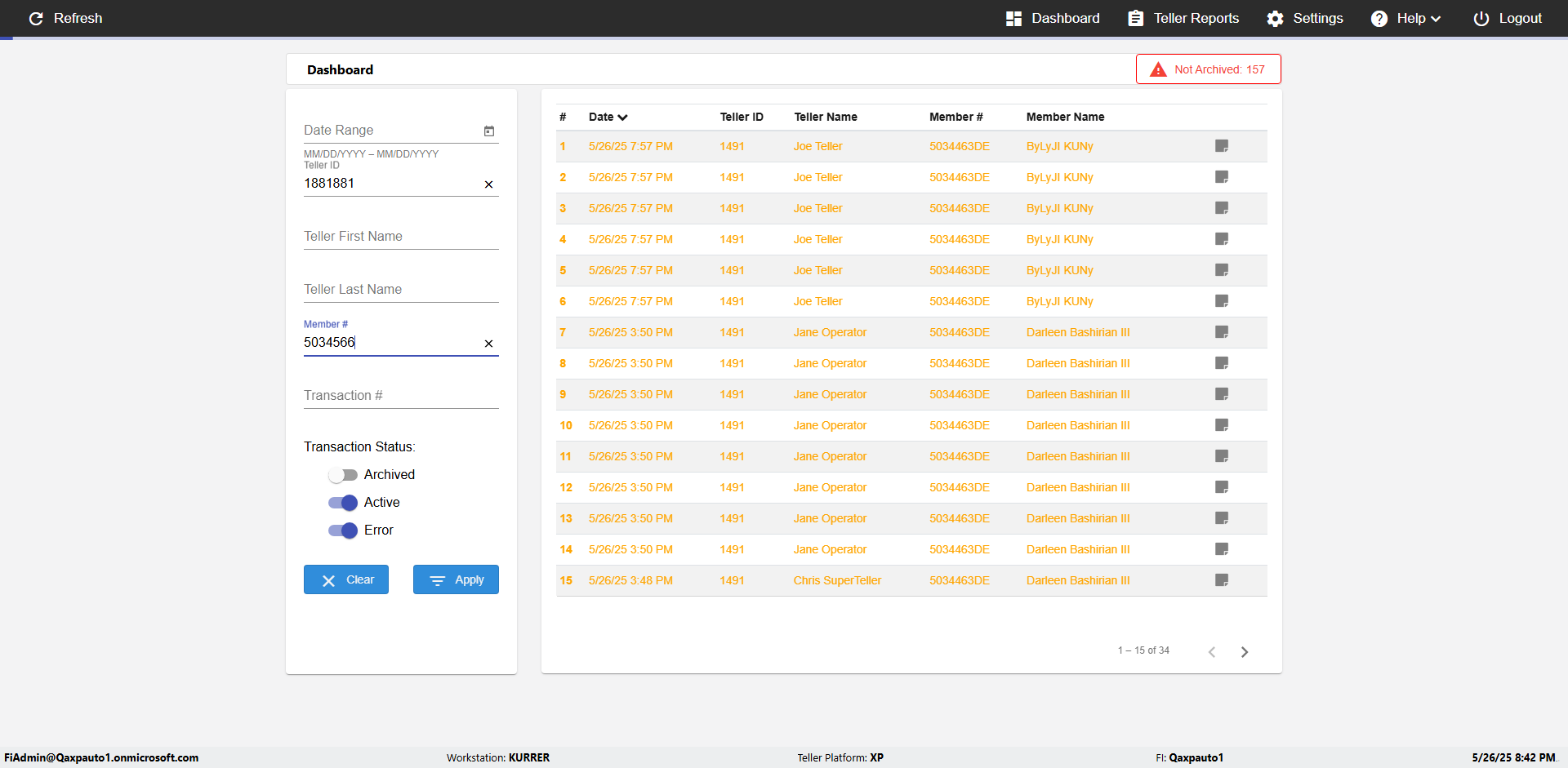 | 09:53:11 PM | Successfully navigated to 'eReceipts Teller' Page | |