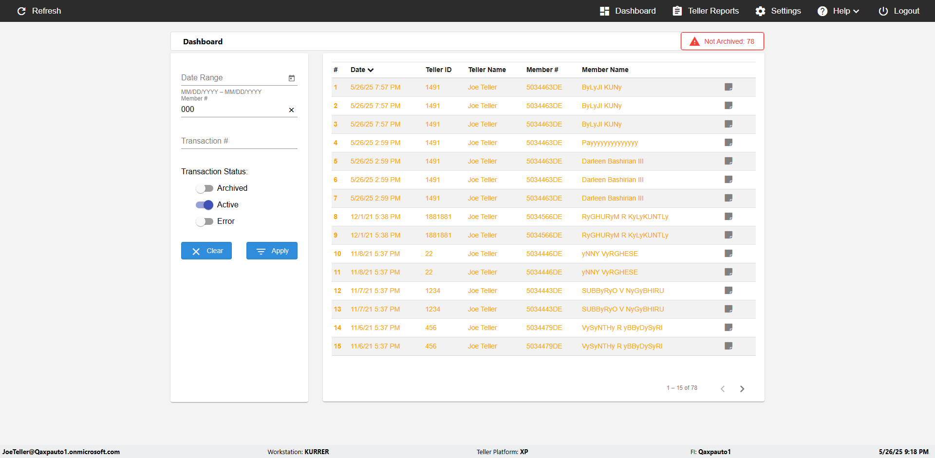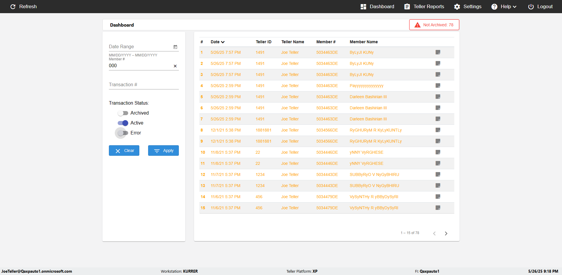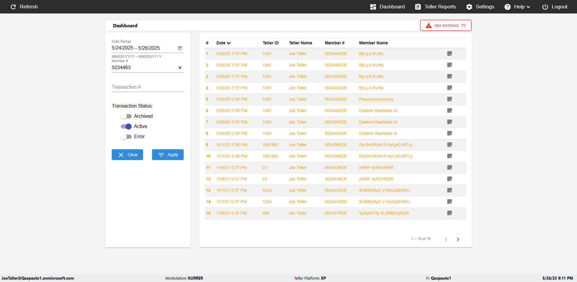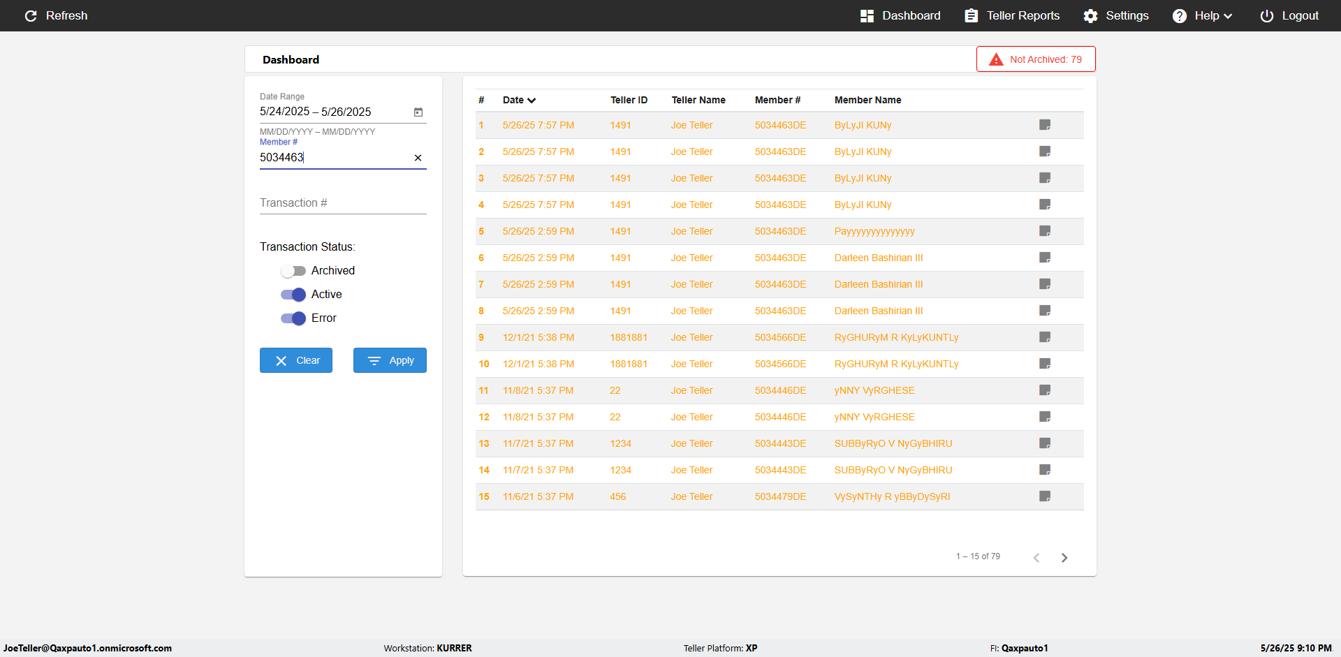 | 09:53:11 PM | Successfully navigated to 'eReceipts Teller' Page | |
