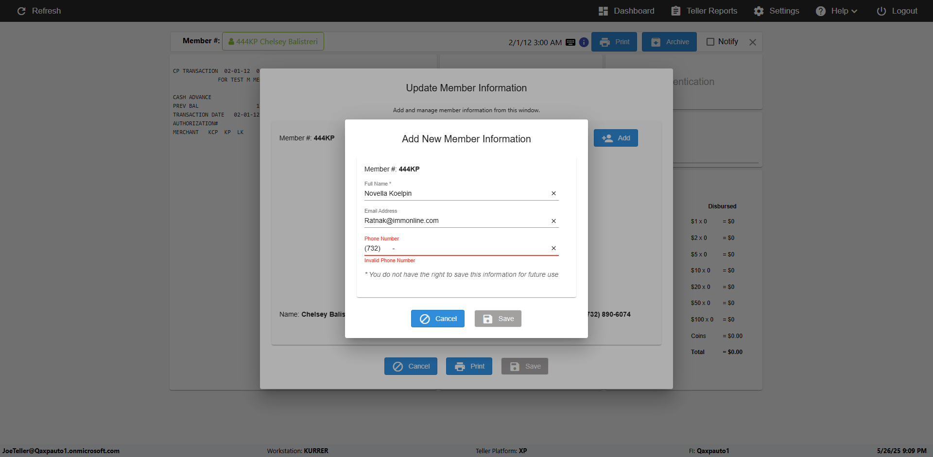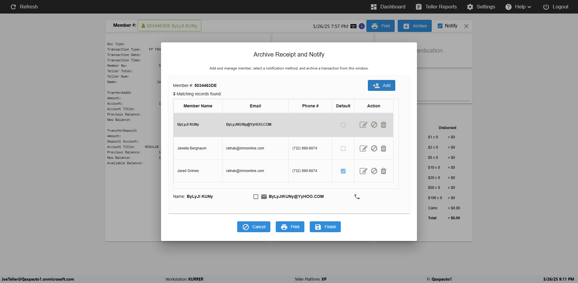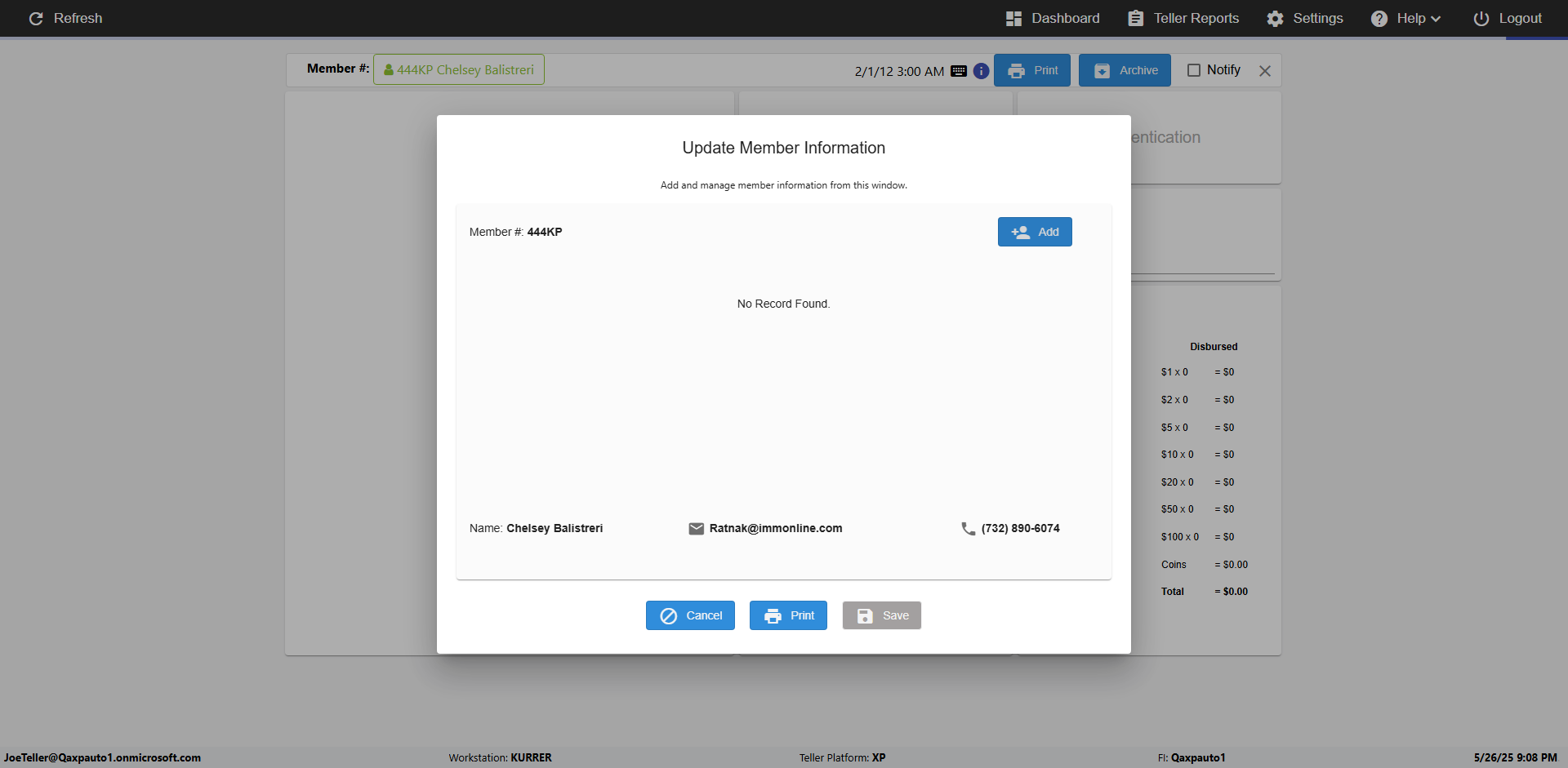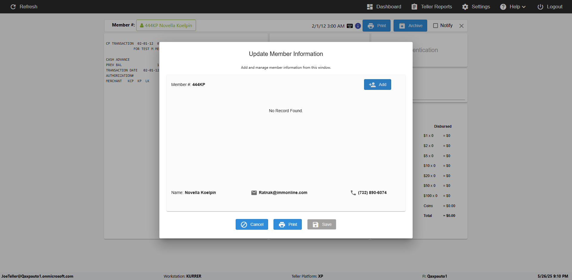 | 09:53:11 PM | Successfully navigated to 'eReceipts Teller' Page | |