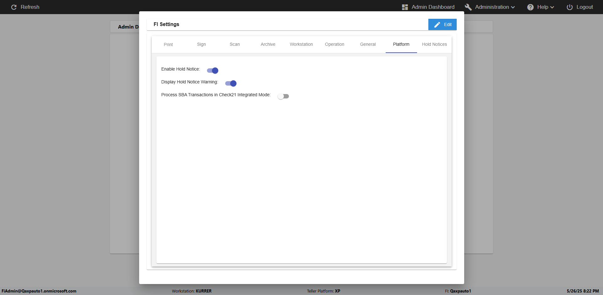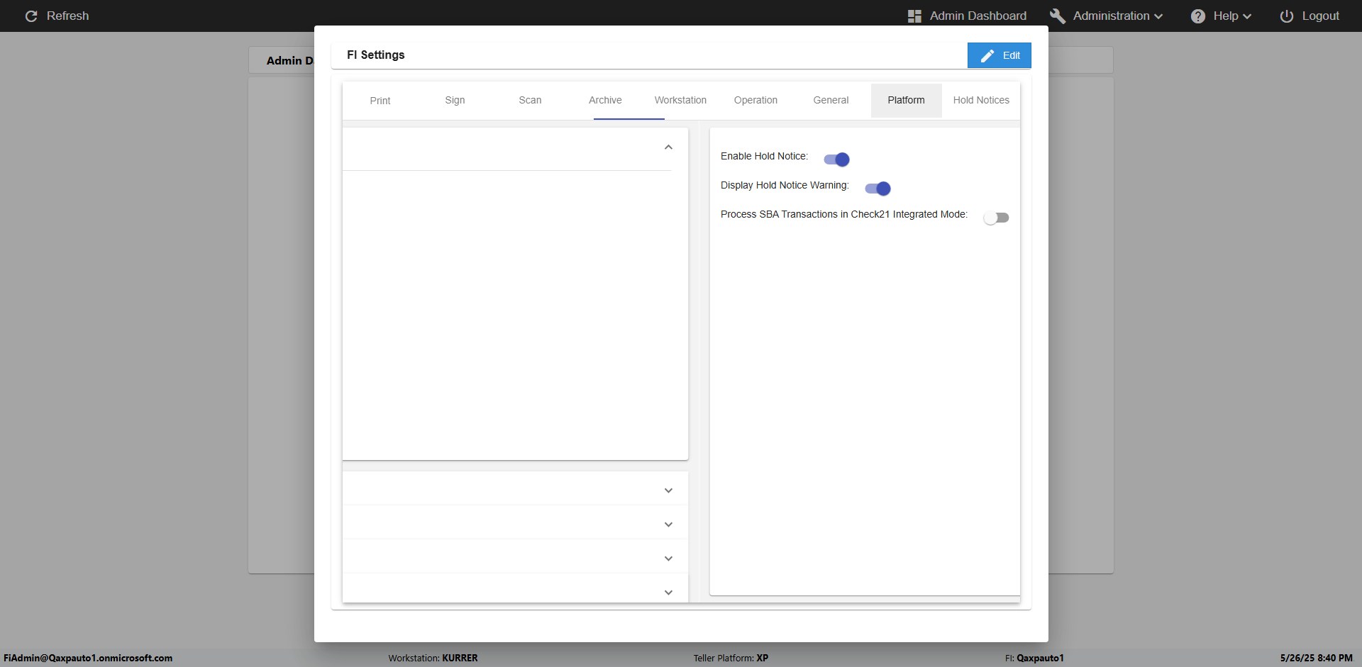| 09:52:16 PM | Expected: click on Settings button in Teller portal Actual(Passed): Sucessfully clicked on Settings button in Teller portal [ScreenShot] |