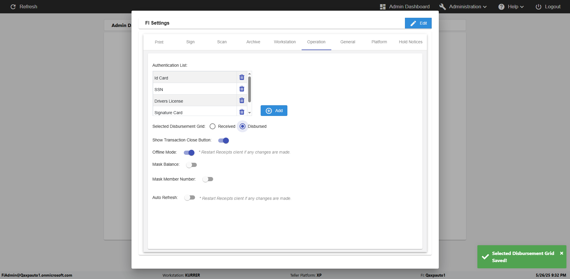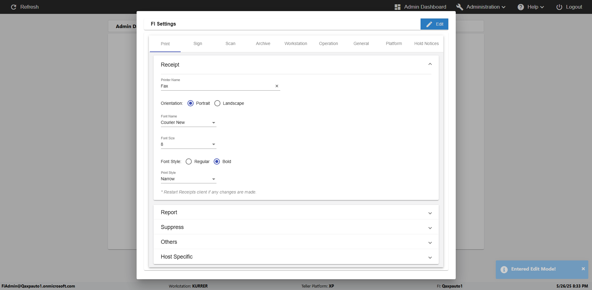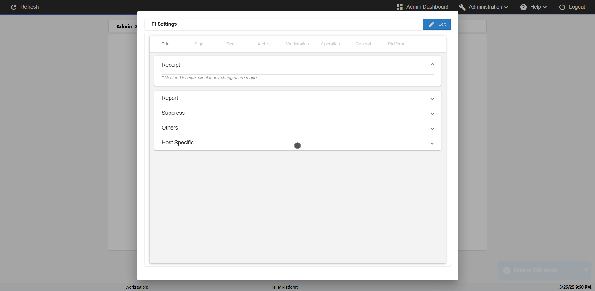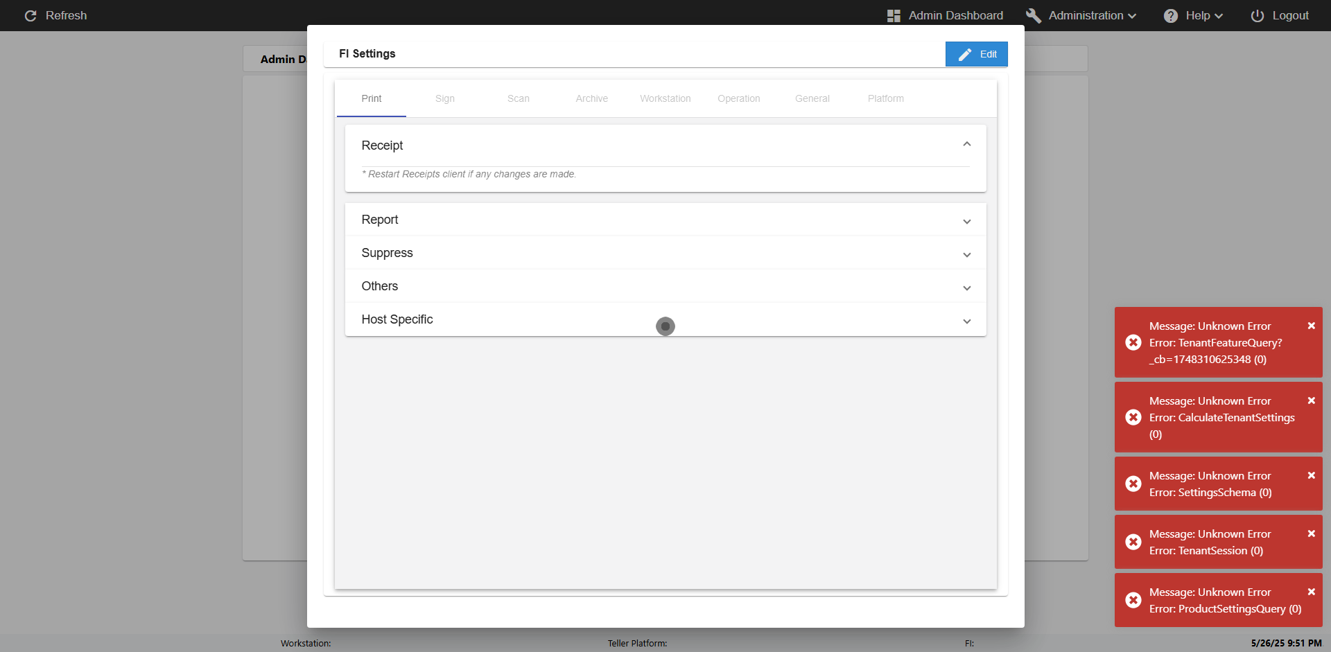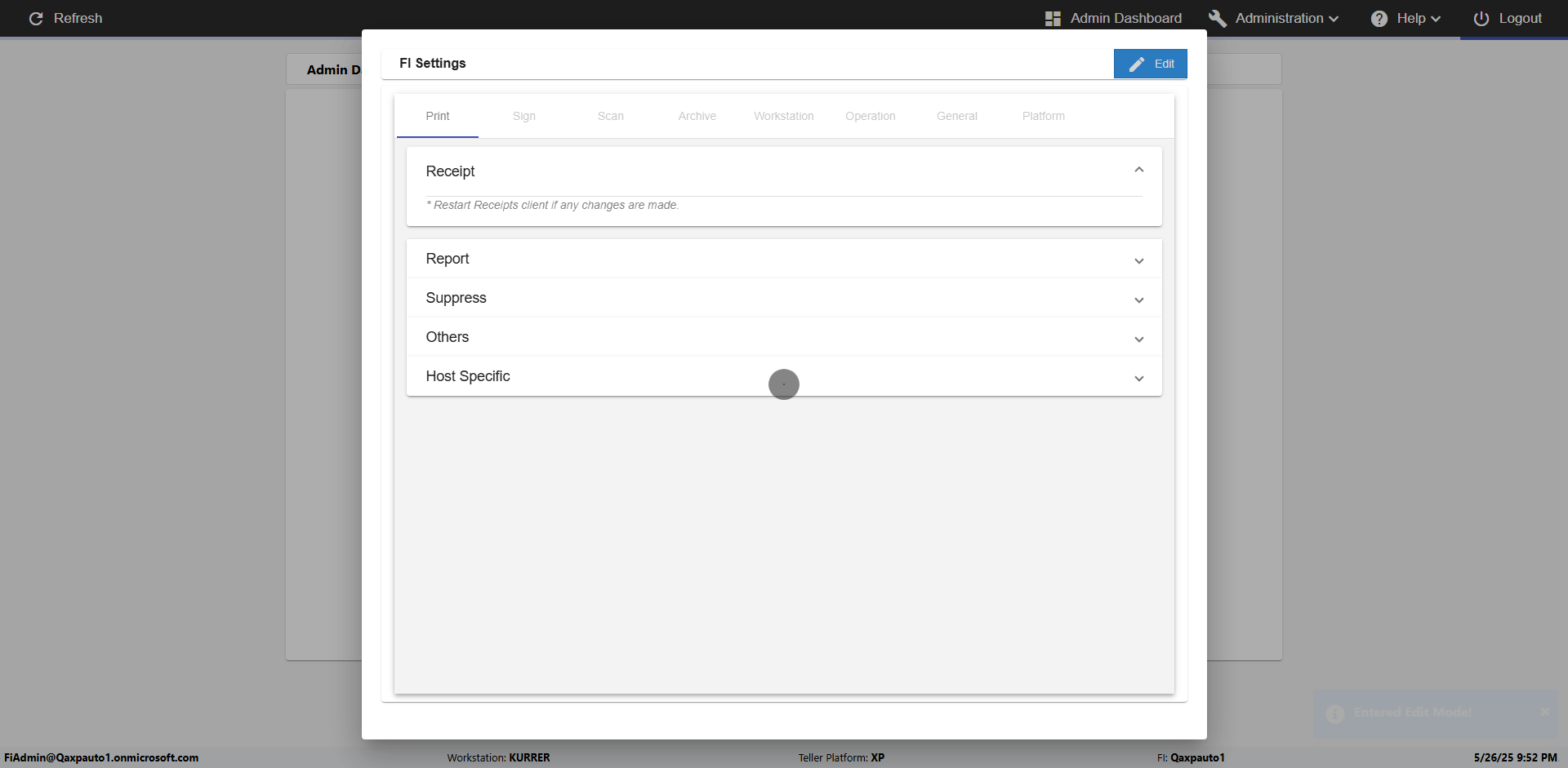 | 09:51:36 PM | Successfully navigated to 'eReceipts FI Admin' Page | |