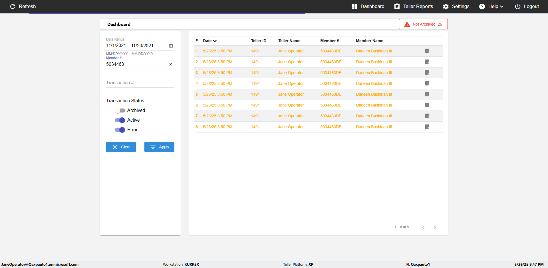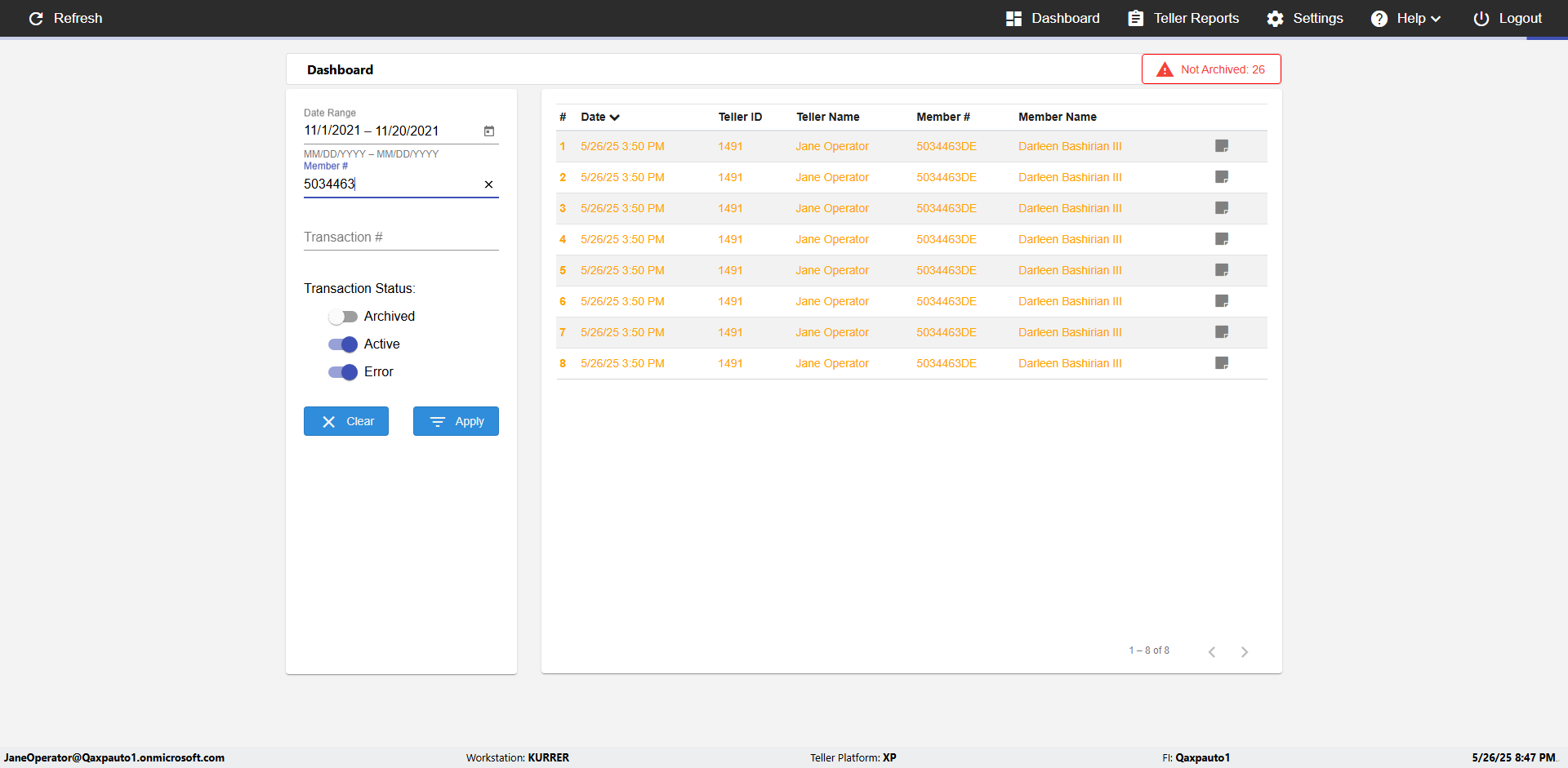 | 08:08:08 PM | Expected: check transaction status message Actual(Passed): Transaction is archived. [ScreenShot] |