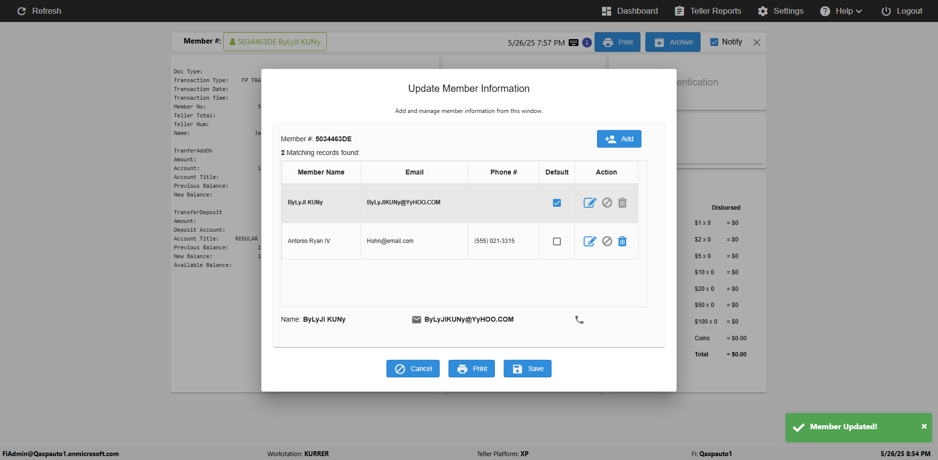 | 09:54:52 PM | Successfully navigated to 'eReceipts Teller' Page | |