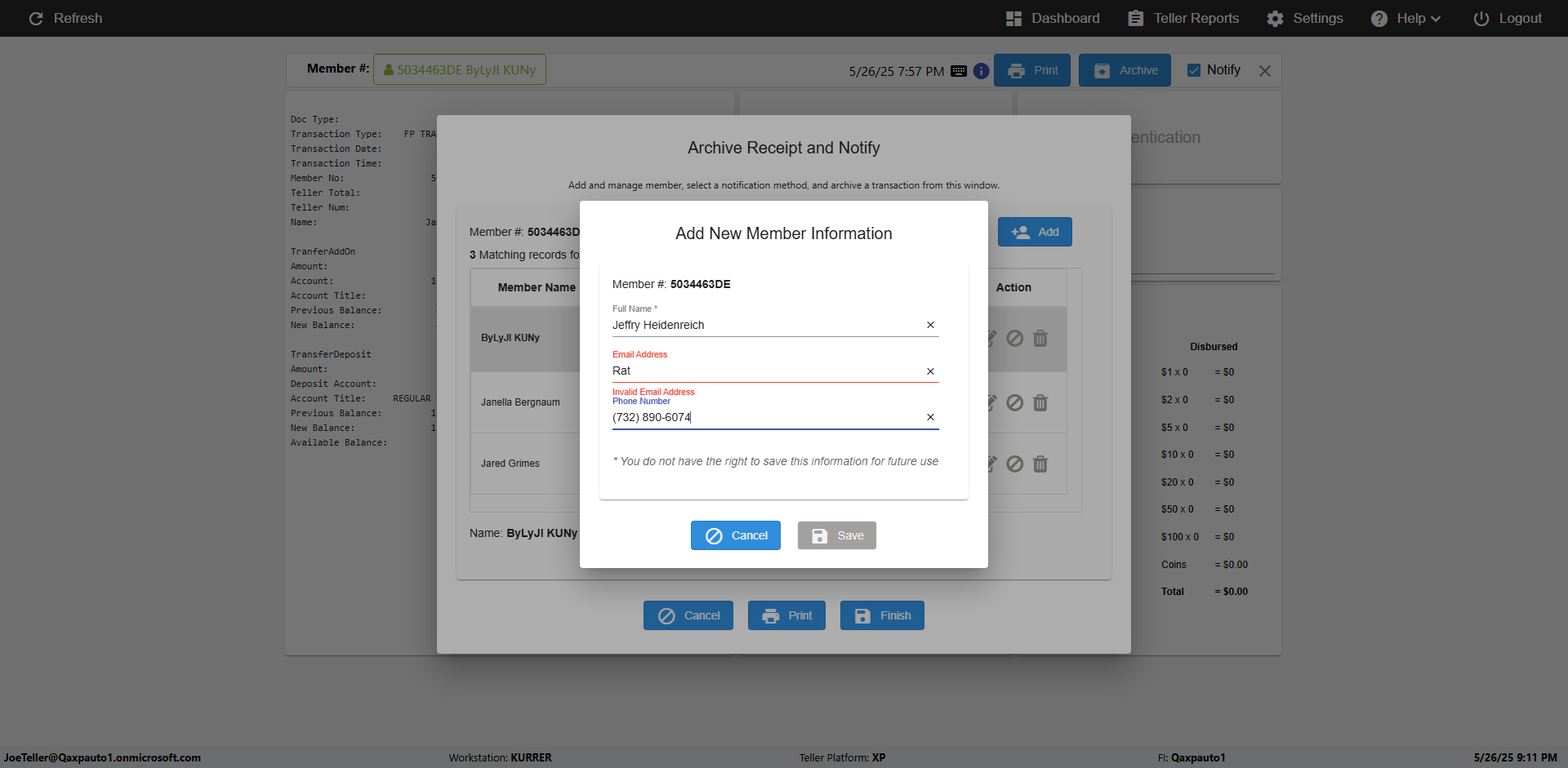 | 09:56:41 PM | Successfully navigated to 'eReceipts Teller' Page | |