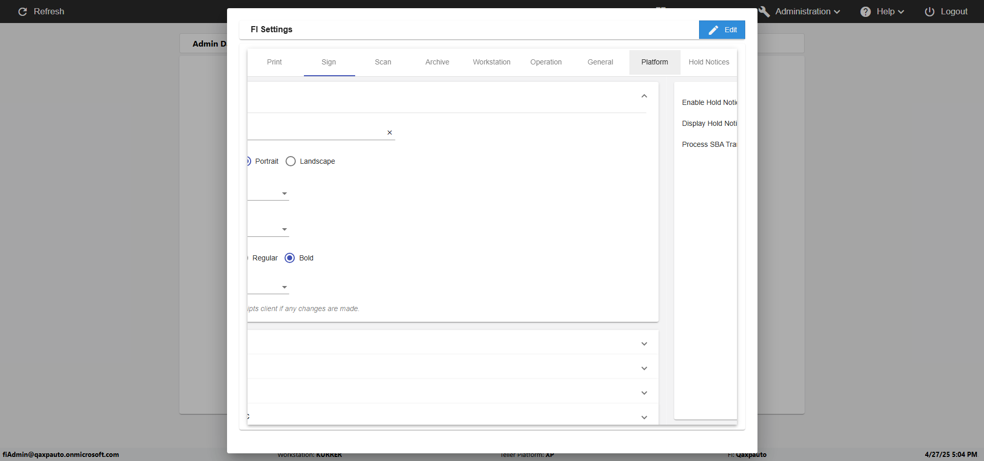 Actual(Passed): Sucessfully clicked on Settings button in Teller portal[ScreenShot]