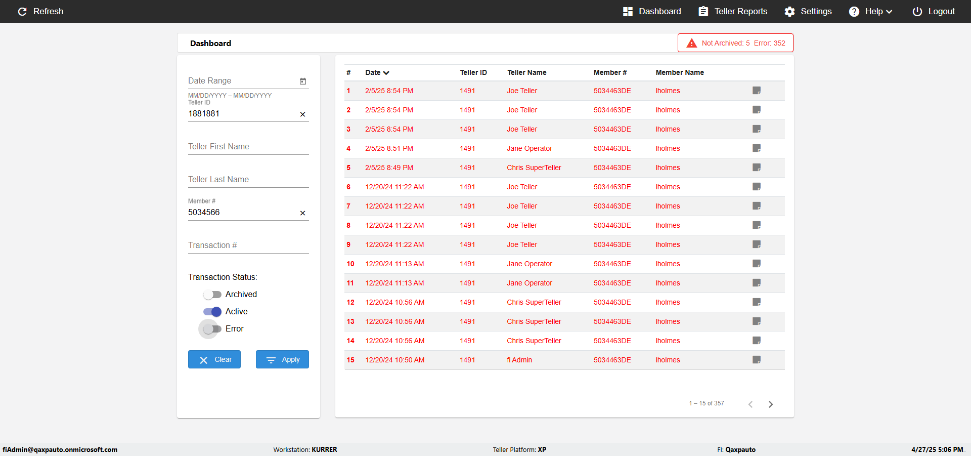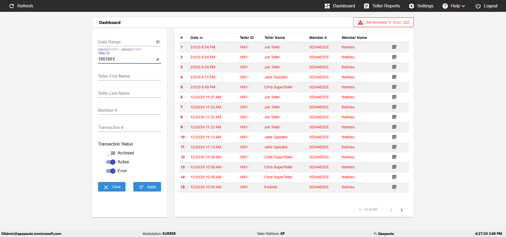 --- 27 Apr 17:06:08 180 - Page URL:: https://er-tellerportal-demo.azurewebsites.net/dashboard