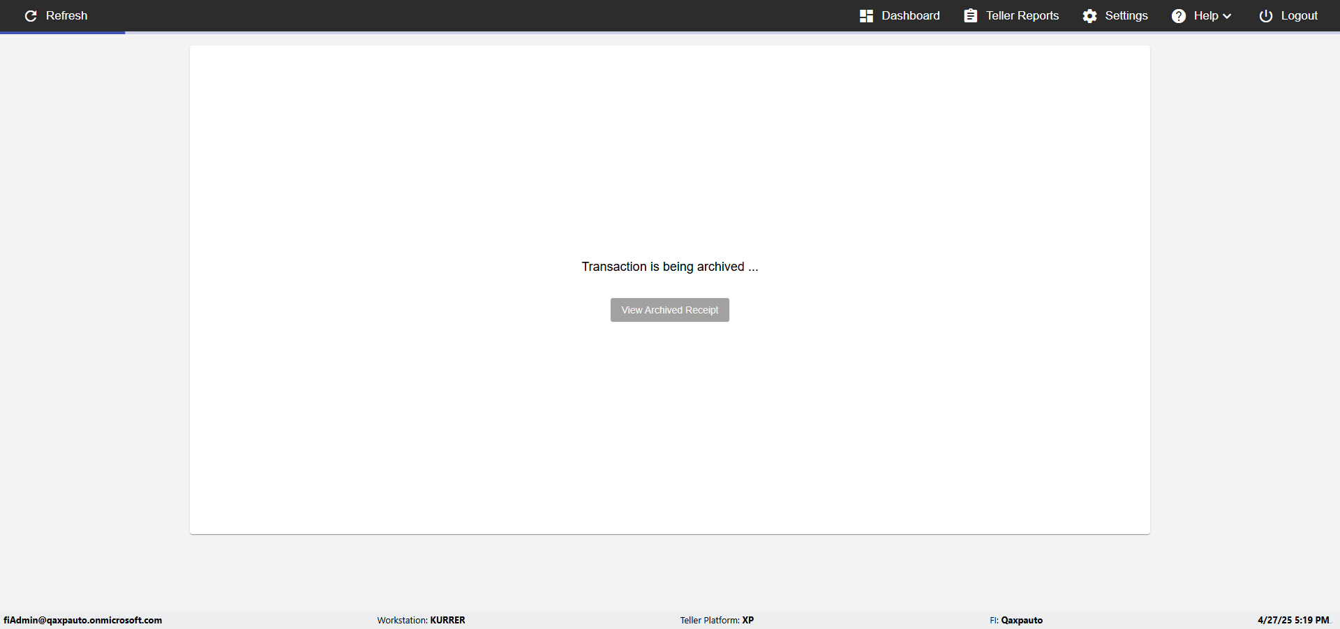 Actual(Passed): Transaction is being archived ...[ScreenShot]