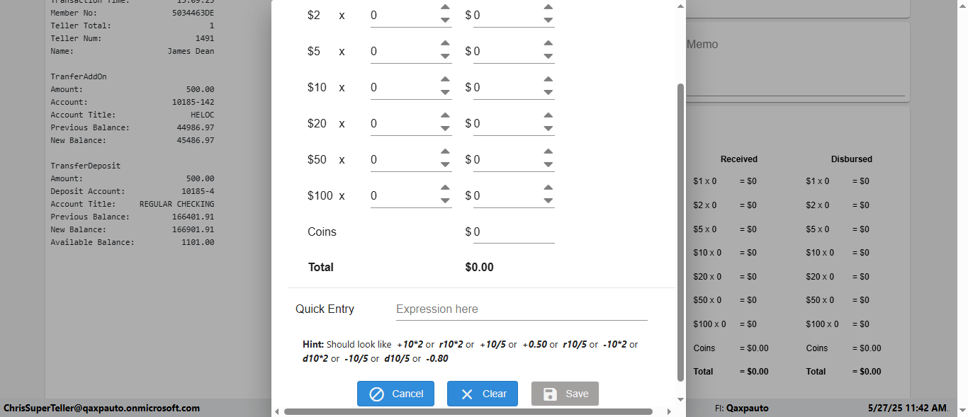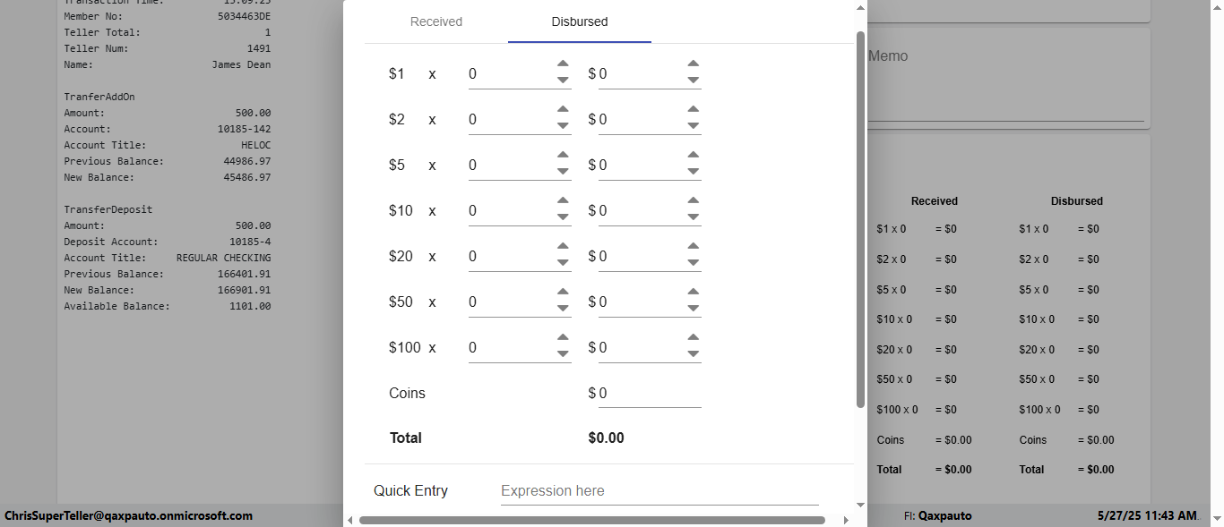 ({Toggel=, Archived Transactions=no, Description=verify Received And Disbursed Error Messages In Receipt Page, Email=, Archive=, Document Type=, Notify=, SignatureTab=, DisbursedExpression=, Operation=, Teller LastName=, Disbursed cash=50-22|, errorint=, TestID=verifyReceivedAndDisbursedErrorMessages, Print=, DisbursedExpressionValue=, Phone=, ReceivedCashValue=, Member=, UserPwd=iMM2022!, Transtatus=Archived-false;Active-true;Error-false, Docment ID=, Teller=, Teller FirstName=, errorMessage=Please enter correct amount., ReceivedExpressionValue=, Date=, Platfrom=, Received cash=5-22|, Transaction=, Header=, Expression=|+1*2, Username=ChrisSuperTeller@Qaxpauto.onmicrosoft.com, DisbursedCashValue=, FullName=, ReceivedExpression=, SMS=, Memo=})