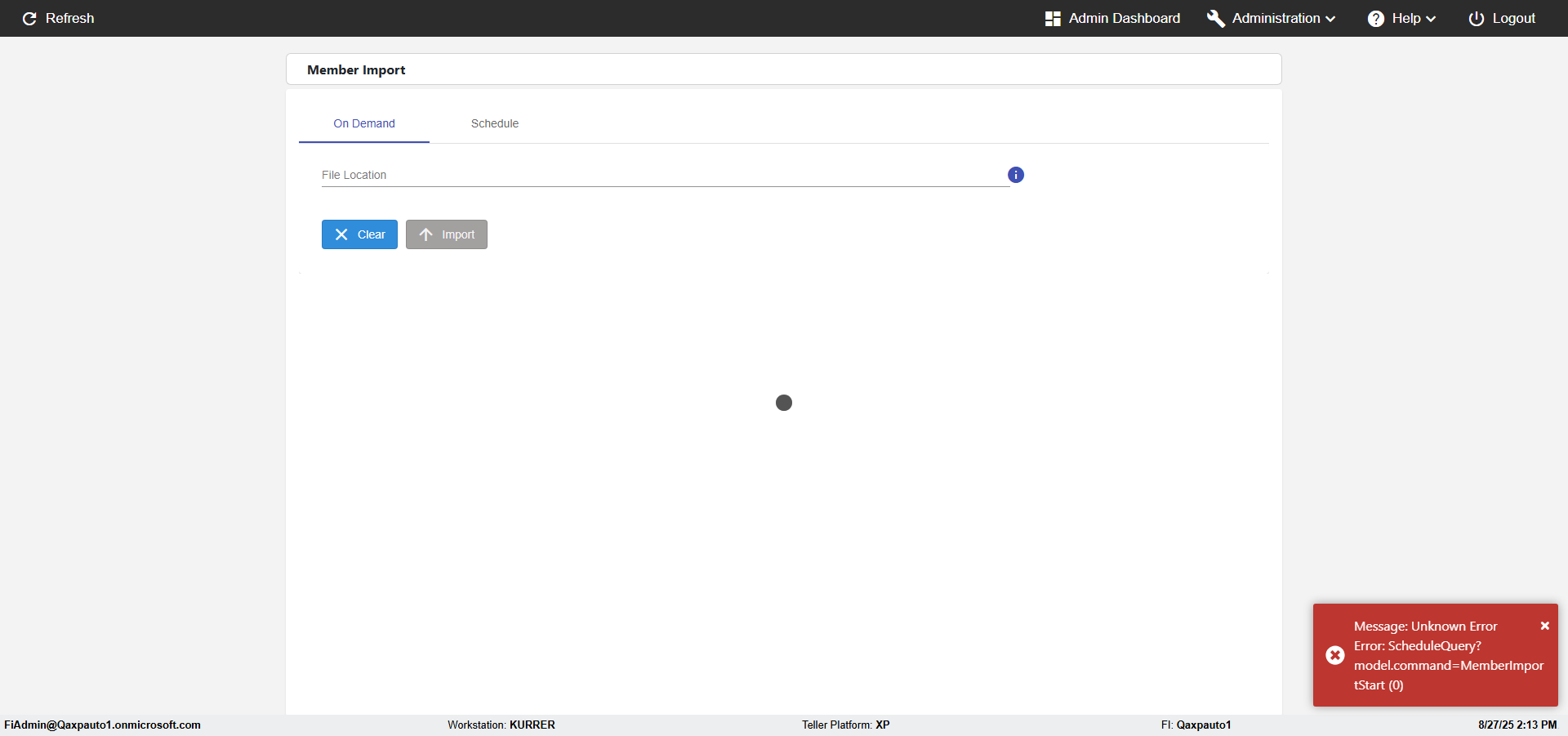 | 02:13:17 PM | Successfully navigated to the 'Member Import On Demand' page after refresh [ScreenShot] | |