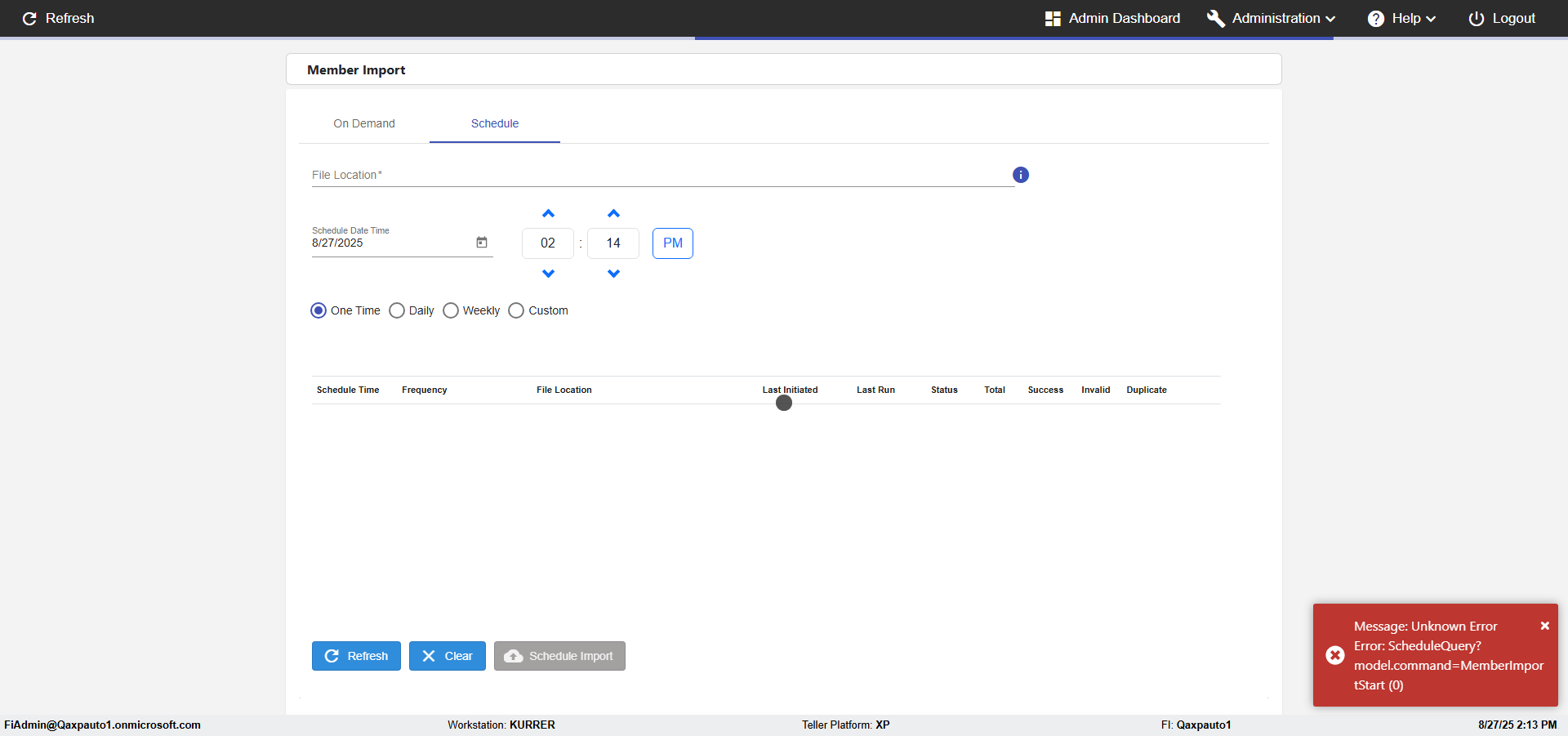 | 02:13:25 PM | Successfully navigated to the 'Member Import Schedule' page after refresh [ScreenShot] | |