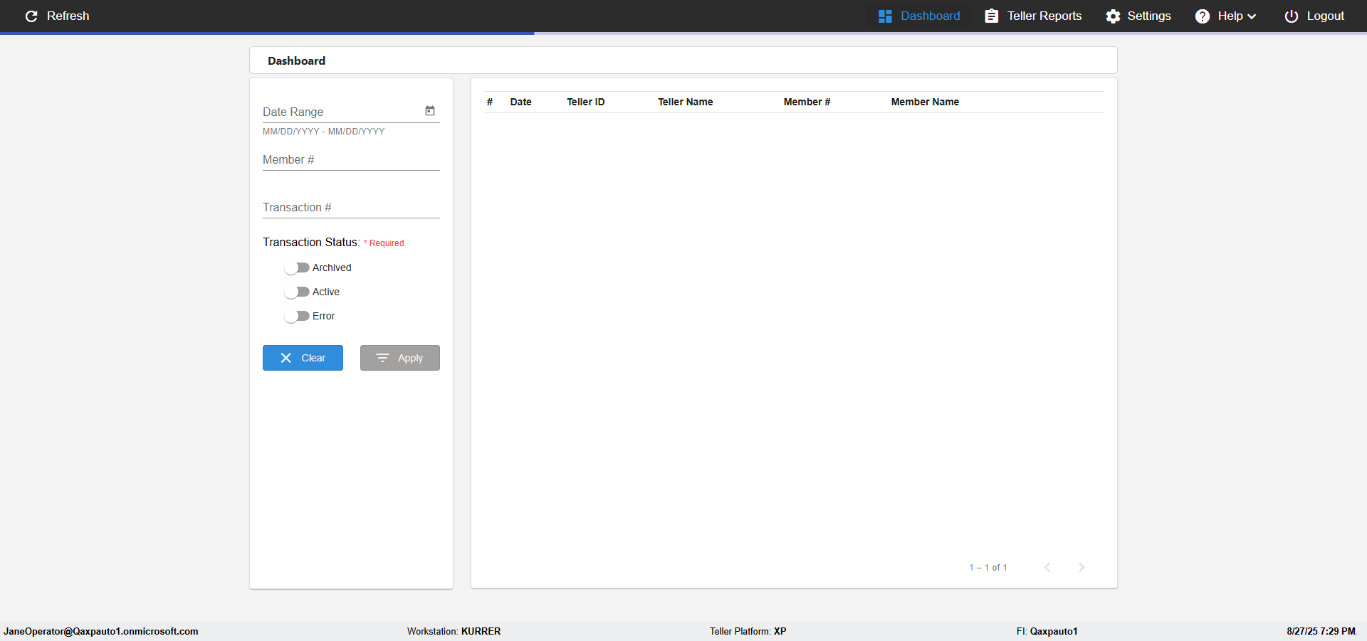 ***** verify Heaader Items in Teller Portal ***** |